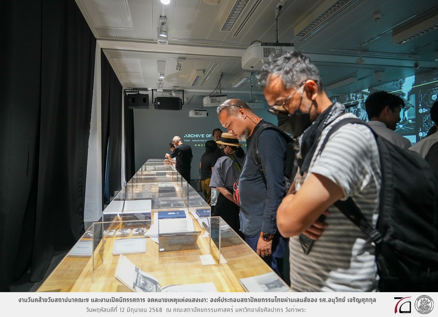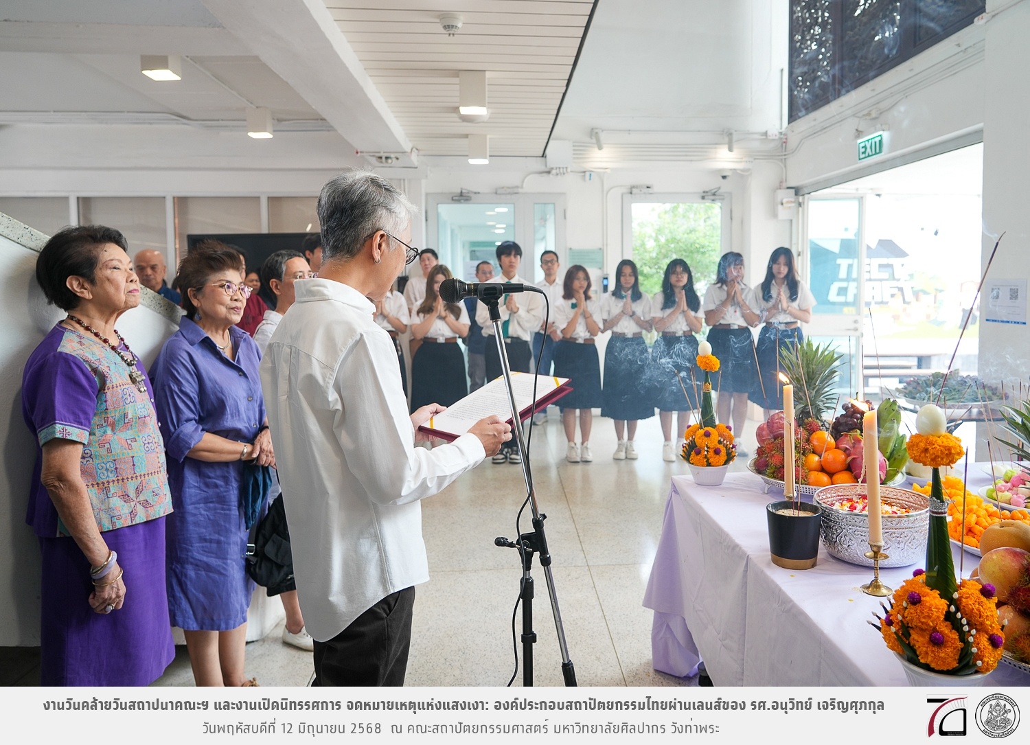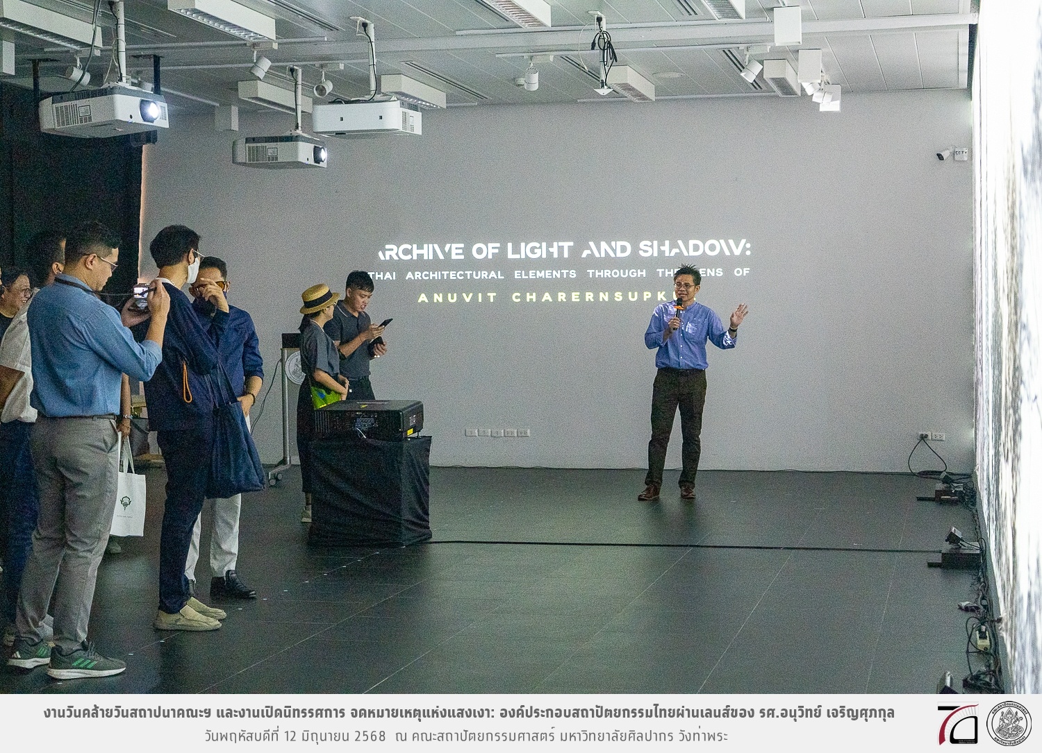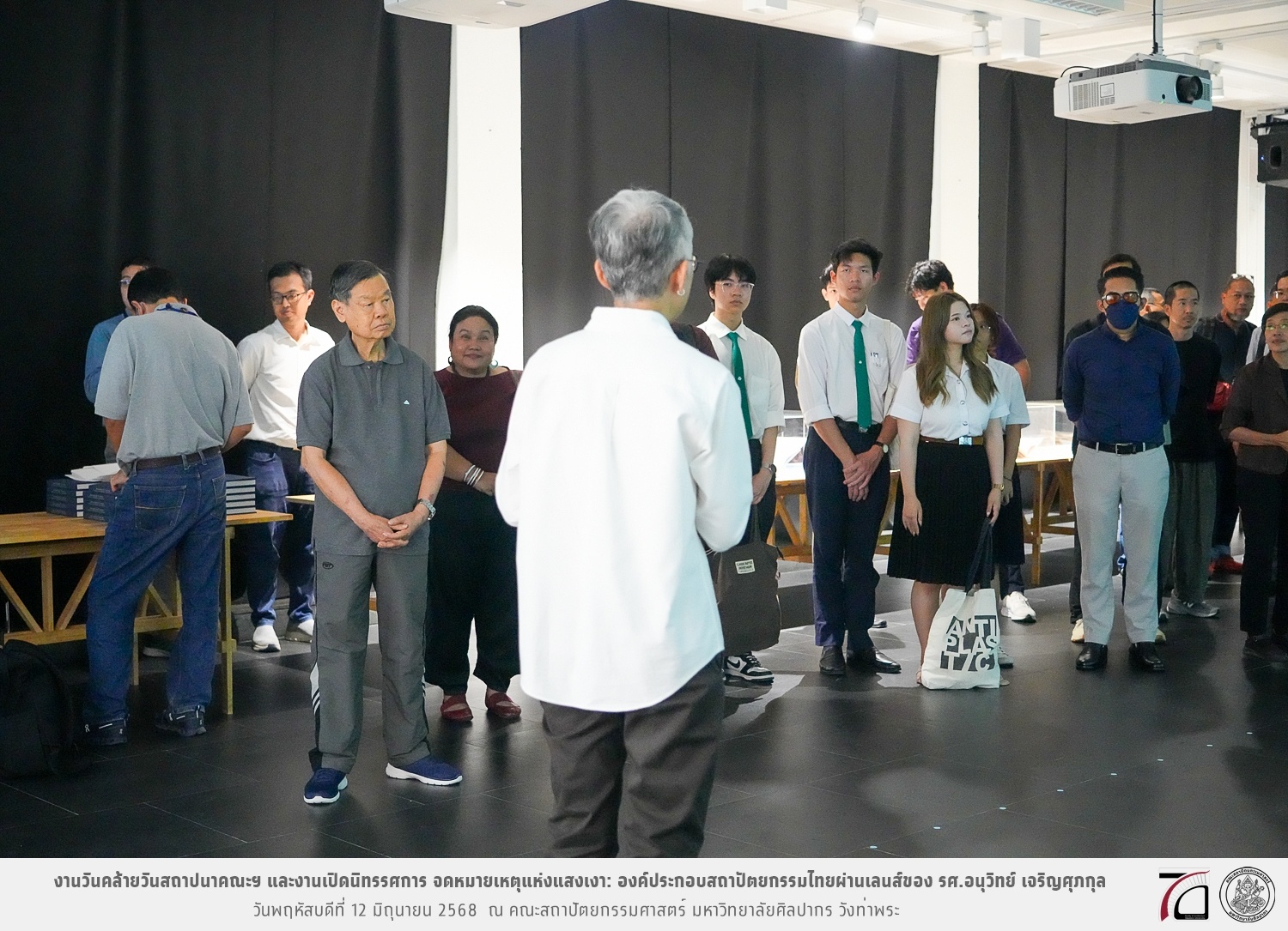 ภาพบรรยากาศงานวันคล้ายวันสถาปนาคณะฯ ในโอกาสก้าวเข้าสู่ปีที่ 71 เมื่อวันพฤหัสบดีที่ 12 มิถุนายน 2568 และมีการเปิดนิทรรศการ จดหมายเหตุแห่งแสงเงา: องค์ประกอบสถาปัตยกรรมไทยผ่านเลนส์ของ รศ.อนุวิทย์ เจริญศุภกุล และเสวนาหัวข้อ “ในแสงมีนัย: บทสนทนากับ รศ. อนุวิทย์ เจริญศุภกุล In Light, There Is Insight: A Conversation with Assoc. Prof. Anuwit Charoensupakul ณ หอศิลปะสถาปัตยกรรมพระพรหมพิจิตร (ห้อง 104) คณะสถาปัตยกรรมศาสตร์