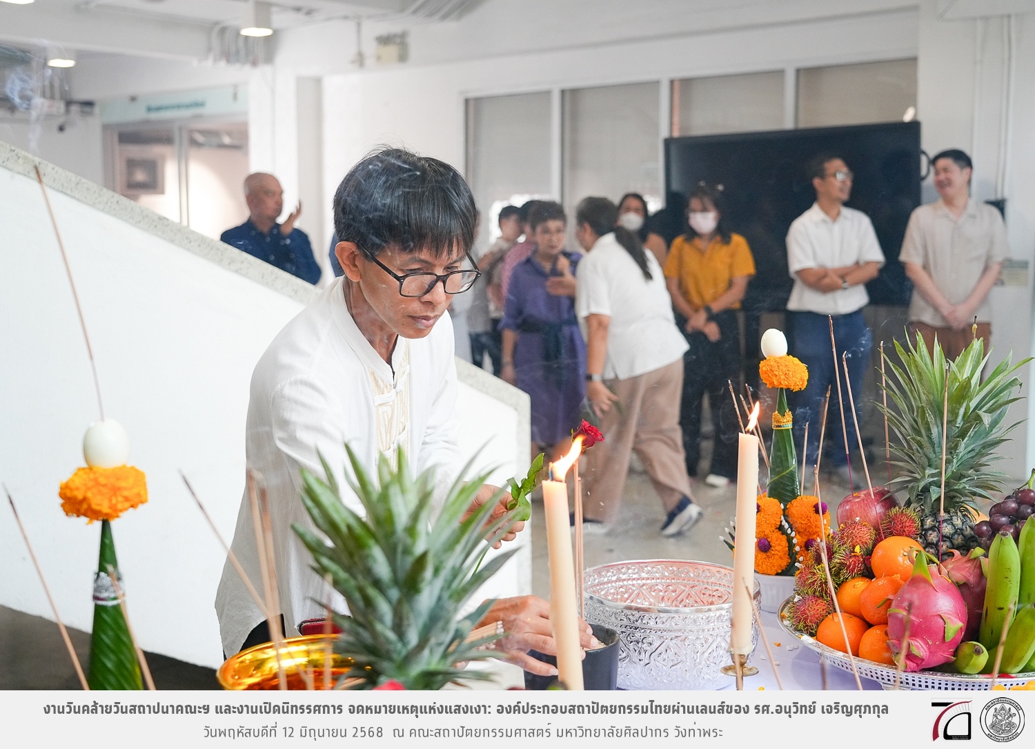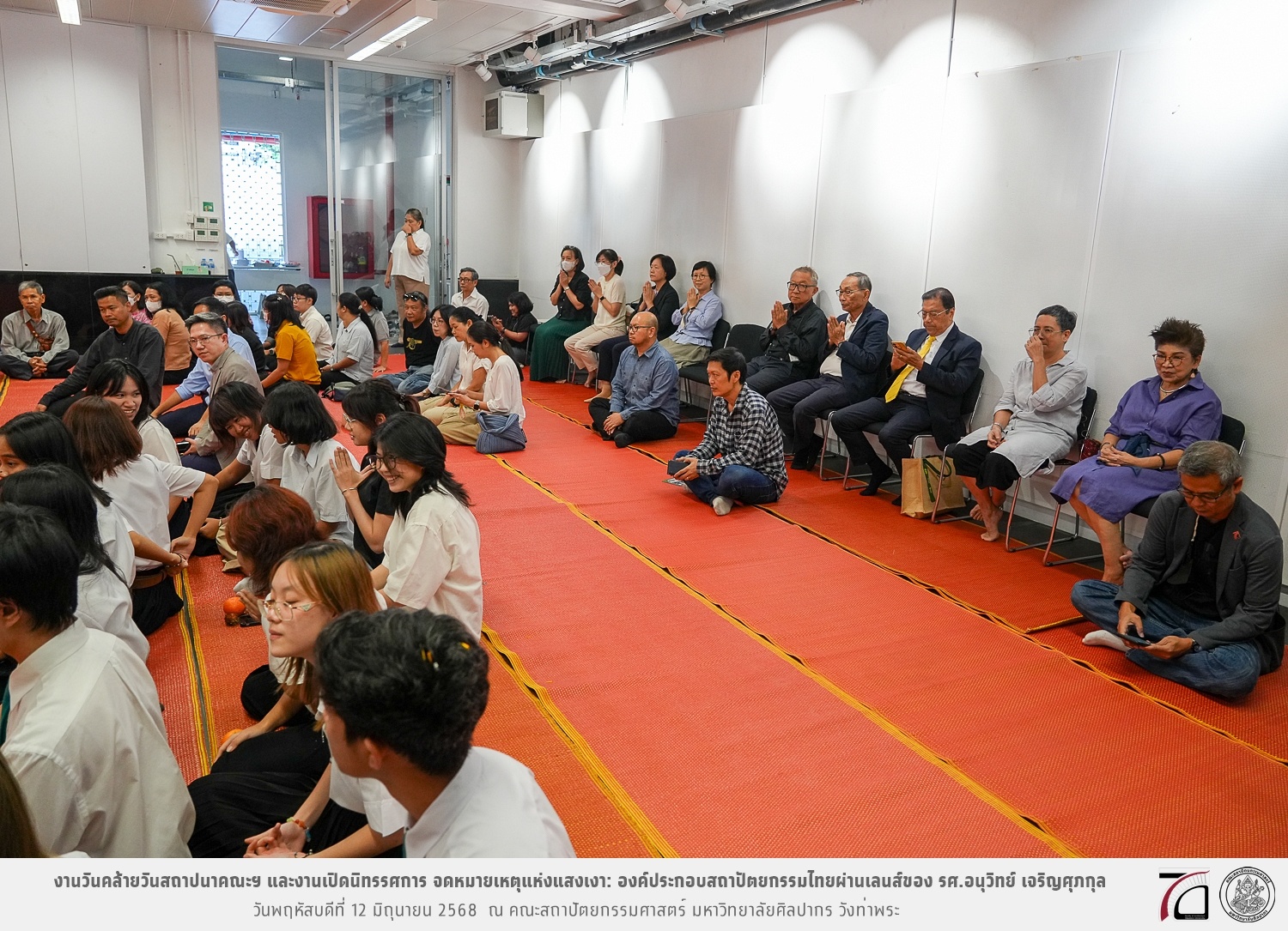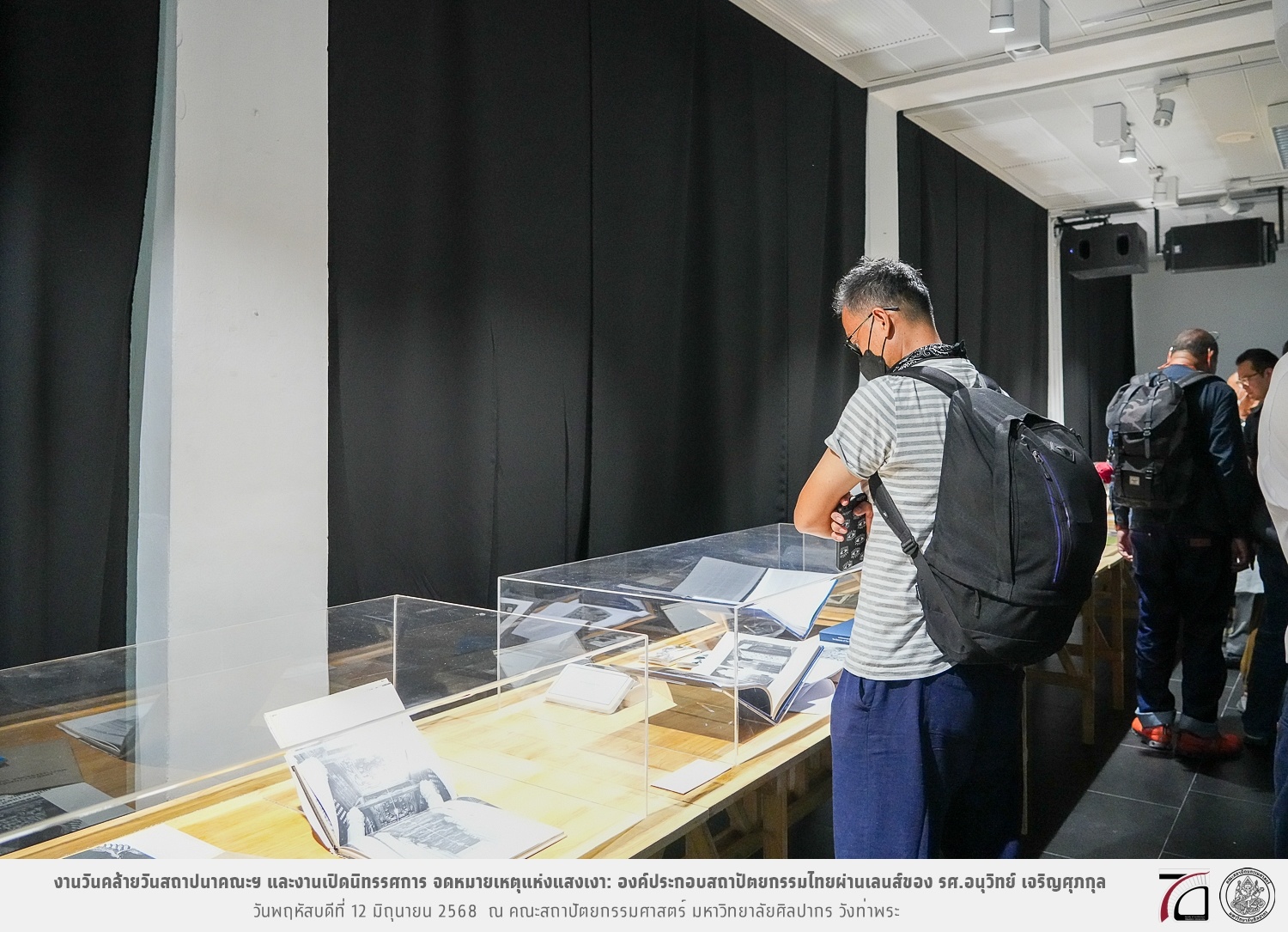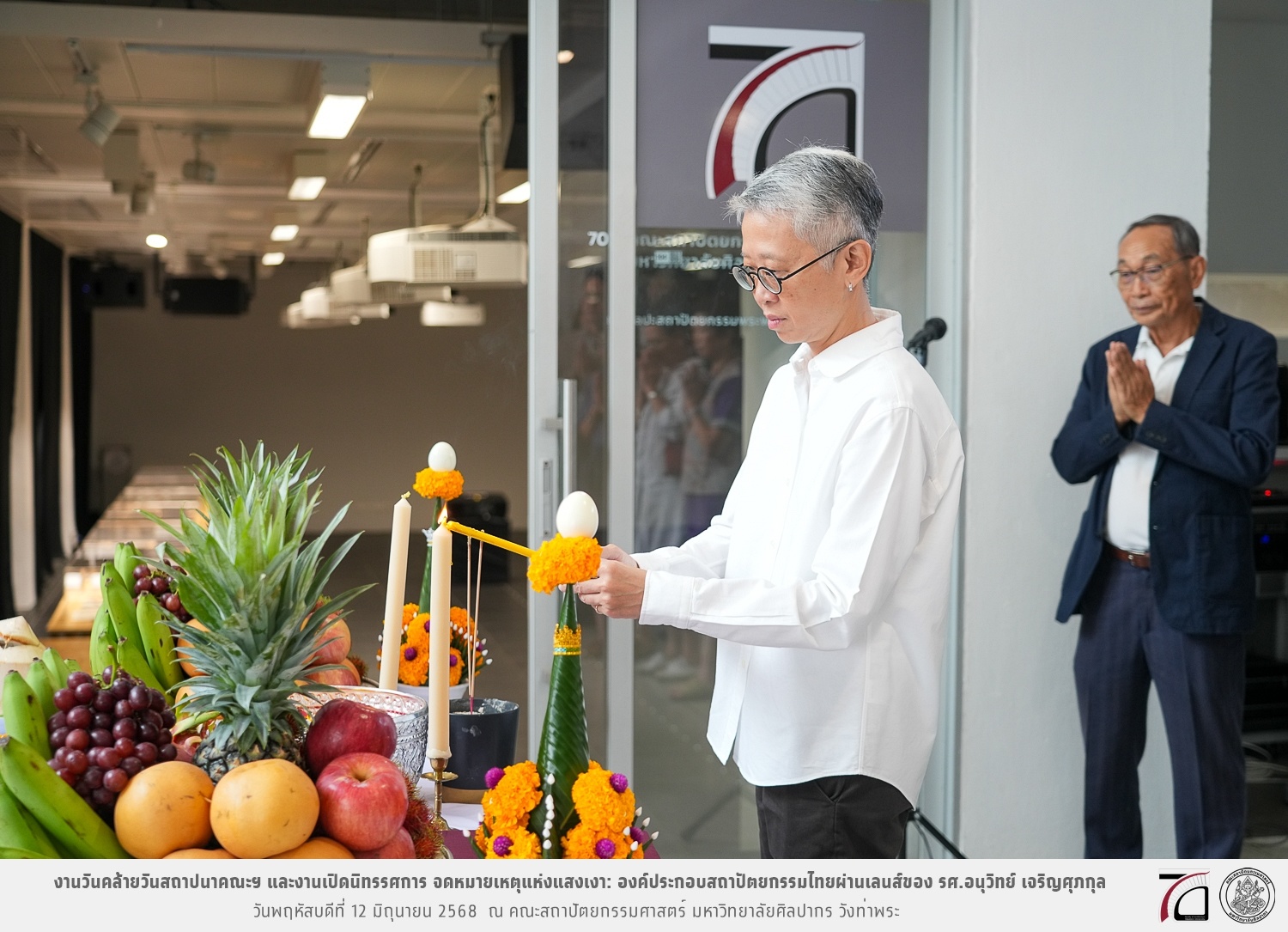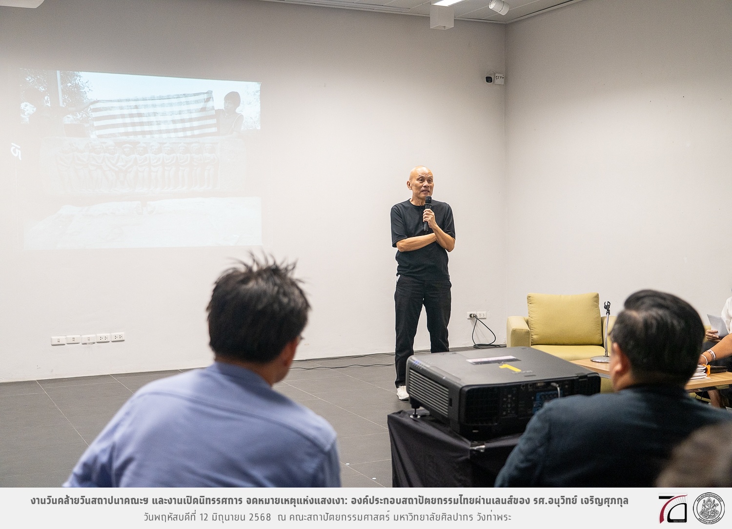 ภาพบรรยากาศงานวันคล้ายวันสถาปนาคณะฯ ในโอกาสก้าวเข้าสู่ปีที่ 71 เมื่อวันพฤหัสบดีที่ 12 มิถุนายน 2568 และมีการเปิดนิทรรศการ จดหมายเหตุแห่งแสงเงา: องค์ประกอบสถาปัตยกรรมไทยผ่านเลนส์ของ รศ.อนุวิทย์ เจริญศุภกุล และเสวนาหัวข้อ “ในแสงมีนัย: บทสนทนากับ รศ. อนุวิทย์ เจริญศุภกุล In Light, There Is Insight: A Conversation with Assoc. Prof. Anuwit Charoensupakul ณ หอศิลปะสถาปัตยกรรมพระพรหมพิจิตร (ห้อง 104) คณะสถาปัตยกรรมศาสตร์