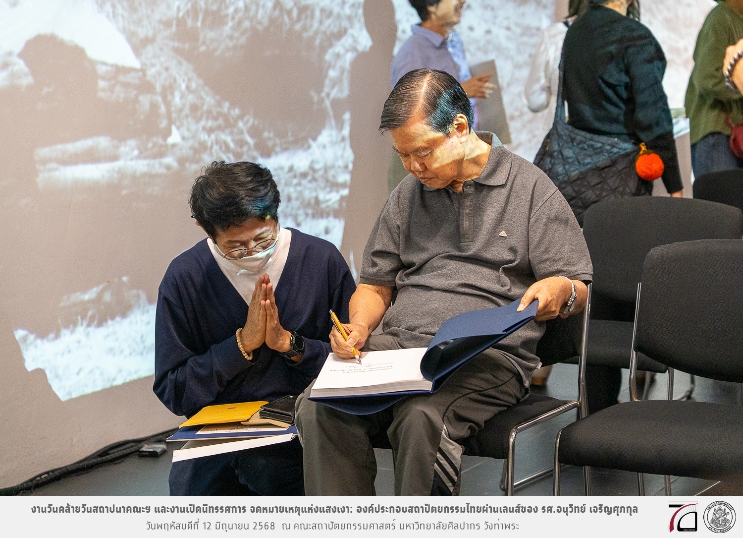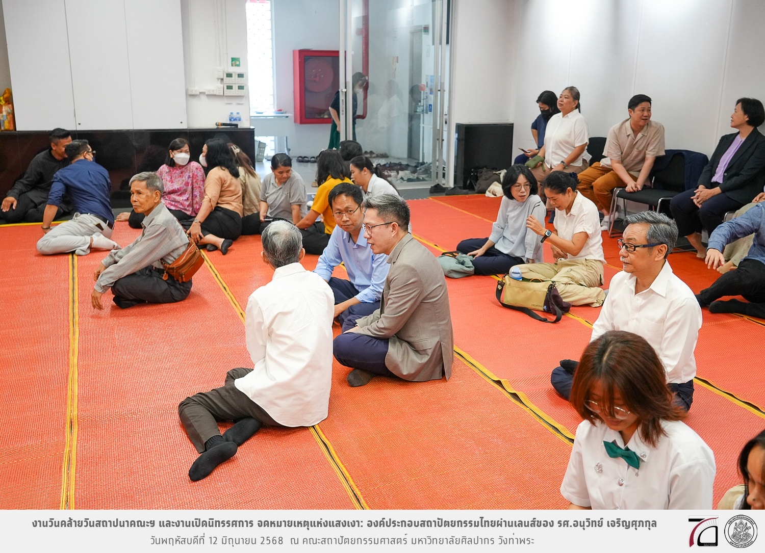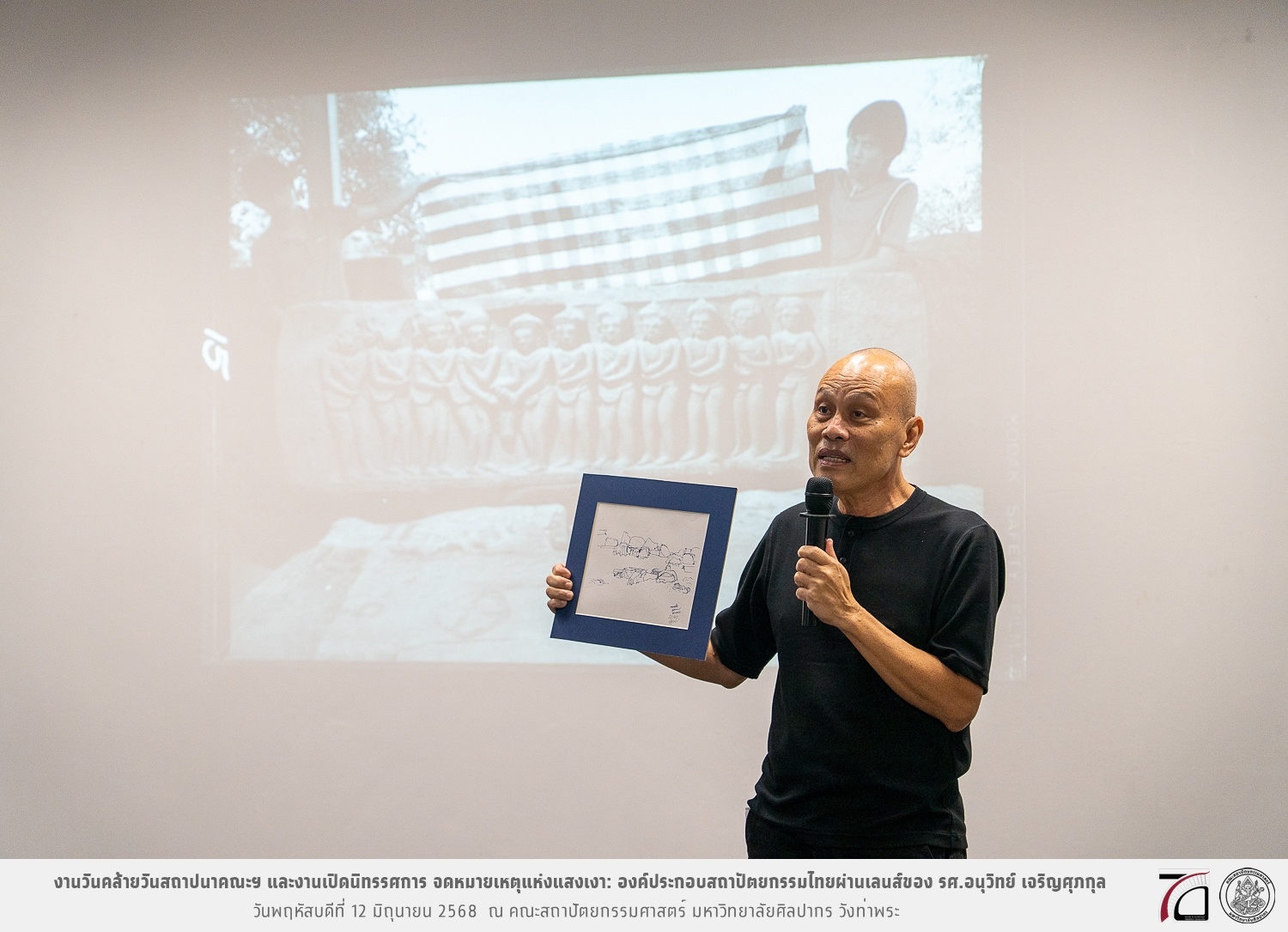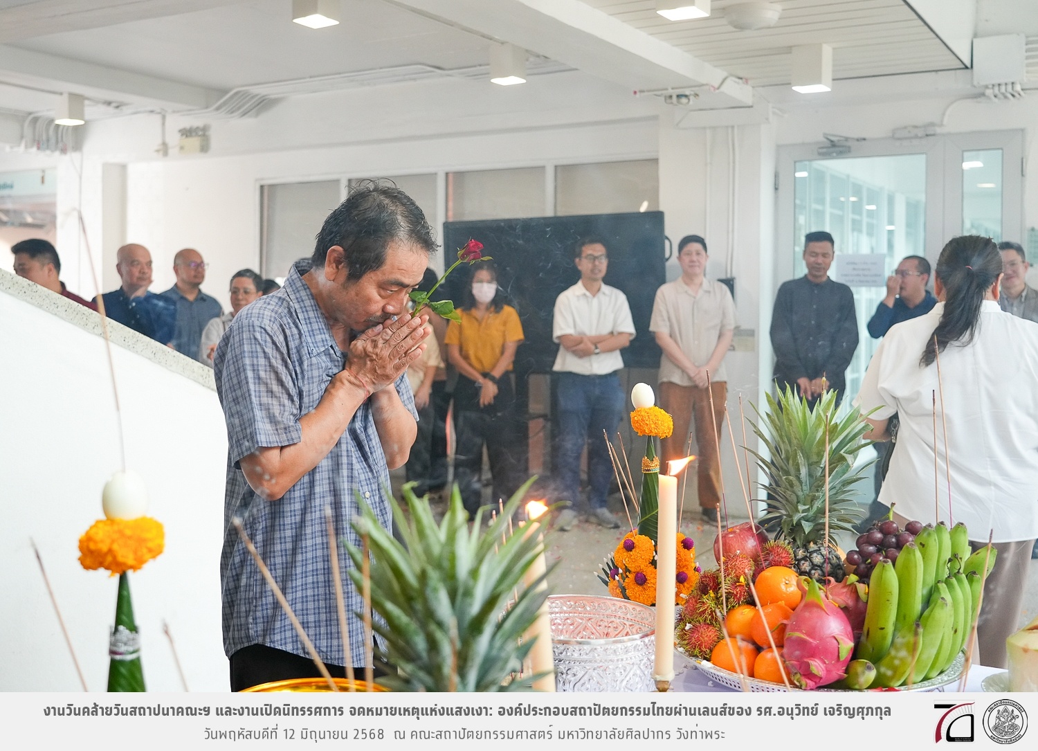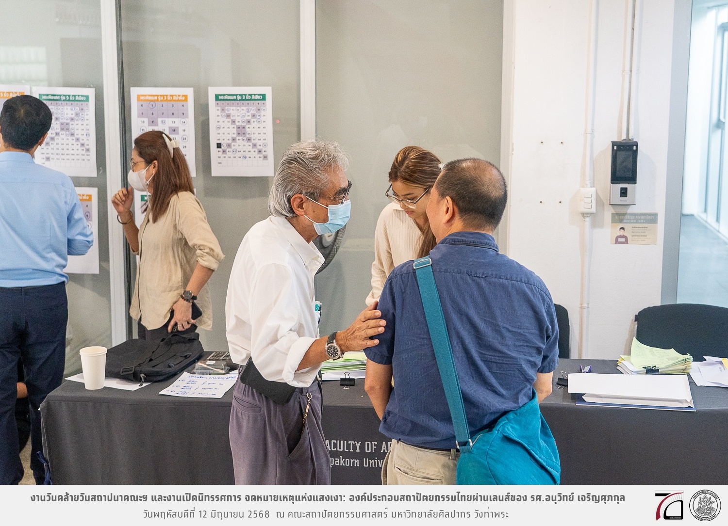 ภาพบรรยากาศงานวันคล้ายวันสถาปนาคณะฯ ในโอกาสก้าวเข้าสู่ปีที่ 71 เมื่อวันพฤหัสบดีที่ 12 มิถุนายน 2568 และมีการเปิดนิทรรศการ จดหมายเหตุแห่งแสงเงา: องค์ประกอบสถาปัตยกรรมไทยผ่านเลนส์ของ รศ.อนุวิทย์ เจริญศุภกุล และเสวนาหัวข้อ “ในแสงมีนัย: บทสนทนากับ รศ. อนุวิทย์ เจริญศุภกุล In Light, There Is Insight: A Conversation with Assoc. Prof. Anuwit Charoensupakul ณ หอศิลปะสถาปัตยกรรมพระพรหมพิจิตร (ห้อง 104) คณะสถาปัตยกรรมศาสตร์