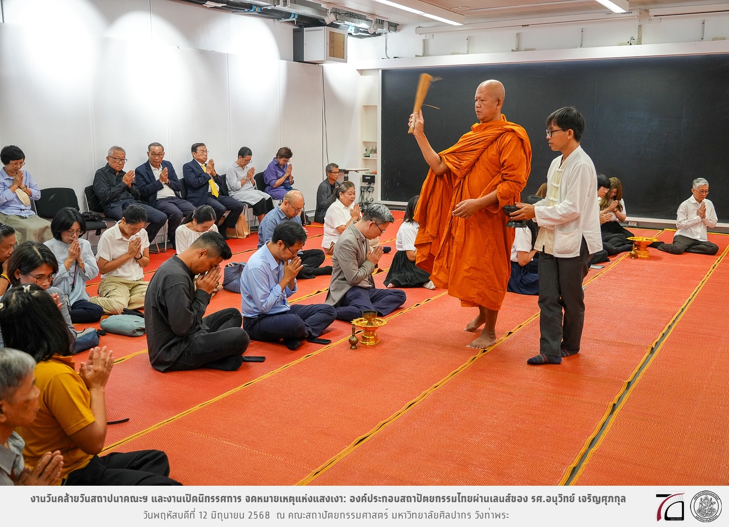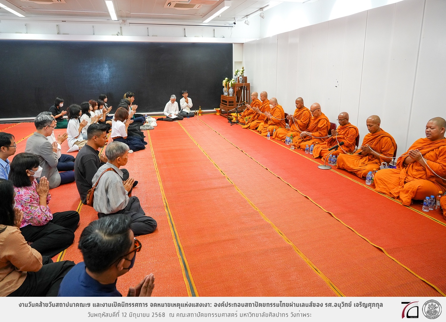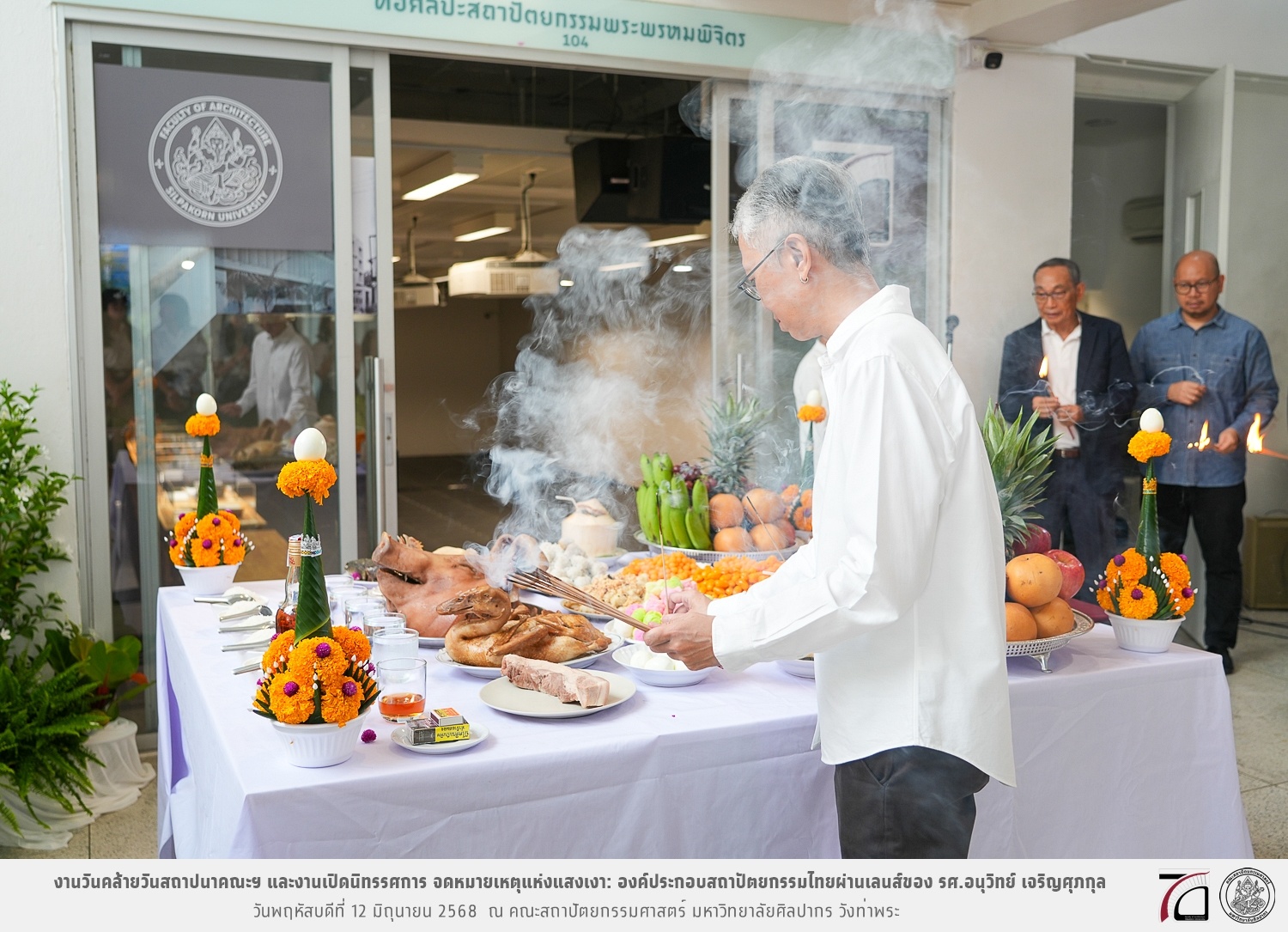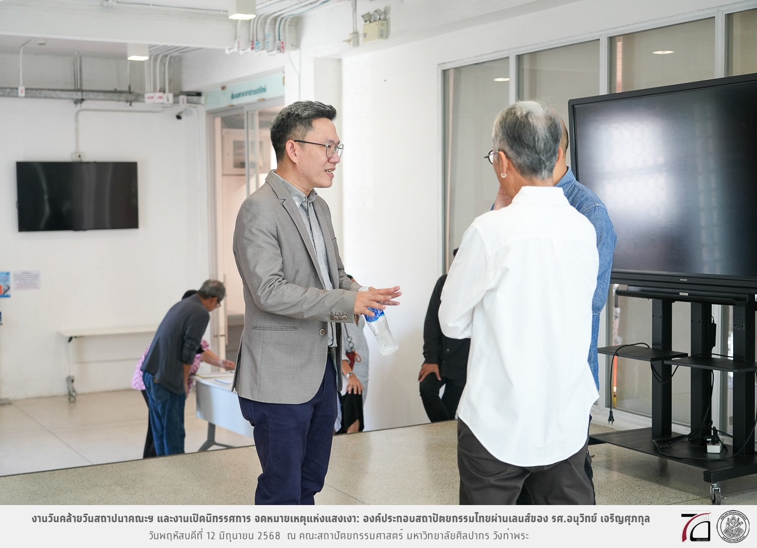 ภาพบรรยากาศงานวันคล้ายวันสถาปนาคณะฯ ในโอกาสก้าวเข้าสู่ปีที่ 71 เมื่อวันพฤหัสบดีที่ 12 มิถุนายน 2568 และมีการเปิดนิทรรศการ จดหมายเหตุแห่งแสงเงา: องค์ประกอบสถาปัตยกรรมไทยผ่านเลนส์ของ รศ.อนุวิทย์ เจริญศุภกุล และเสวนาหัวข้อ “ในแสงมีนัย: บทสนทนากับ รศ. อนุวิทย์ เจริญศุภกุล In Light, There Is Insight: A Conversation with Assoc. Prof. Anuwit Charoensupakul ณ หอศิลปะสถาปัตยกรรมพระพรหมพิจิตร (ห้อง 104) คณะสถาปัตยกรรมศาสตร์