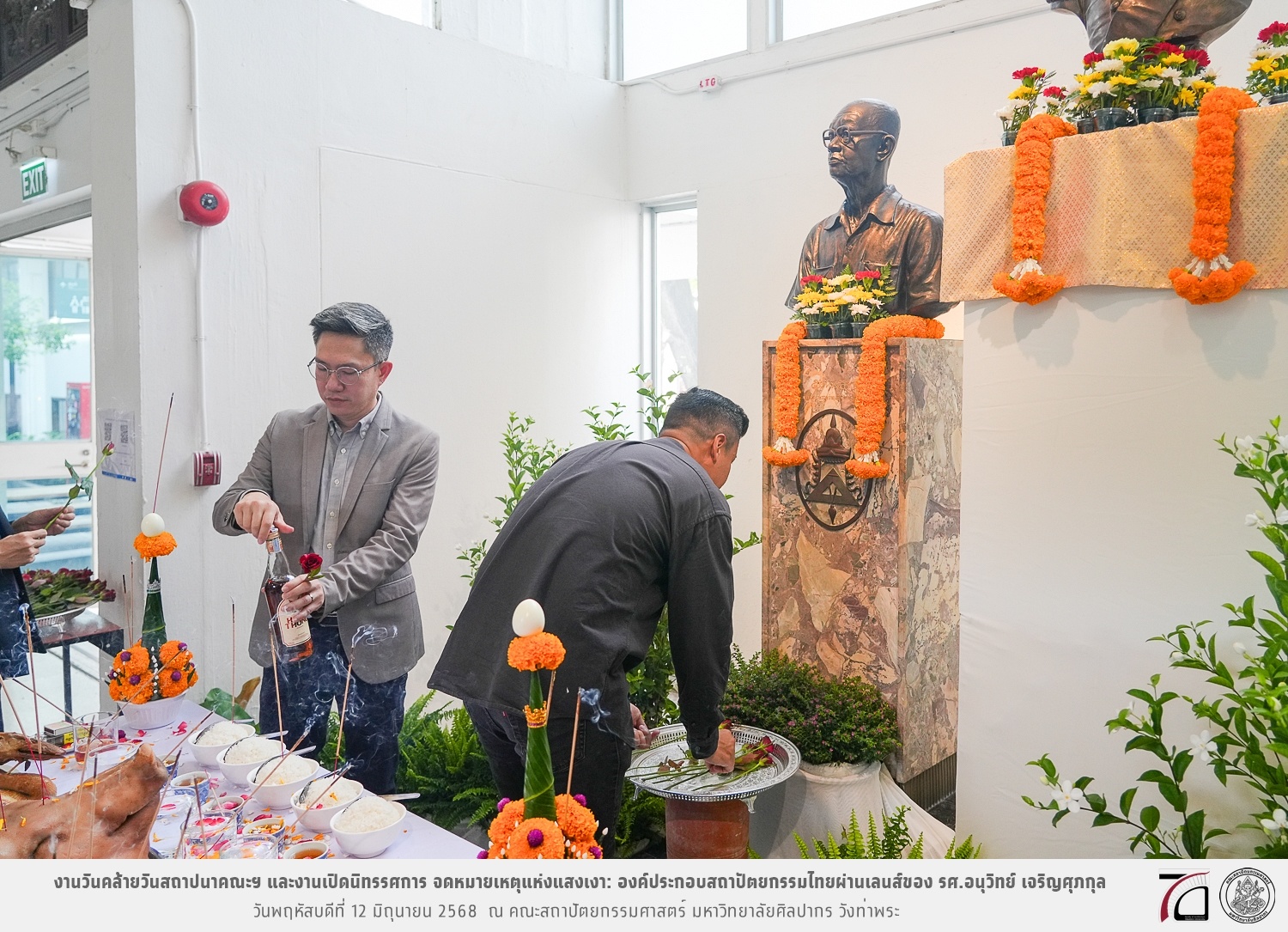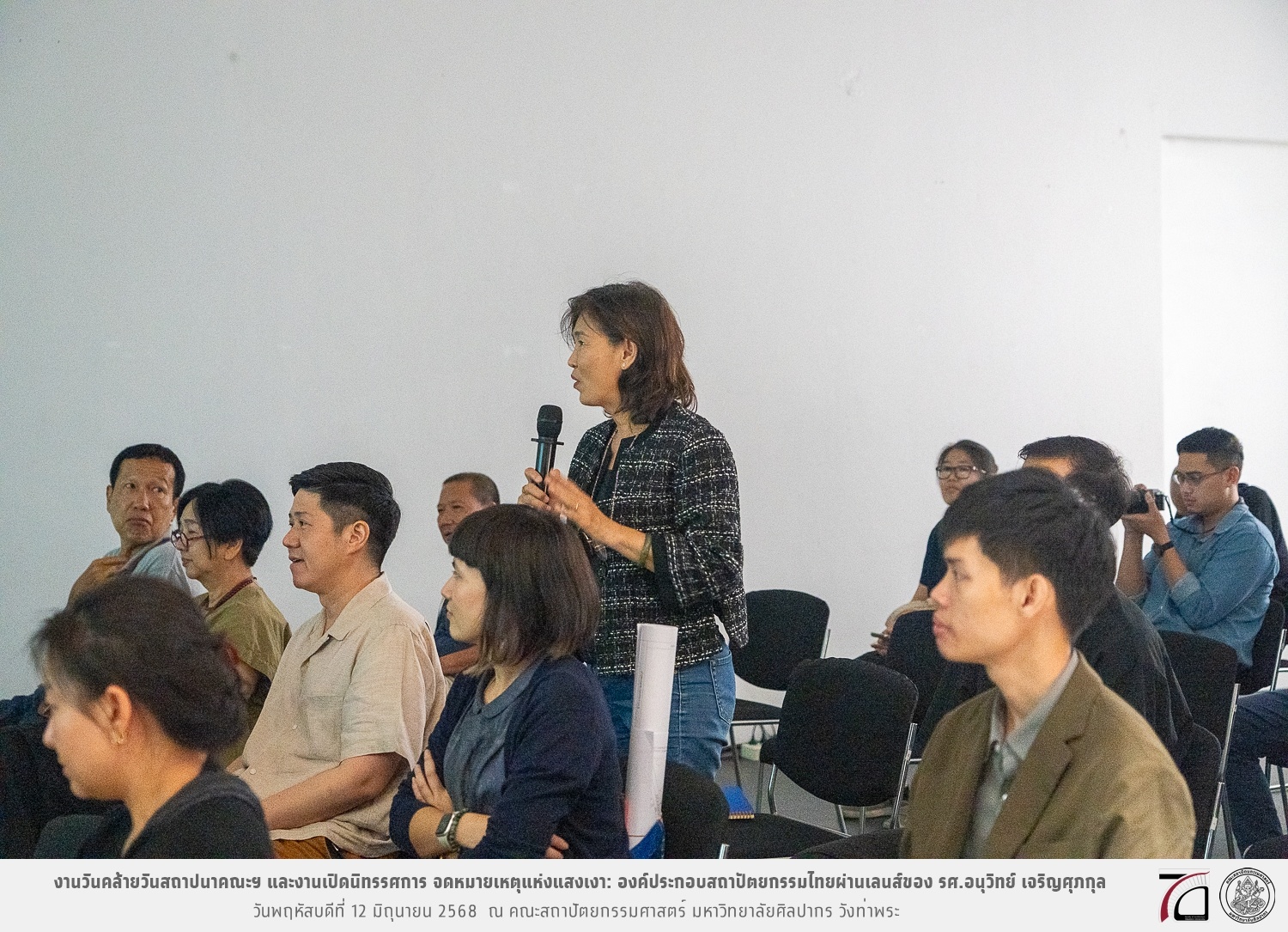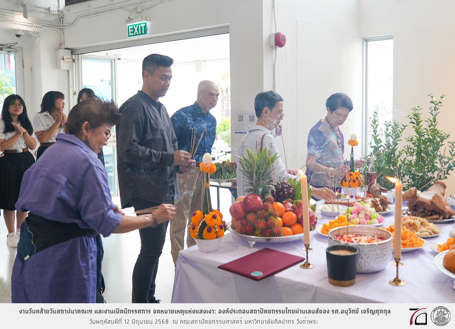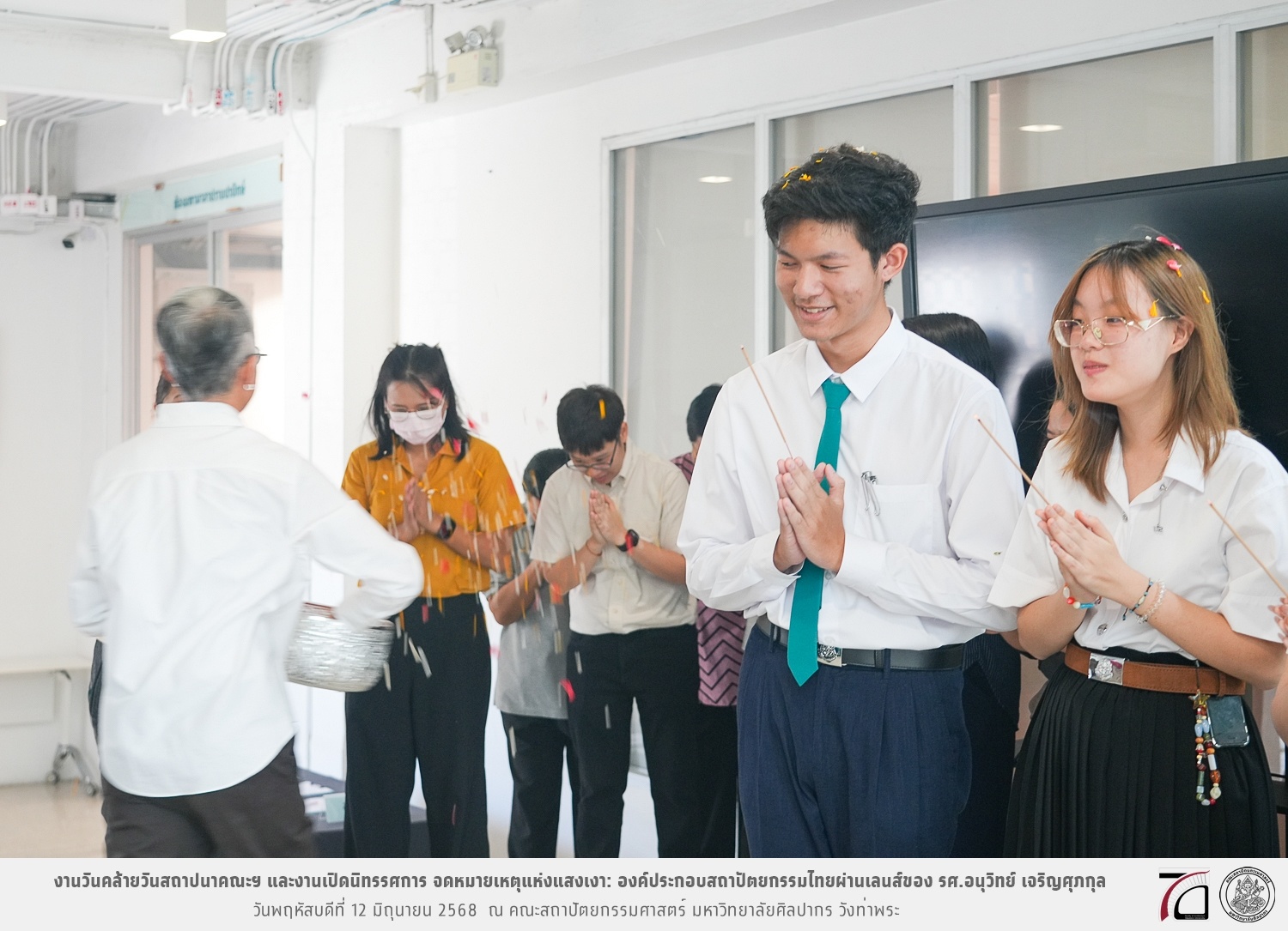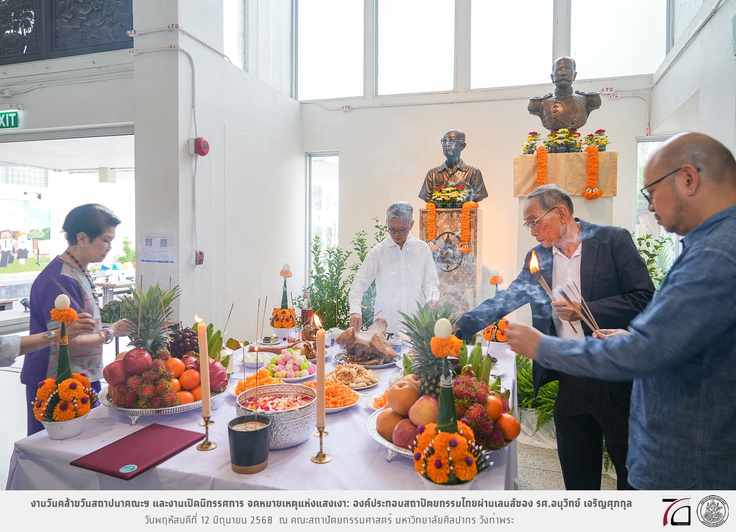 ภาพบรรยากาศงานวันคล้ายวันสถาปนาคณะฯ ในโอกาสก้าวเข้าสู่ปีที่ 71 เมื่อวันพฤหัสบดีที่ 12 มิถุนายน 2568 และมีการเปิดนิทรรศการ จดหมายเหตุแห่งแสงเงา: องค์ประกอบสถาปัตยกรรมไทยผ่านเลนส์ของ รศ.อนุวิทย์ เจริญศุภกุล และเสวนาหัวข้อ “ในแสงมีนัย: บทสนทนากับ รศ. อนุวิทย์ เจริญศุภกุล In Light, There Is Insight: A Conversation with Assoc. Prof. Anuwit Charoensupakul ณ หอศิลปะสถาปัตยกรรมพระพรหมพิจิตร (ห้อง 104) คณะสถาปัตยกรรมศาสตร์
