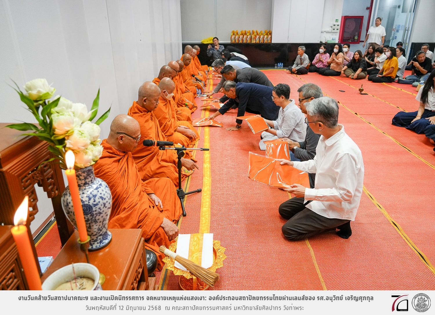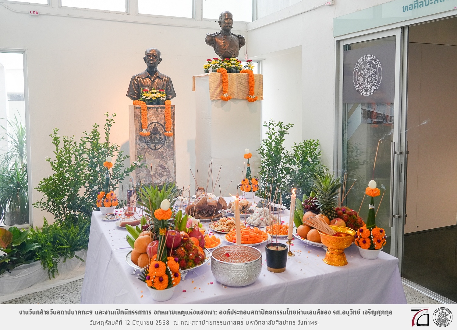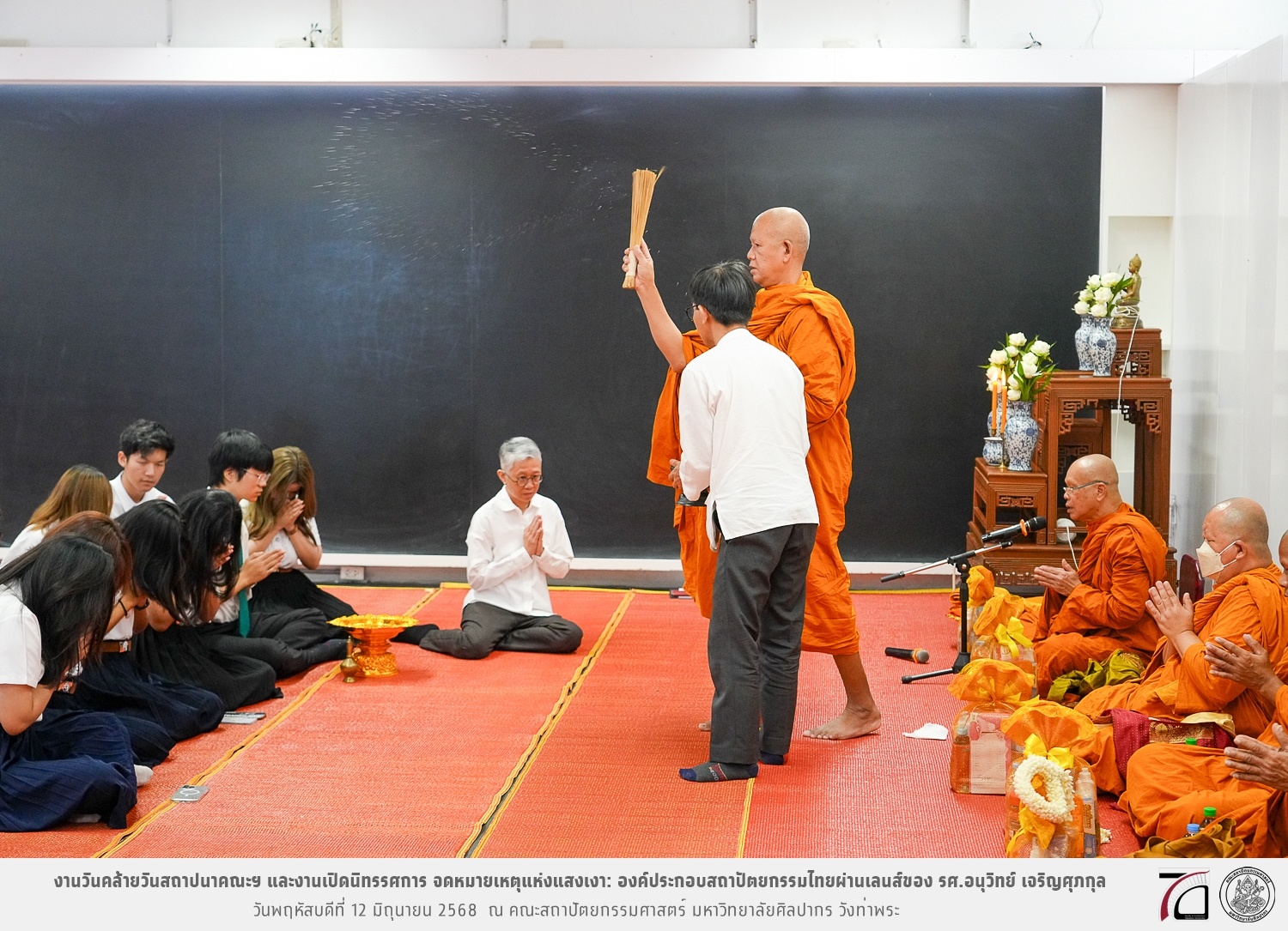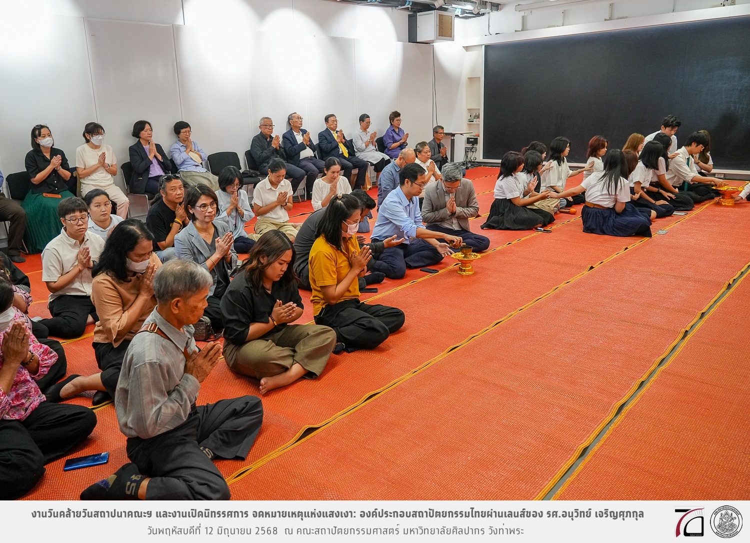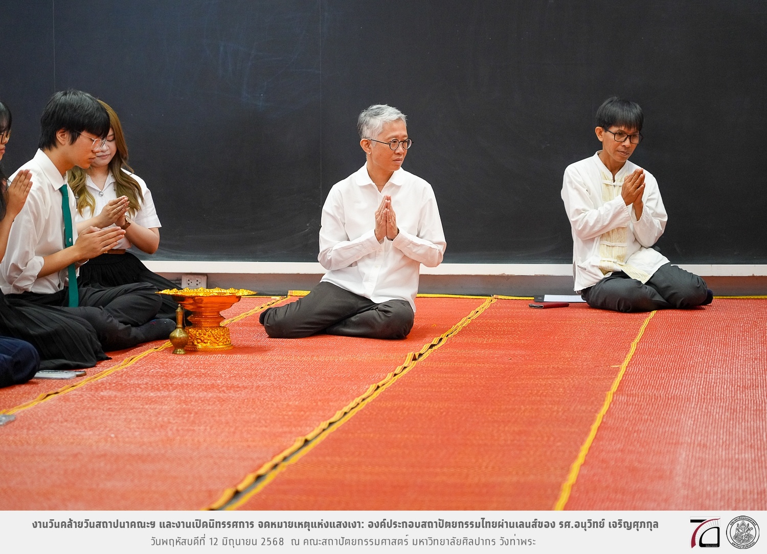 ภาพบรรยากาศงานวันคล้ายวันสถาปนาคณะฯ ในโอกาสก้าวเข้าสู่ปีที่ 71 เมื่อวันพฤหัสบดีที่ 12 มิถุนายน 2568 และมีการเปิดนิทรรศการ จดหมายเหตุแห่งแสงเงา: องค์ประกอบสถาปัตยกรรมไทยผ่านเลนส์ของ รศ.อนุวิทย์ เจริญศุภกุล และเสวนาหัวข้อ “ในแสงมีนัย: บทสนทนากับ รศ. อนุวิทย์ เจริญศุภกุล In Light, There Is Insight: A Conversation with Assoc. Prof. Anuwit Charoensupakul ณ หอศิลปะสถาปัตยกรรมพระพรหมพิจิตร (ห้อง 104) คณะสถาปัตยกรรมศาสตร์