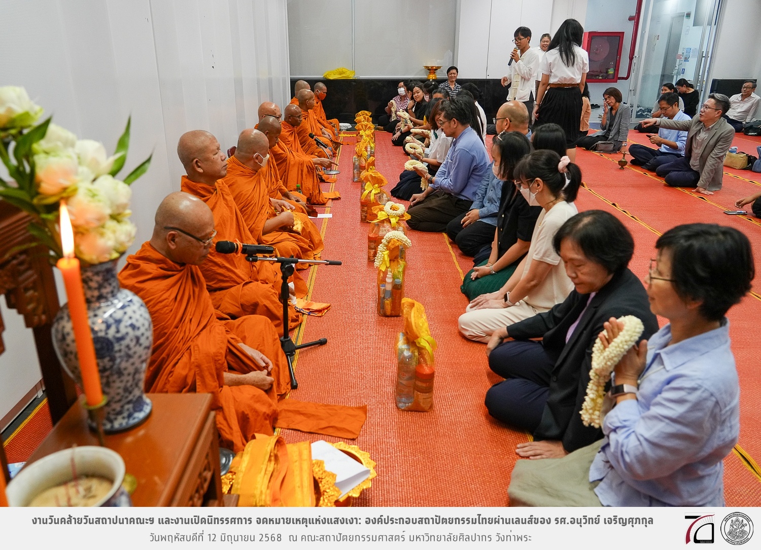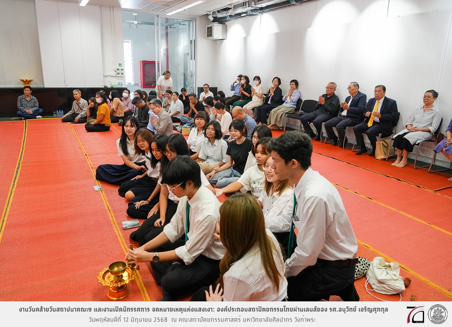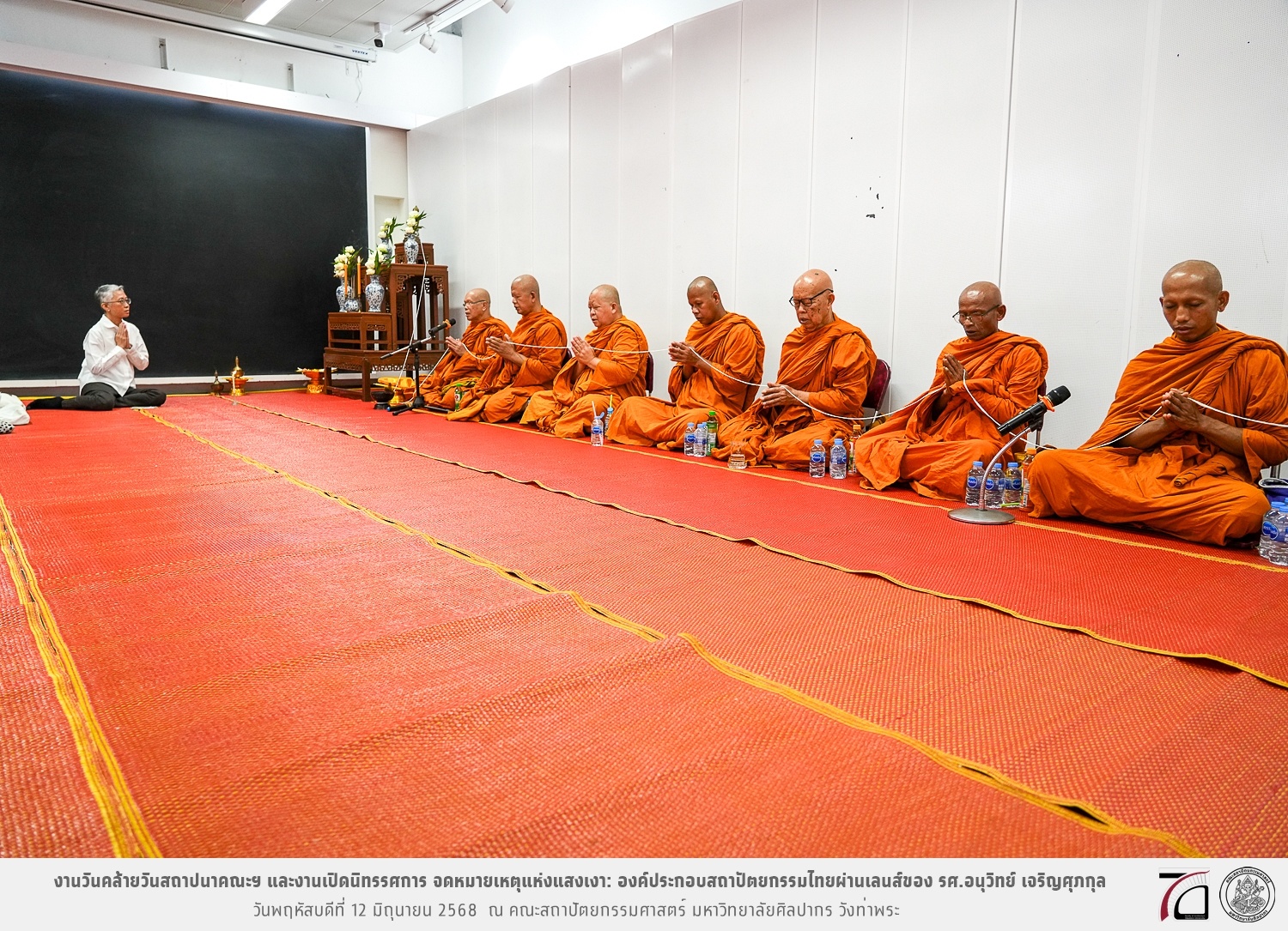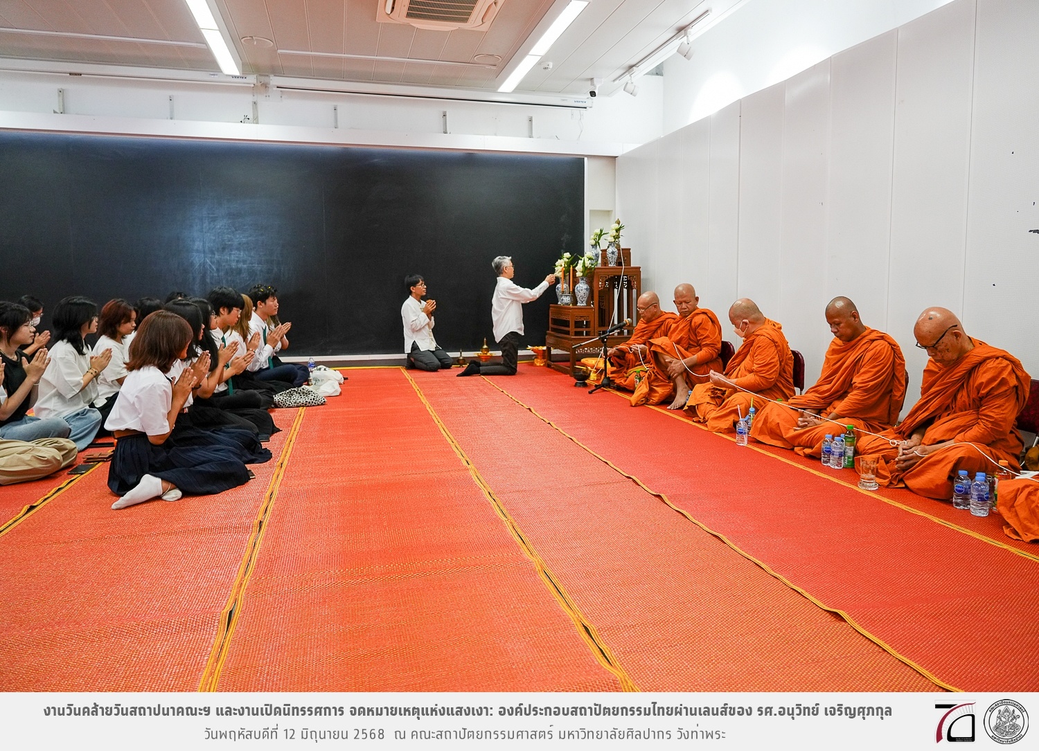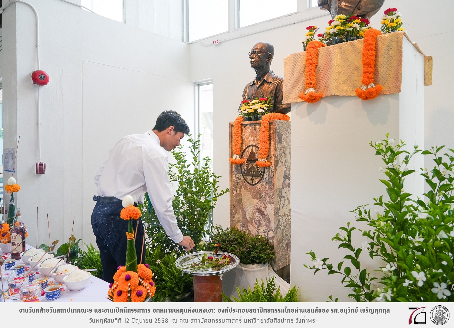 ภาพบรรยากาศงานวันคล้ายวันสถาปนาคณะฯ ในโอกาสก้าวเข้าสู่ปีที่ 71 เมื่อวันพฤหัสบดีที่ 12 มิถุนายน 2568 และมีการเปิดนิทรรศการ จดหมายเหตุแห่งแสงเงา: องค์ประกอบสถาปัตยกรรมไทยผ่านเลนส์ของ รศ.อนุวิทย์ เจริญศุภกุล และเสวนาหัวข้อ “ในแสงมีนัย: บทสนทนากับ รศ. อนุวิทย์ เจริญศุภกุล In Light, There Is Insight: A Conversation with Assoc. Prof. Anuwit Charoensupakul ณ หอศิลปะสถาปัตยกรรมพระพรหมพิจิตร (ห้อง 104) คณะสถาปัตยกรรมศาสตร์