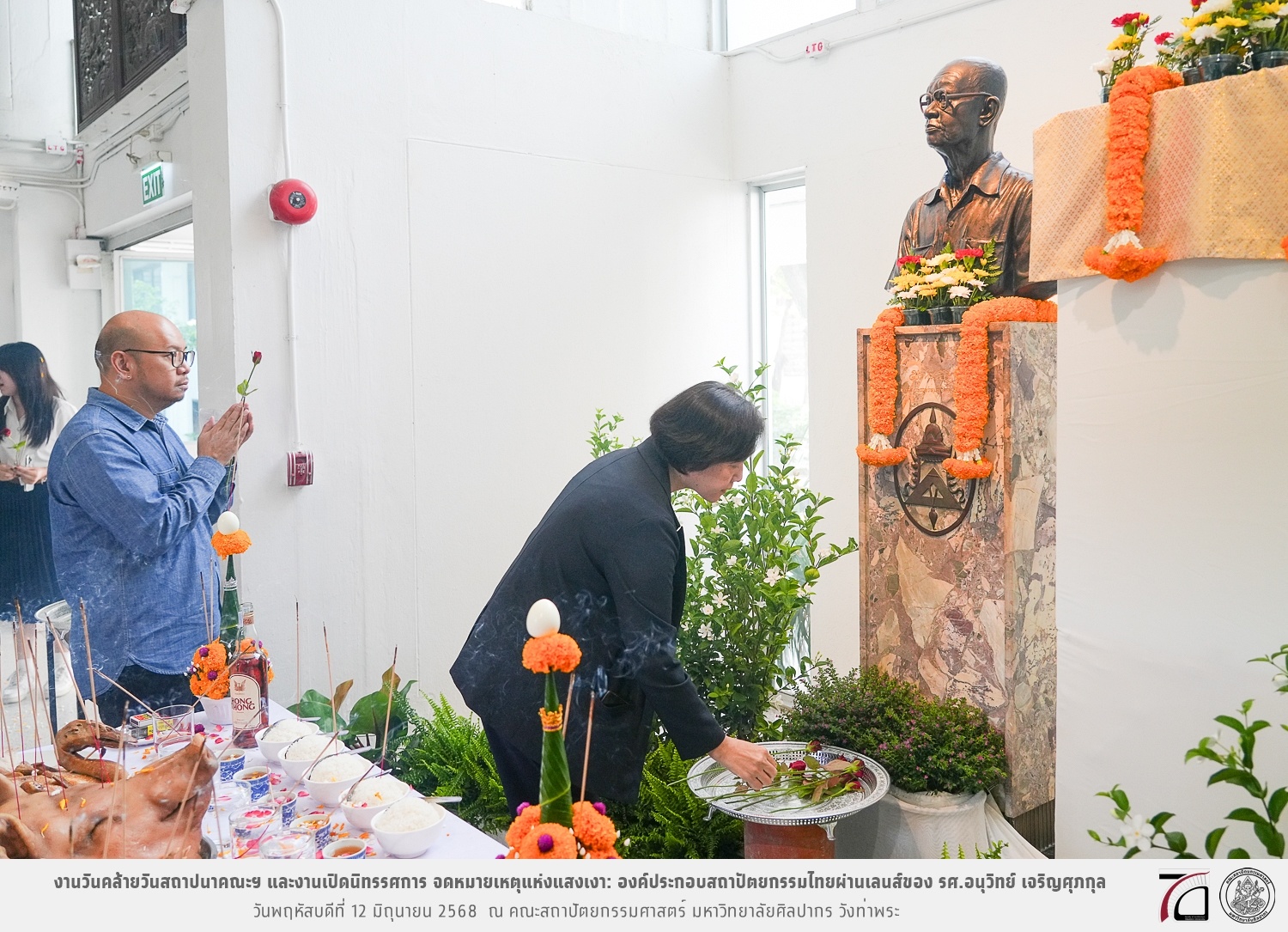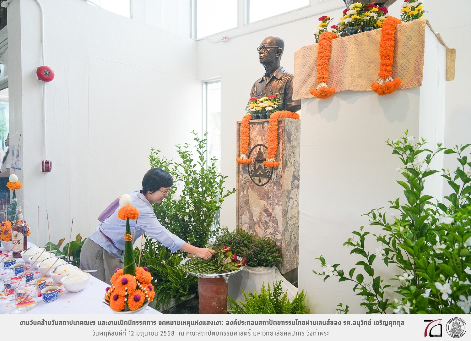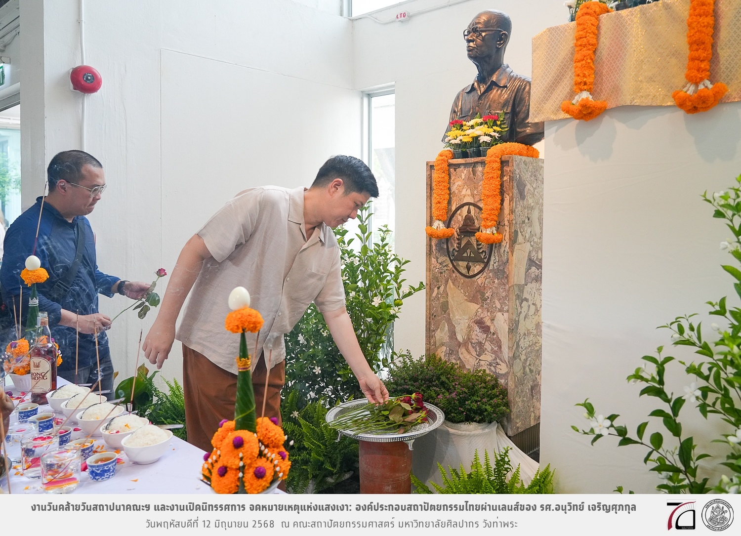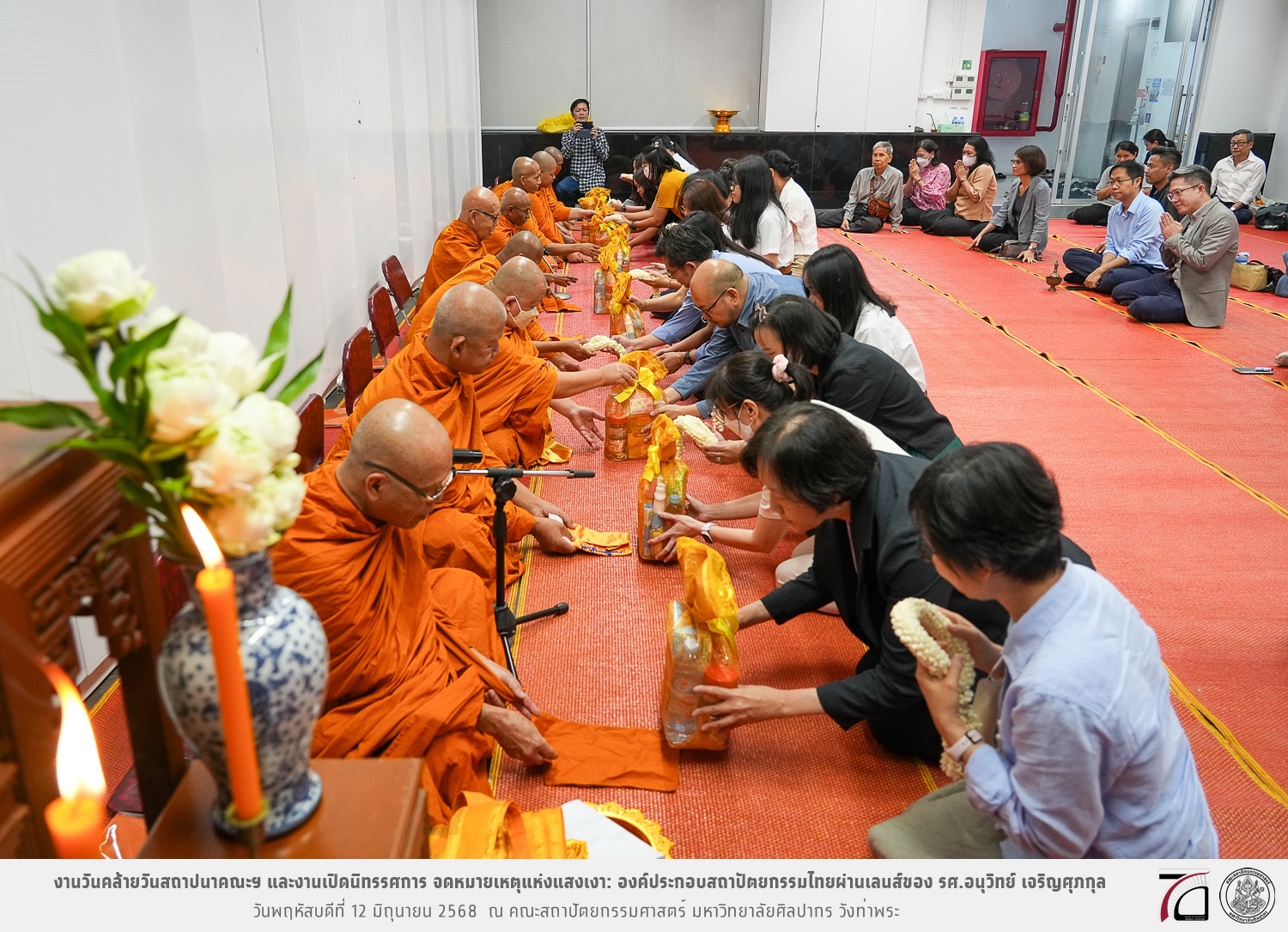 ภาพบรรยากาศงานวันคล้ายวันสถาปนาคณะฯ ในโอกาสก้าวเข้าสู่ปีที่ 71 เมื่อวันพฤหัสบดีที่ 12 มิถุนายน 2568 และมีการเปิดนิทรรศการ จดหมายเหตุแห่งแสงเงา: องค์ประกอบสถาปัตยกรรมไทยผ่านเลนส์ของ รศ.อนุวิทย์ เจริญศุภกุล และเสวนาหัวข้อ “ในแสงมีนัย: บทสนทนากับ รศ. อนุวิทย์ เจริญศุภกุล In Light, There Is Insight: A Conversation with Assoc. Prof. Anuwit Charoensupakul ณ หอศิลปะสถาปัตยกรรมพระพรหมพิจิตร (ห้อง 104) คณะสถาปัตยกรรมศาสตร์