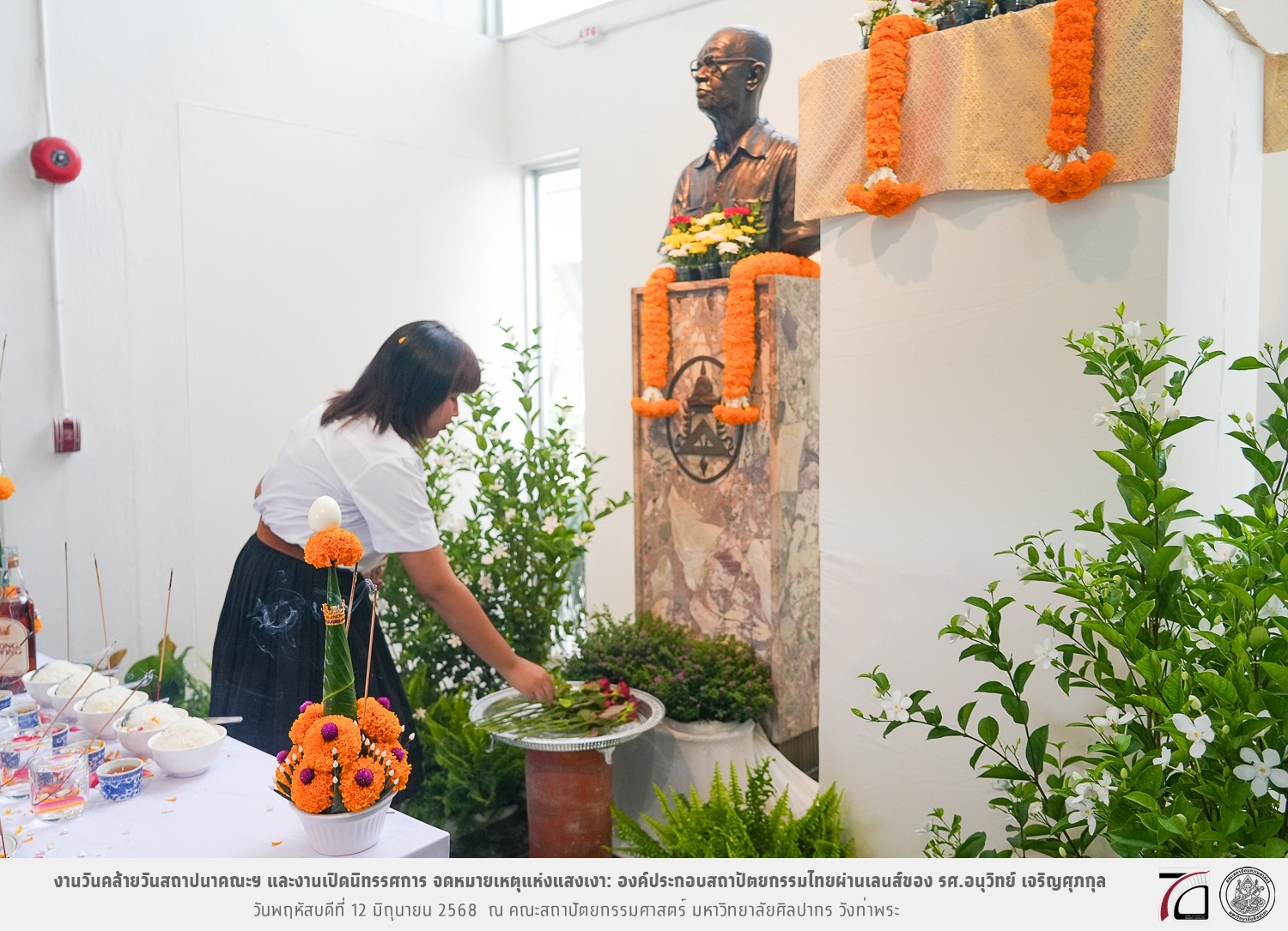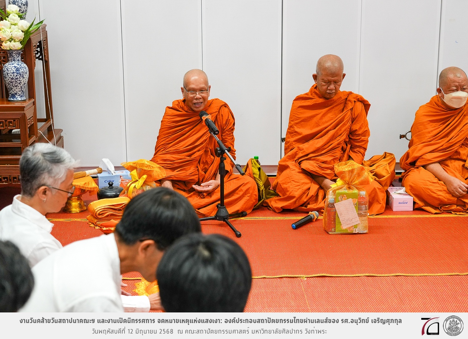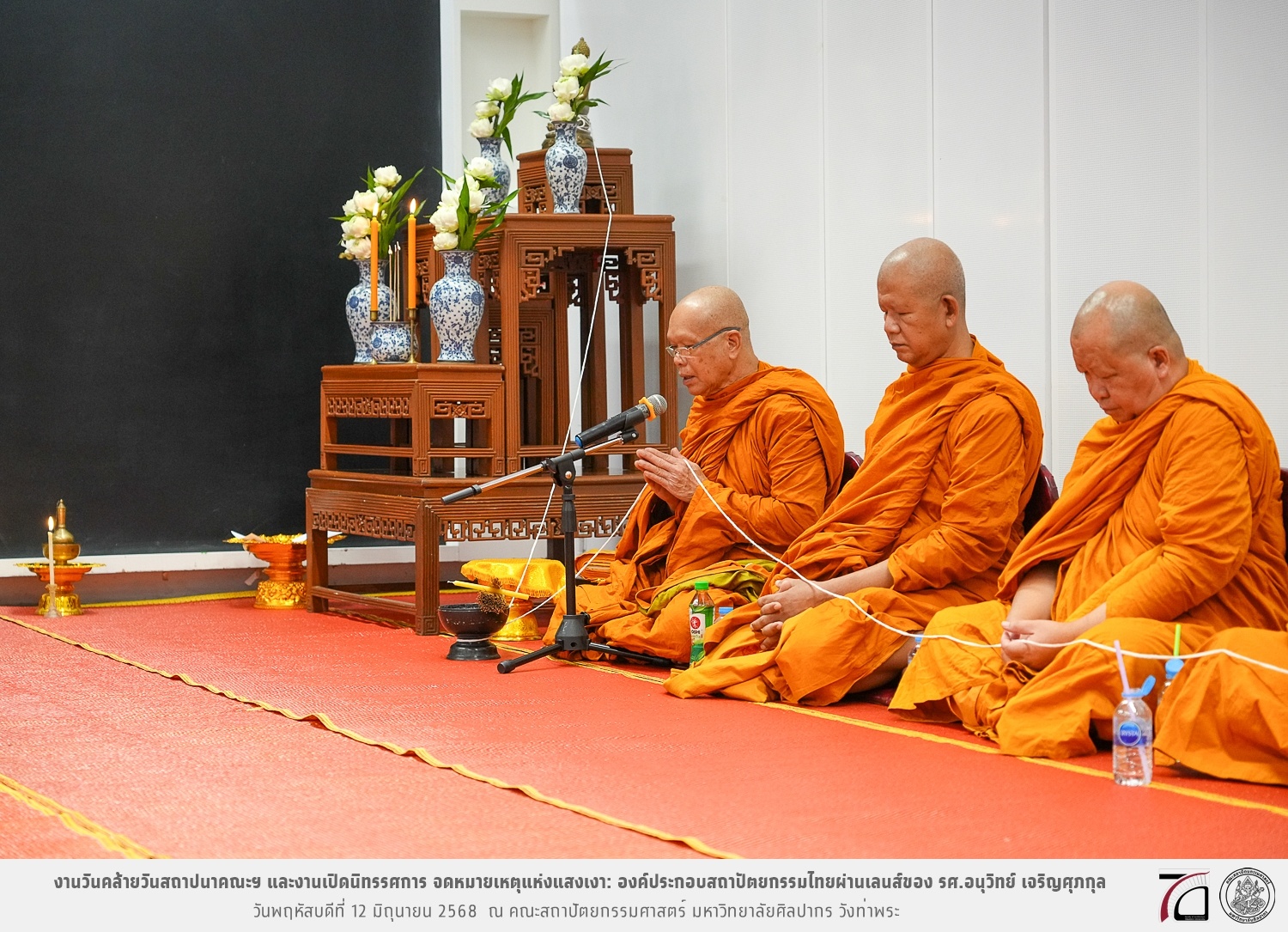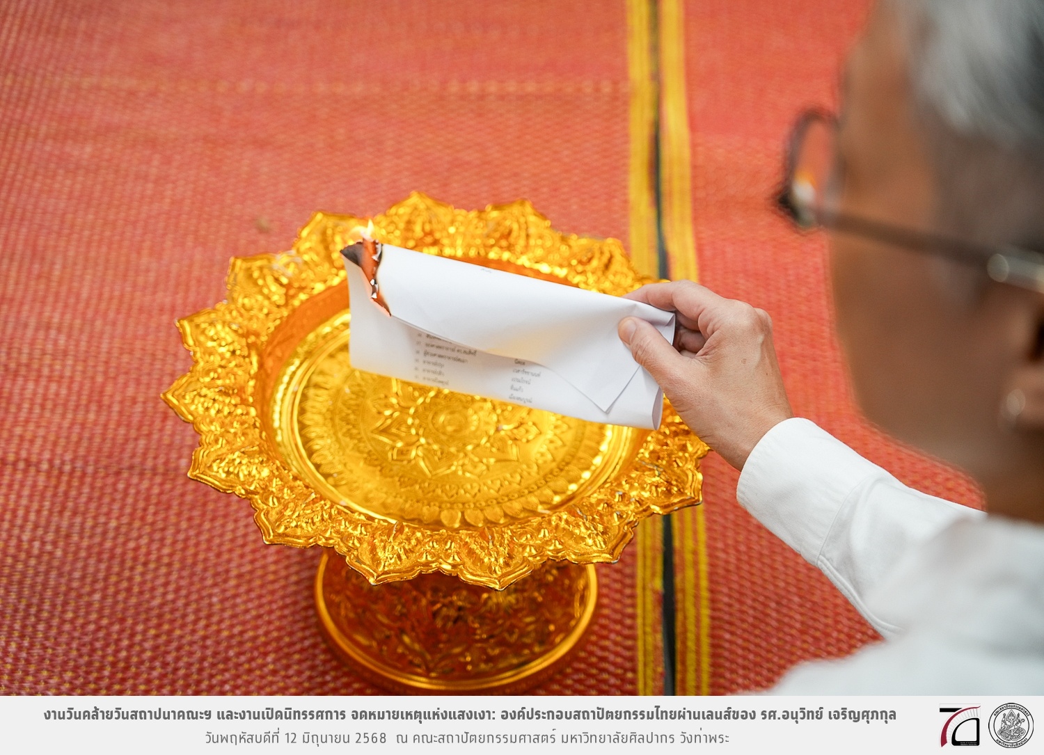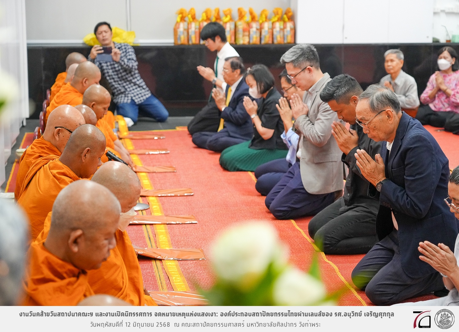ภาพบรรยากาศงานวันคล้ายวันสถาปนาคณะฯ ในโอกาสก้าวเข้าสู่ปีที่ 71 เมื่อวันพฤหัสบดีที่ 12 มิถุนายน 2568 และมีการเปิดนิทรรศการ จดหมายเหตุแห่งแสงเงา: องค์ประกอบสถาปัตยกรรมไทยผ่านเลนส์ของ รศ.อนุวิทย์ เจริญศุภกุล และเสวนาหัวข้อ “ในแสงมีนัย: บทสนทนากับ รศ. อนุวิทย์ เจริญศุภกุล In Light, There Is Insight: A Conversation with Assoc. Prof. Anuwit Charoensupakul ณ หอศิลปะสถาปัตยกรรมพระพรหมพิจิตร (ห้อง 104) คณะสถาปัตยกรรมศาสตร์