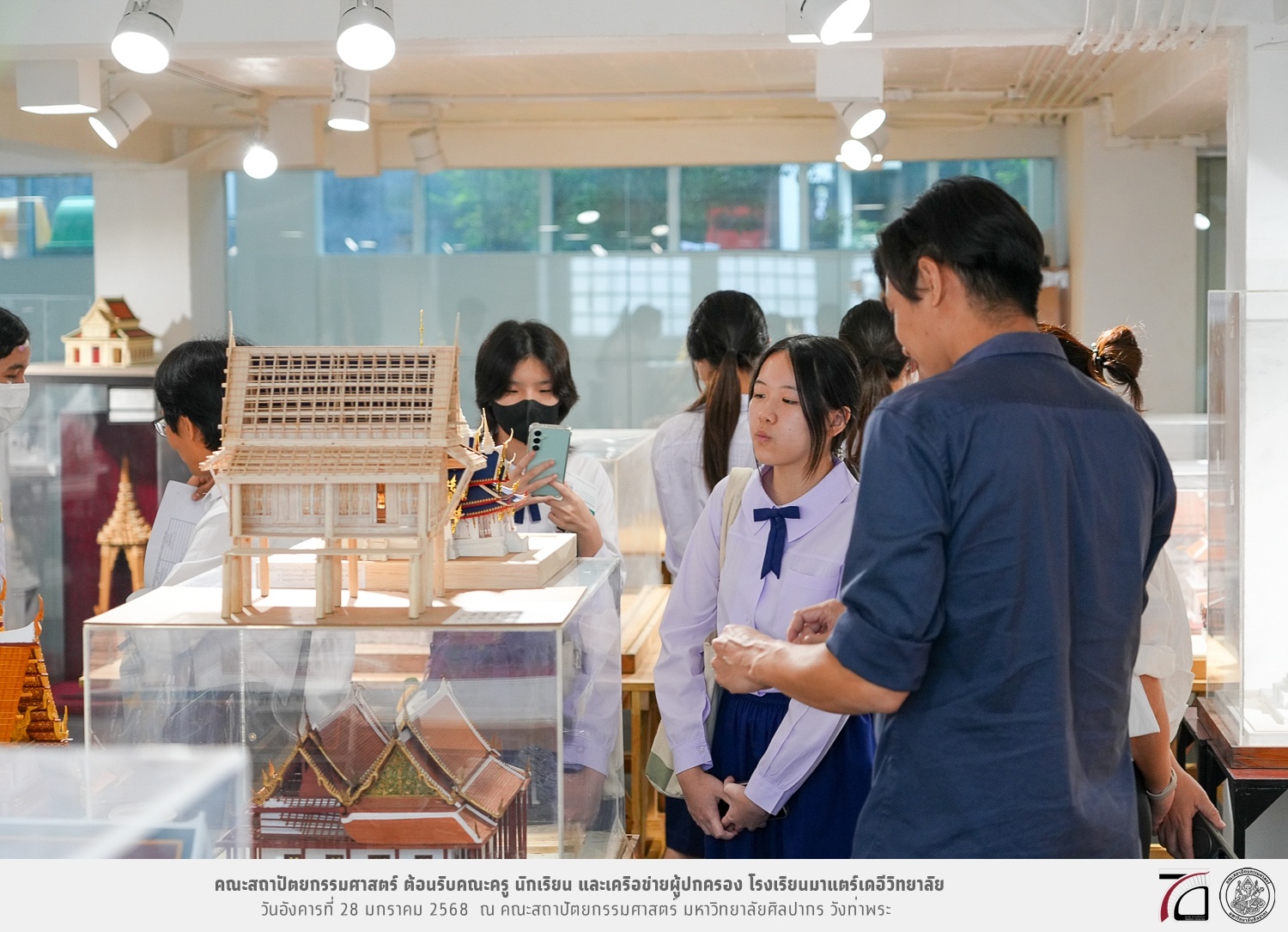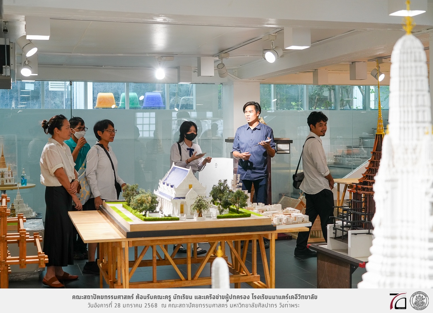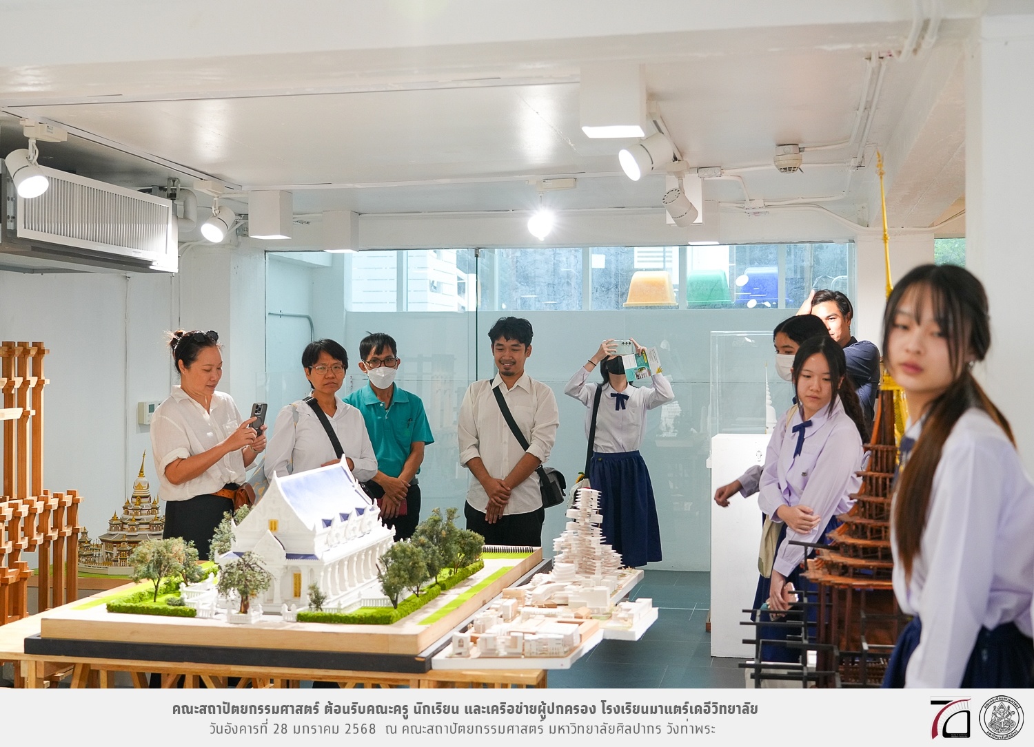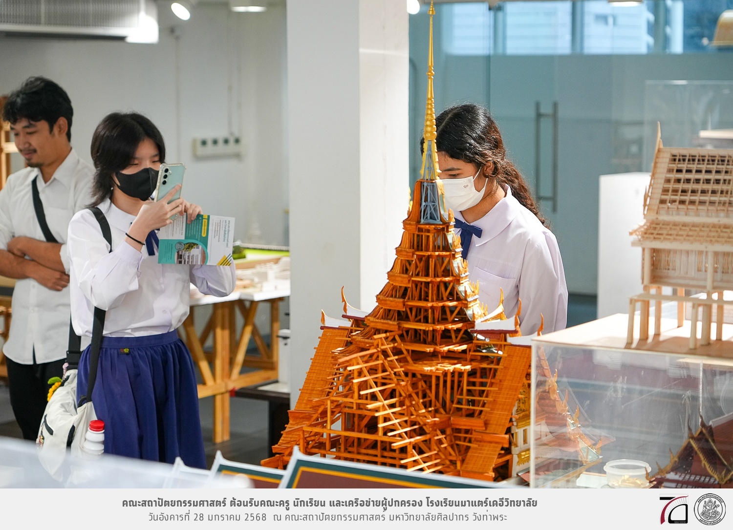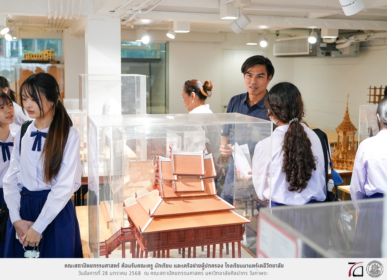 คณะครู นักเรียน และเครือข่ายผู้ปกครอง โรงเรียนมาแตร์เดอีวิทยาลัย เยี่ยมชมการเรียนการสอนคณะสถาปัตยกรรมศาสตร์ โดยมีผู้ช่วยศาสตราจารย์ ดร. เจนยุทธ ล่อใจ รองคณบดีฝ่ายกิจการนักศึกษา และผู้ช่วยศาสตราจารย์ ดร. ธาริณี รามสูต รองคณบดีฝ่ายวิชาการ ให้เกียรติแนะแนวการศึกษาต่อและนำชมคณะสถาปัตยกรรมศาสตร์ และบรรยากาศโดยรอบของมหาวิทยาลัยศิลปากร วังท่าพระ เมื่อวันอังคารที่ 28 มกราคม 2568 ณ คณะสถาปัตยกรรมศาสตร์ มหาวิทยาลัยศิลปากร วังท่าพระ