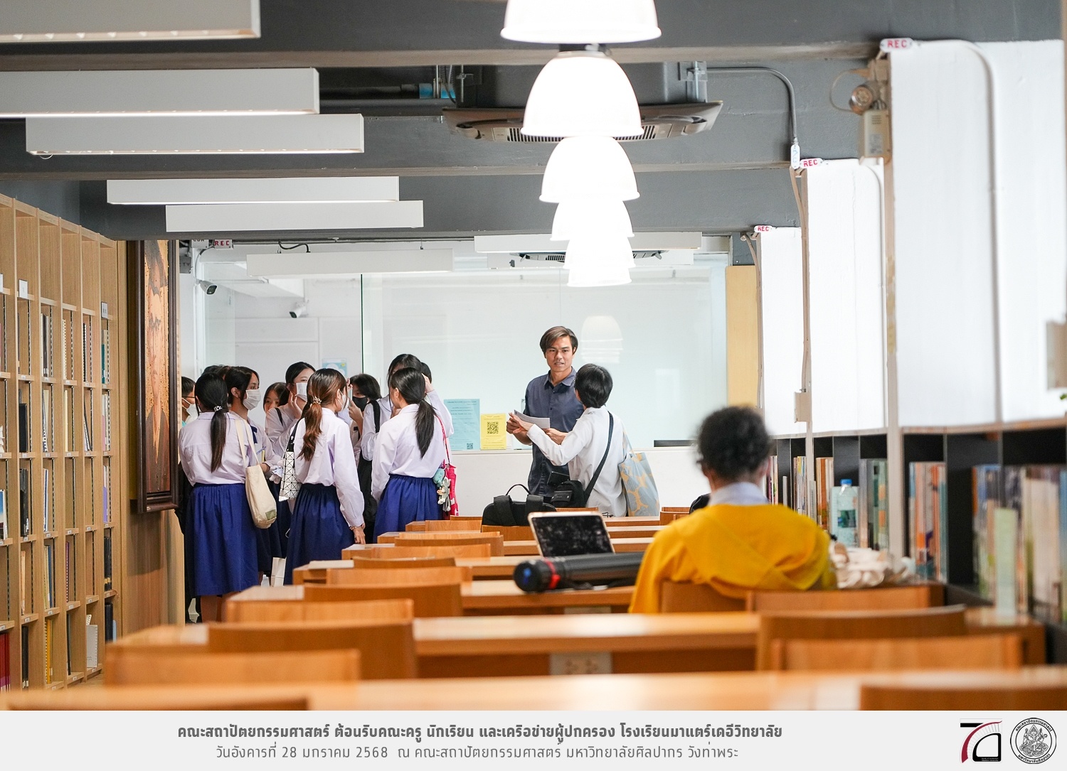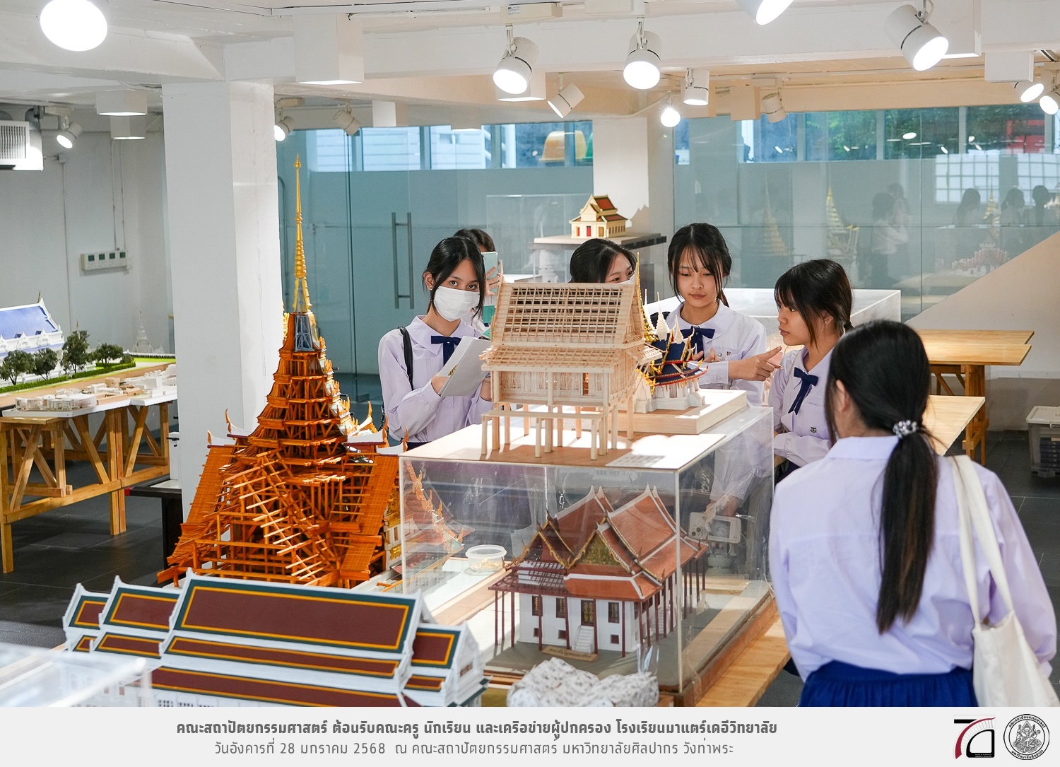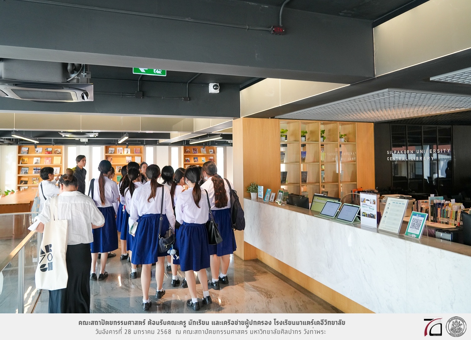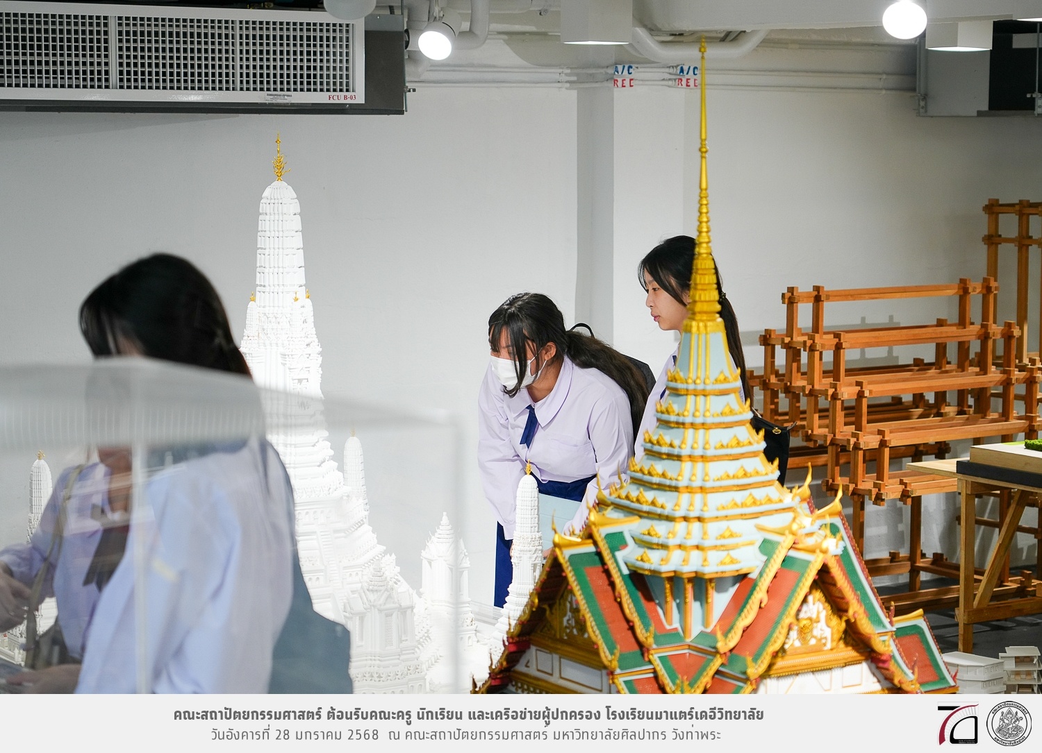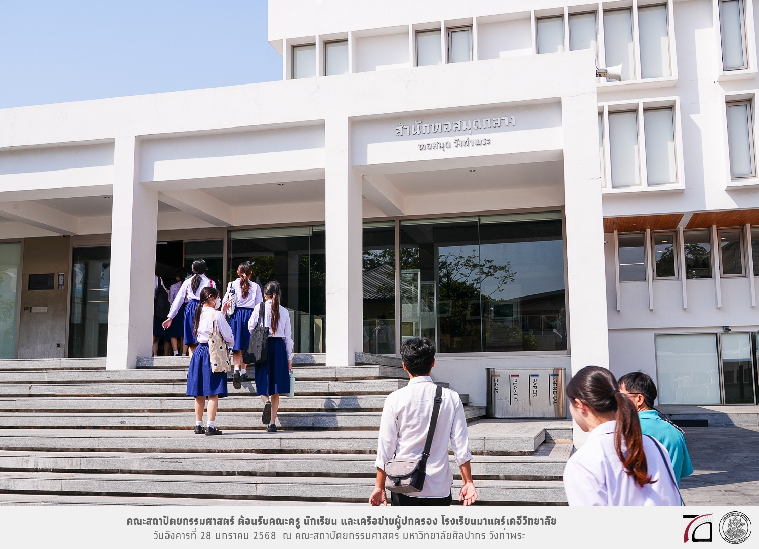คณะครู นักเรียน และเครือข่ายผู้ปกครอง โรงเรียนมาแตร์เดอีวิทยาลัย เยี่ยมชมการเรียนการสอนคณะสถาปัตยกรรมศาสตร์ โดยมีผู้ช่วยศาสตราจารย์ ดร. เจนยุทธ ล่อใจ รองคณบดีฝ่ายกิจการนักศึกษา และผู้ช่วยศาสตราจารย์ ดร. ธาริณี รามสูต รองคณบดีฝ่ายวิชาการ ให้เกียรติแนะแนวการศึกษาต่อและนำชมคณะสถาปัตยกรรมศาสตร์ และบรรยากาศโดยรอบของมหาวิทยาลัยศิลปากร วังท่าพระ เมื่อวันอังคารที่ 28 มกราคม 2568 ณ คณะสถาปัตยกรรมศาสตร์ มหาวิทยาลัยศิลปากร วังท่าพระ