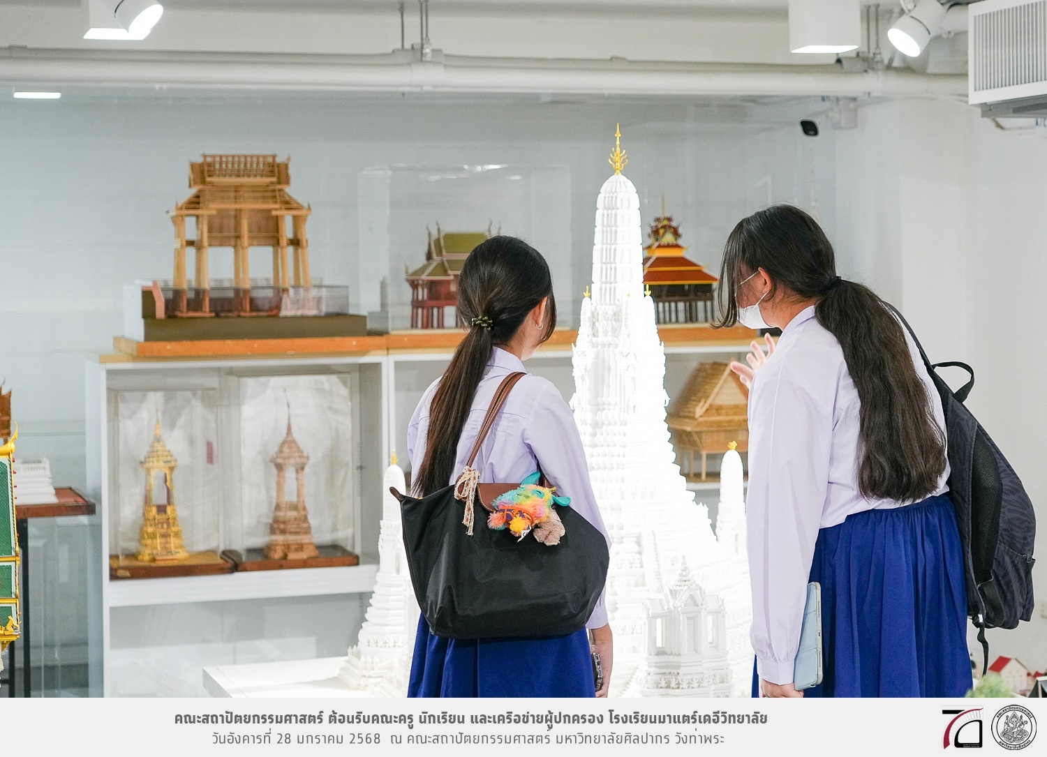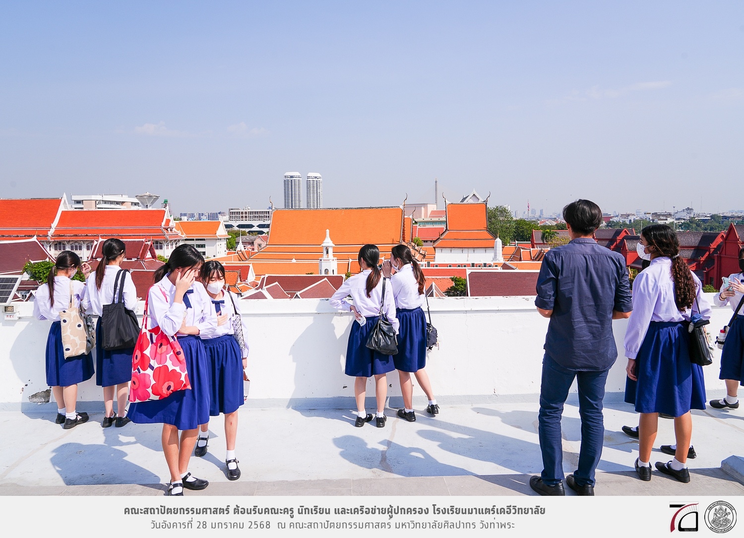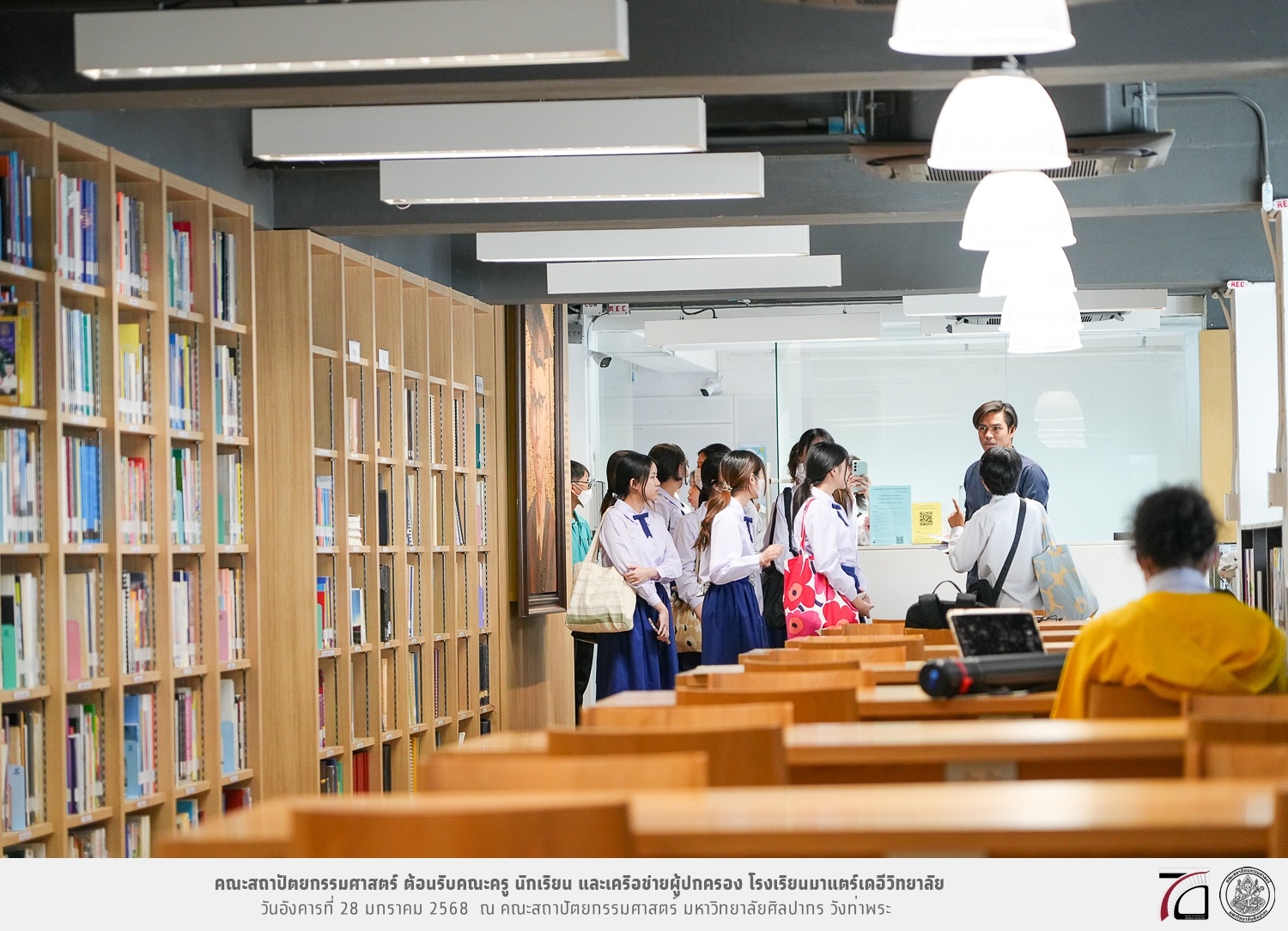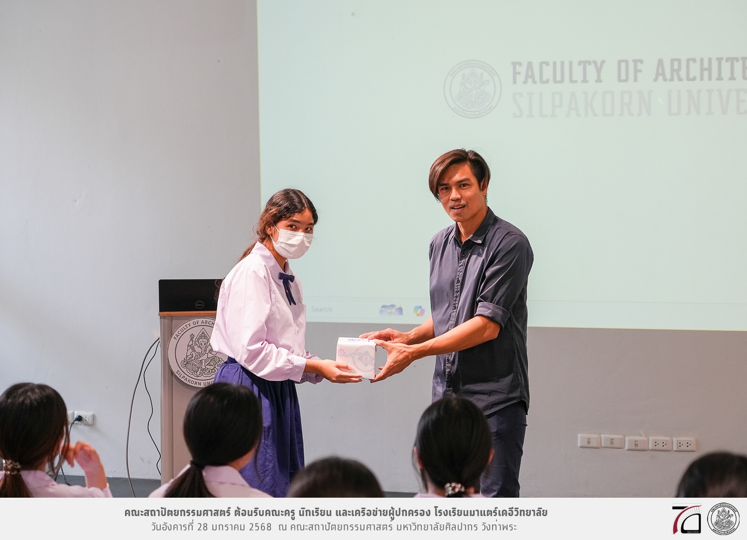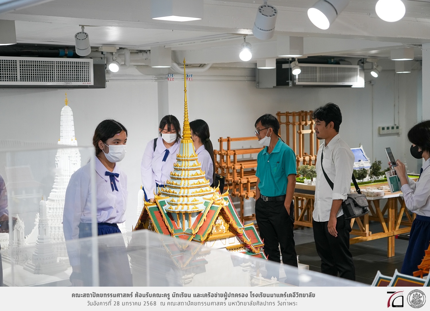 คณะครู นักเรียน และเครือข่ายผู้ปกครอง โรงเรียนมาแตร์เดอีวิทยาลัย เยี่ยมชมการเรียนการสอนคณะสถาปัตยกรรมศาสตร์ โดยมีผู้ช่วยศาสตราจารย์ ดร. เจนยุทธ ล่อใจ รองคณบดีฝ่ายกิจการนักศึกษา และผู้ช่วยศาสตราจารย์ ดร. ธาริณี รามสูต รองคณบดีฝ่ายวิชาการ ให้เกียรติแนะแนวการศึกษาต่อและนำชมคณะสถาปัตยกรรมศาสตร์ และบรรยากาศโดยรอบของมหาวิทยาลัยศิลปากร วังท่าพระ เมื่อวันอังคารที่ 28 มกราคม 2568 ณ คณะสถาปัตยกรรมศาสตร์ มหาวิทยาลัยศิลปากร วังท่าพระ