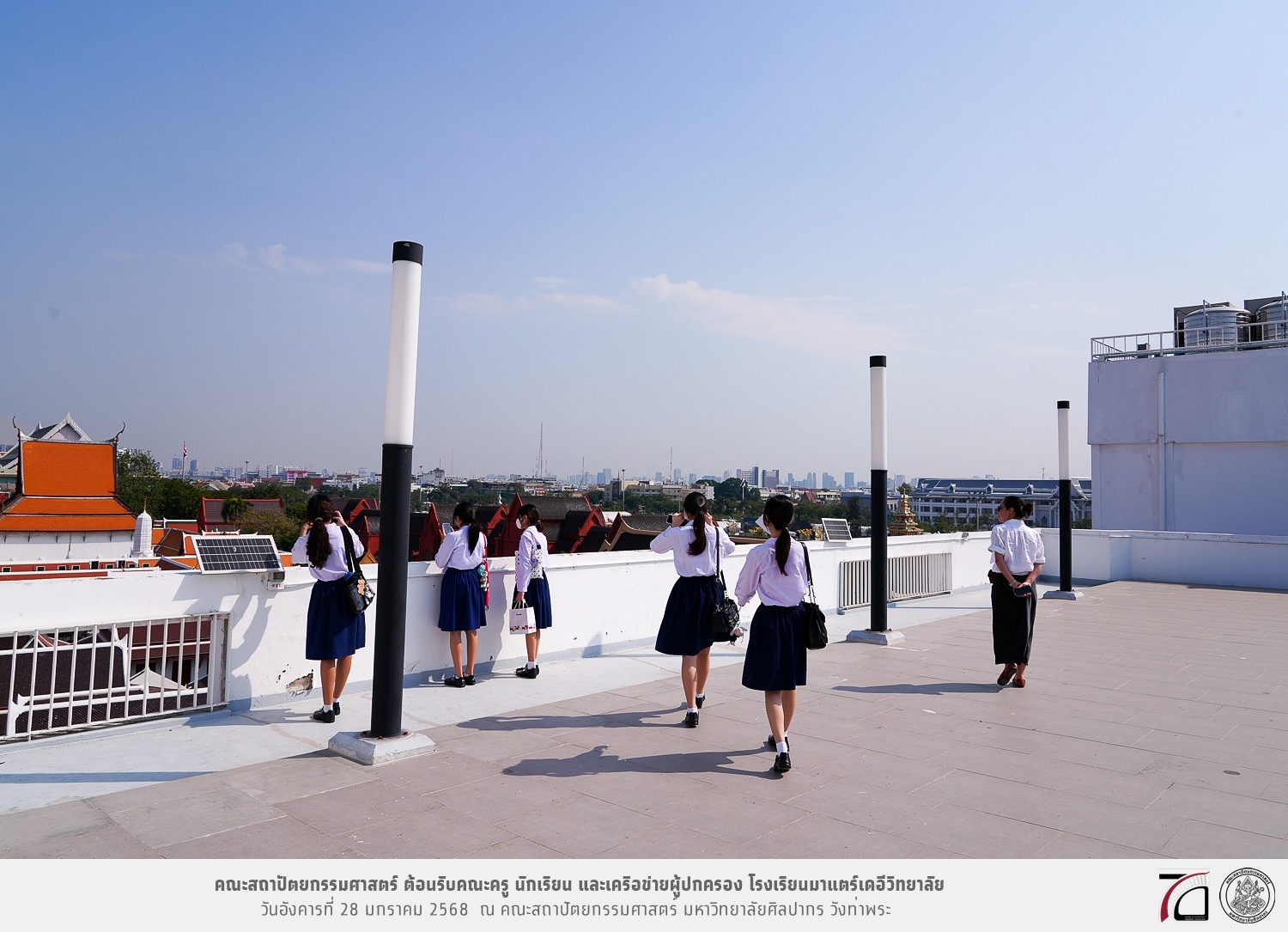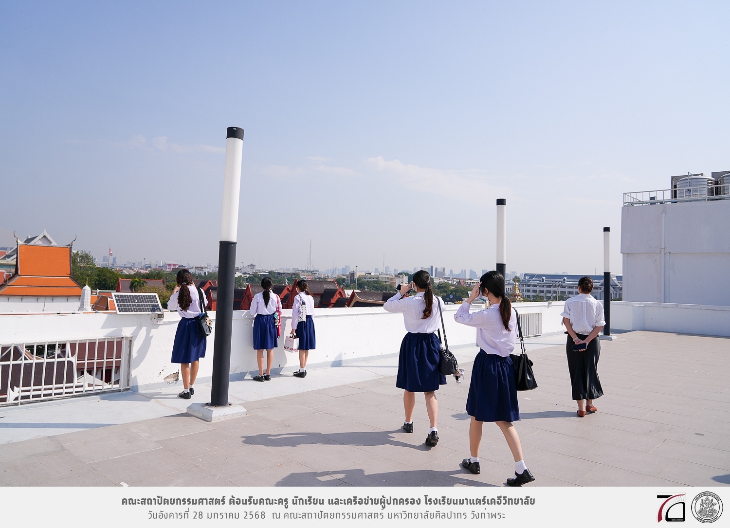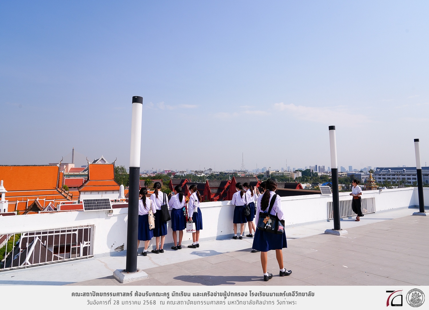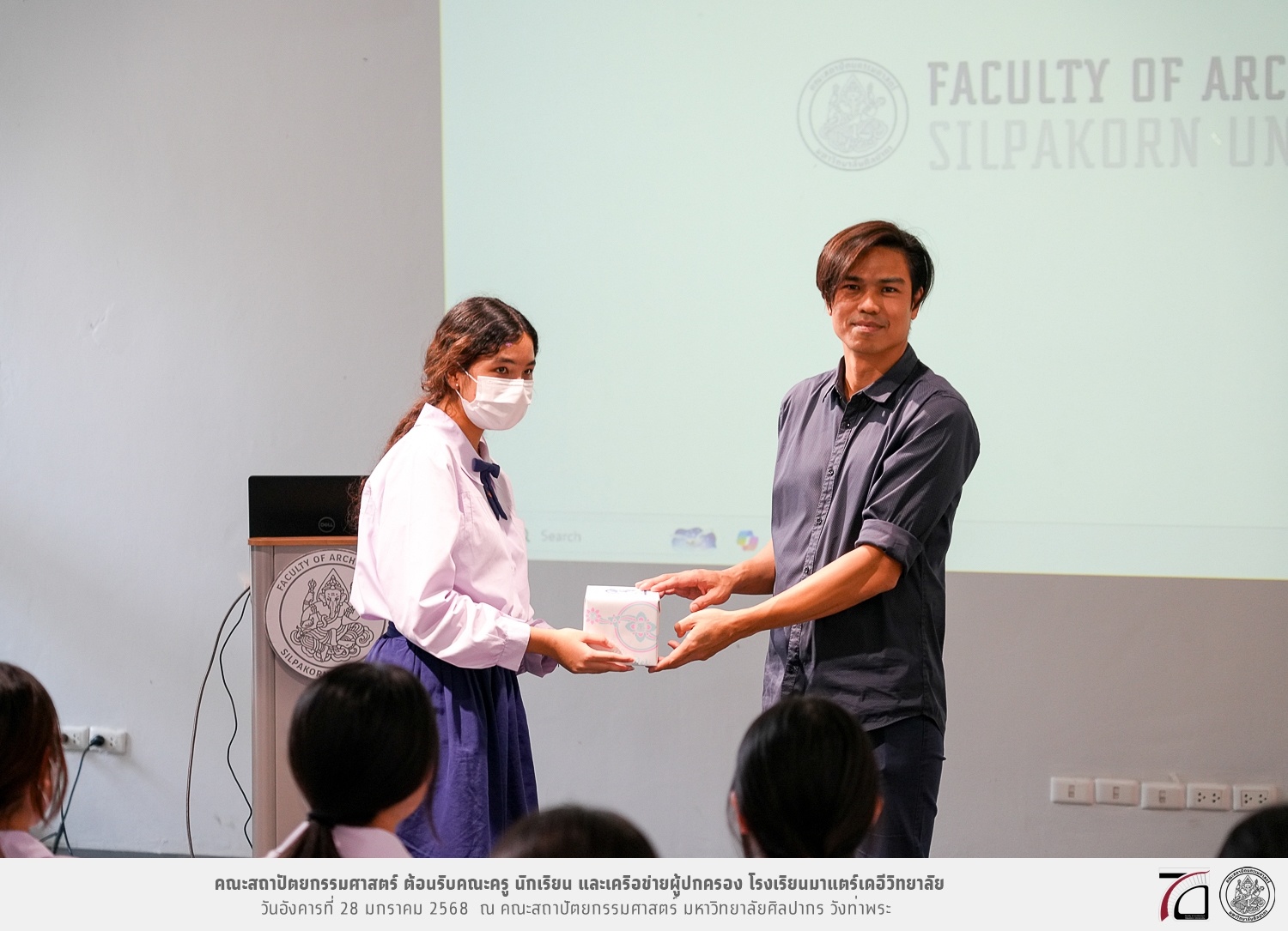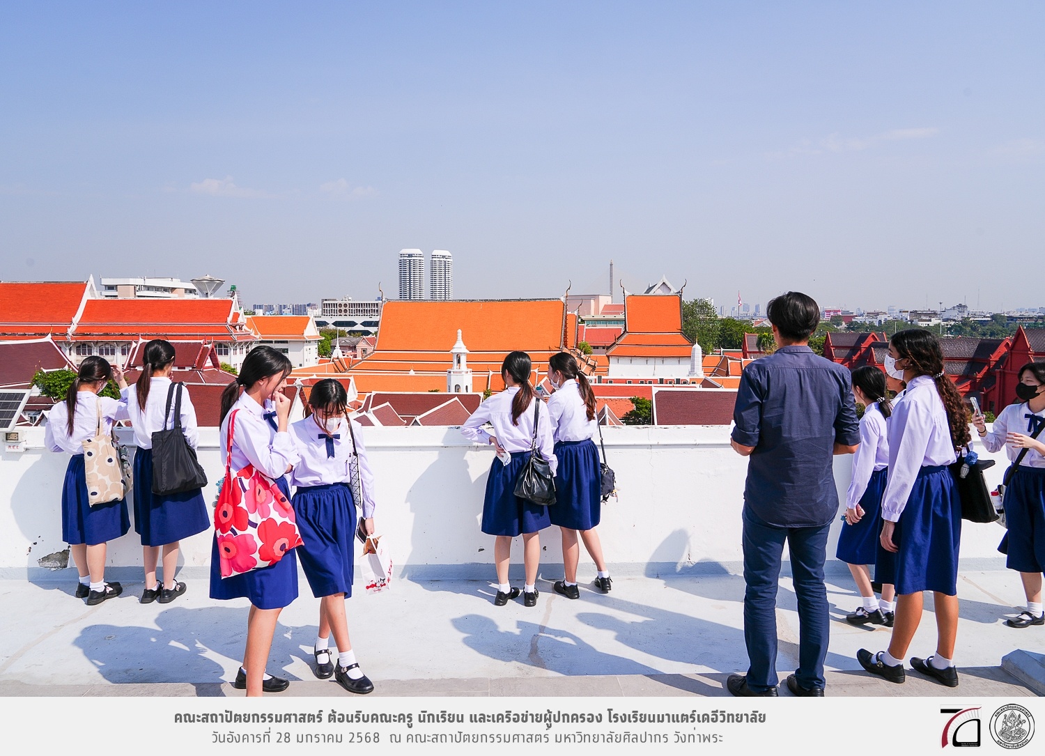 คณะครู นักเรียน และเครือข่ายผู้ปกครอง โรงเรียนมาแตร์เดอีวิทยาลัย เยี่ยมชมการเรียนการสอนคณะสถาปัตยกรรมศาสตร์ โดยมีผู้ช่วยศาสตราจารย์ ดร. เจนยุทธ ล่อใจ รองคณบดีฝ่ายกิจการนักศึกษา และผู้ช่วยศาสตราจารย์ ดร. ธาริณี รามสูต รองคณบดีฝ่ายวิชาการ ให้เกียรติแนะแนวการศึกษาต่อและนำชมคณะสถาปัตยกรรมศาสตร์ และบรรยากาศโดยรอบของมหาวิทยาลัยศิลปากร วังท่าพระ เมื่อวันอังคารที่ 28 มกราคม 2568 ณ คณะสถาปัตยกรรมศาสตร์ มหาวิทยาลัยศิลปากร วังท่าพระ