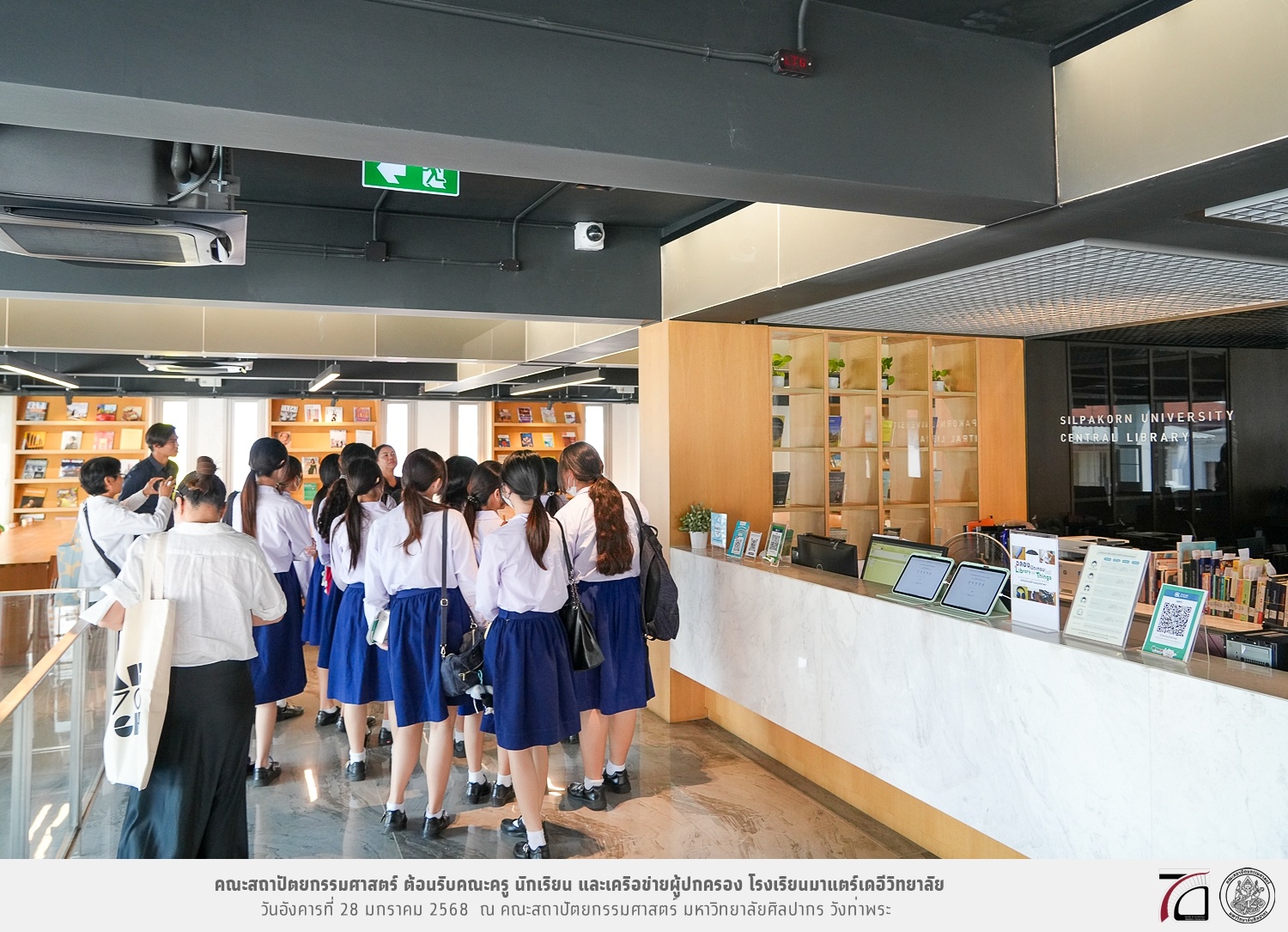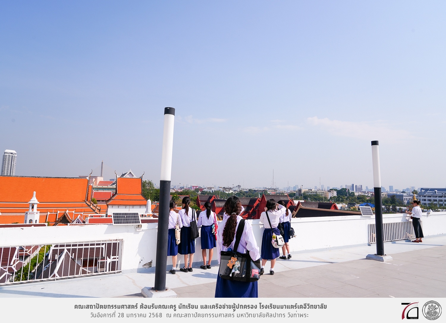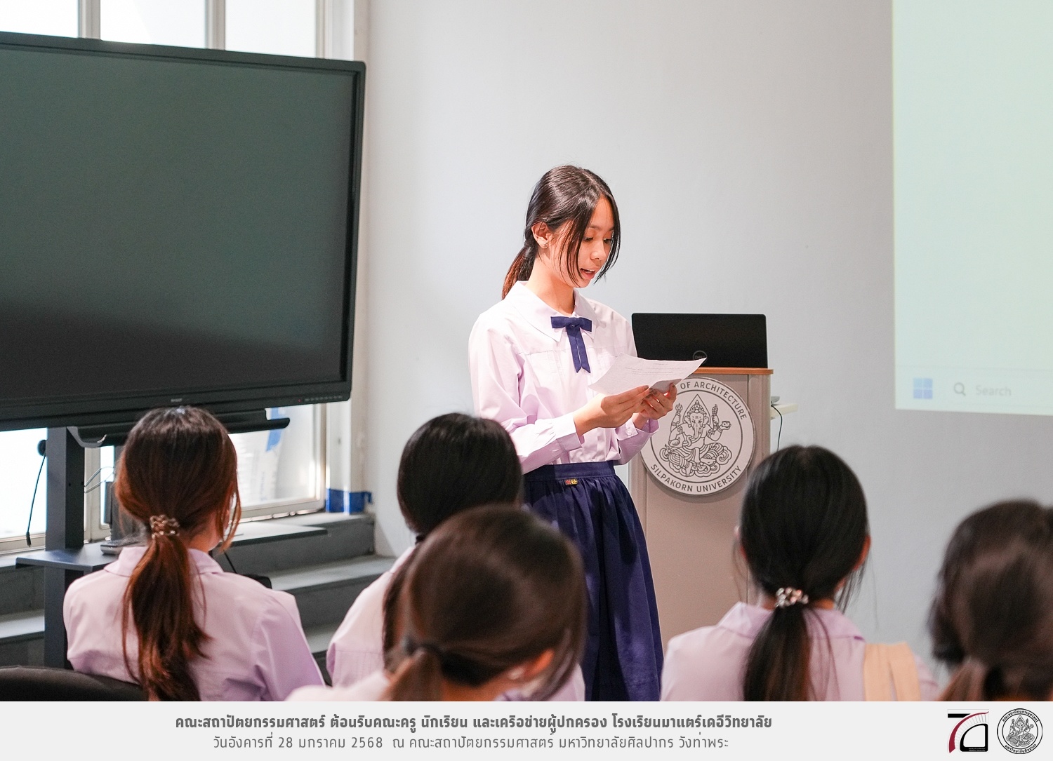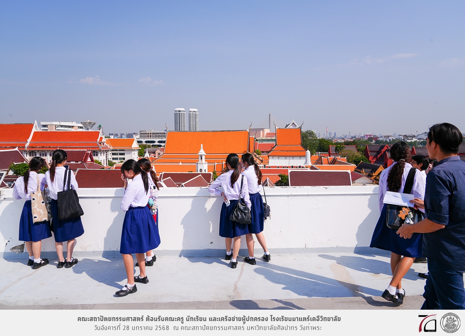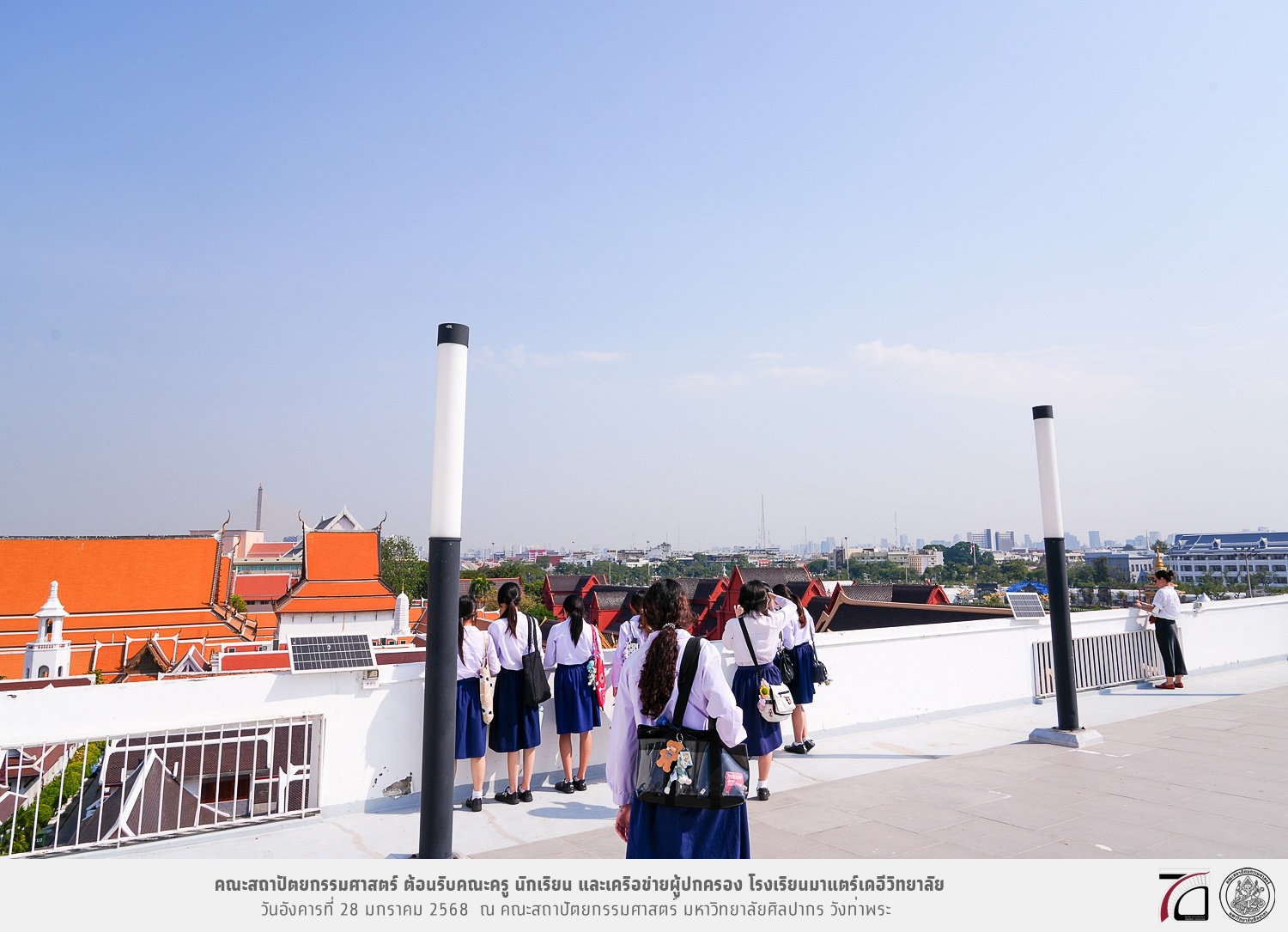 คณะครู นักเรียน และเครือข่ายผู้ปกครอง โรงเรียนมาแตร์เดอีวิทยาลัย เยี่ยมชมการเรียนการสอนคณะสถาปัตยกรรมศาสตร์ โดยมีผู้ช่วยศาสตราจารย์ ดร. เจนยุทธ ล่อใจ รองคณบดีฝ่ายกิจการนักศึกษา และผู้ช่วยศาสตราจารย์ ดร. ธาริณี รามสูต รองคณบดีฝ่ายวิชาการ ให้เกียรติแนะแนวการศึกษาต่อและนำชมคณะสถาปัตยกรรมศาสตร์ และบรรยากาศโดยรอบของมหาวิทยาลัยศิลปากร วังท่าพระ เมื่อวันอังคารที่ 28 มกราคม 2568 ณ คณะสถาปัตยกรรมศาสตร์ มหาวิทยาลัยศิลปากร วังท่าพระ