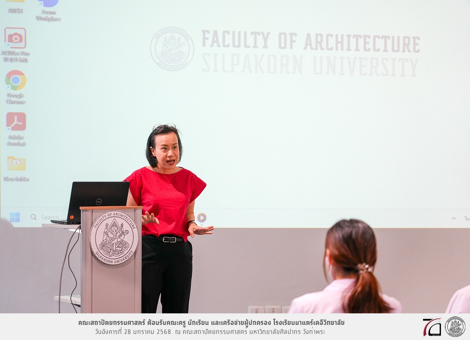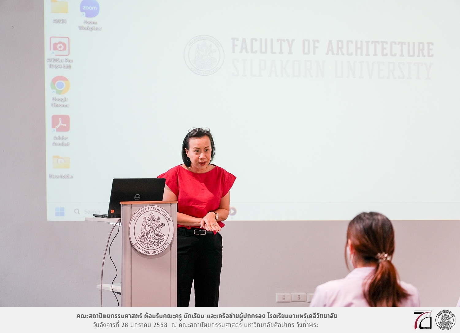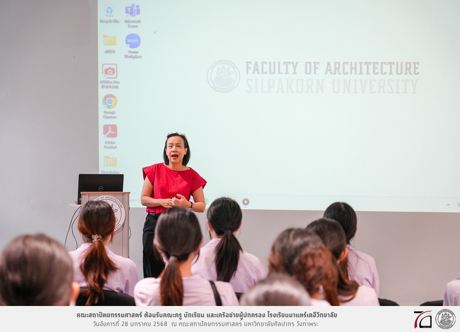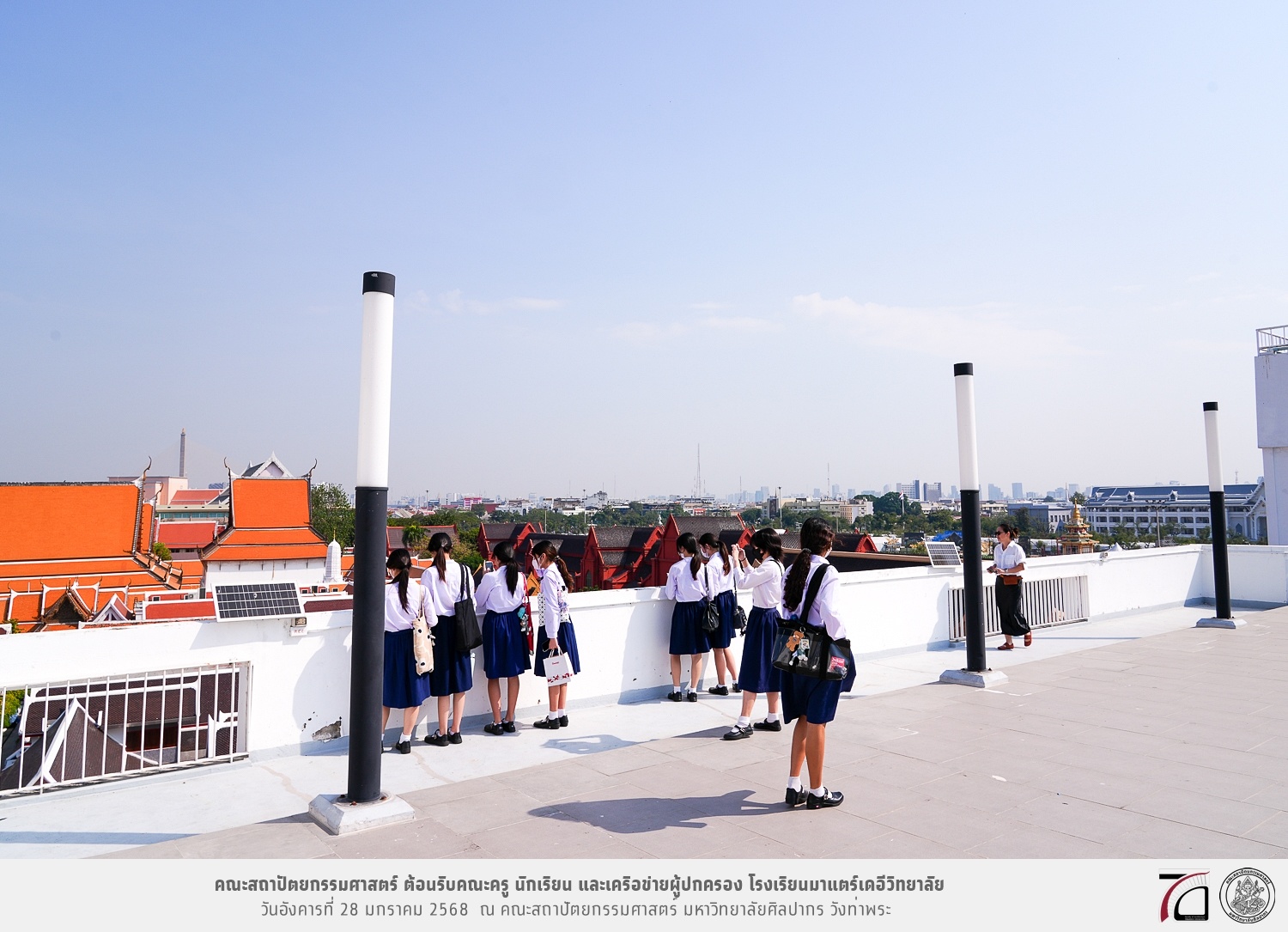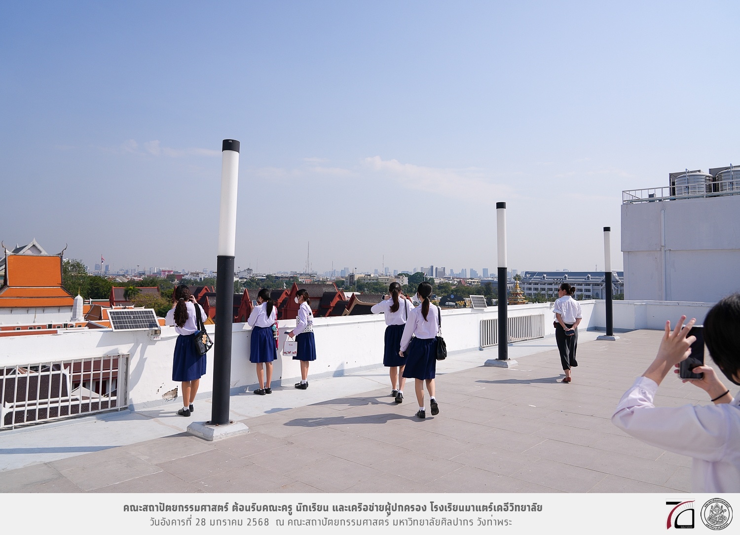 คณะครู นักเรียน และเครือข่ายผู้ปกครอง โรงเรียนมาแตร์เดอีวิทยาลัย เยี่ยมชมการเรียนการสอนคณะสถาปัตยกรรมศาสตร์ โดยมีผู้ช่วยศาสตราจารย์ ดร. เจนยุทธ ล่อใจ รองคณบดีฝ่ายกิจการนักศึกษา และผู้ช่วยศาสตราจารย์ ดร. ธาริณี รามสูต รองคณบดีฝ่ายวิชาการ ให้เกียรติแนะแนวการศึกษาต่อและนำชมคณะสถาปัตยกรรมศาสตร์ และบรรยากาศโดยรอบของมหาวิทยาลัยศิลปากร วังท่าพระ เมื่อวันอังคารที่ 28 มกราคม 2568 ณ คณะสถาปัตยกรรมศาสตร์ มหาวิทยาลัยศิลปากร วังท่าพระ