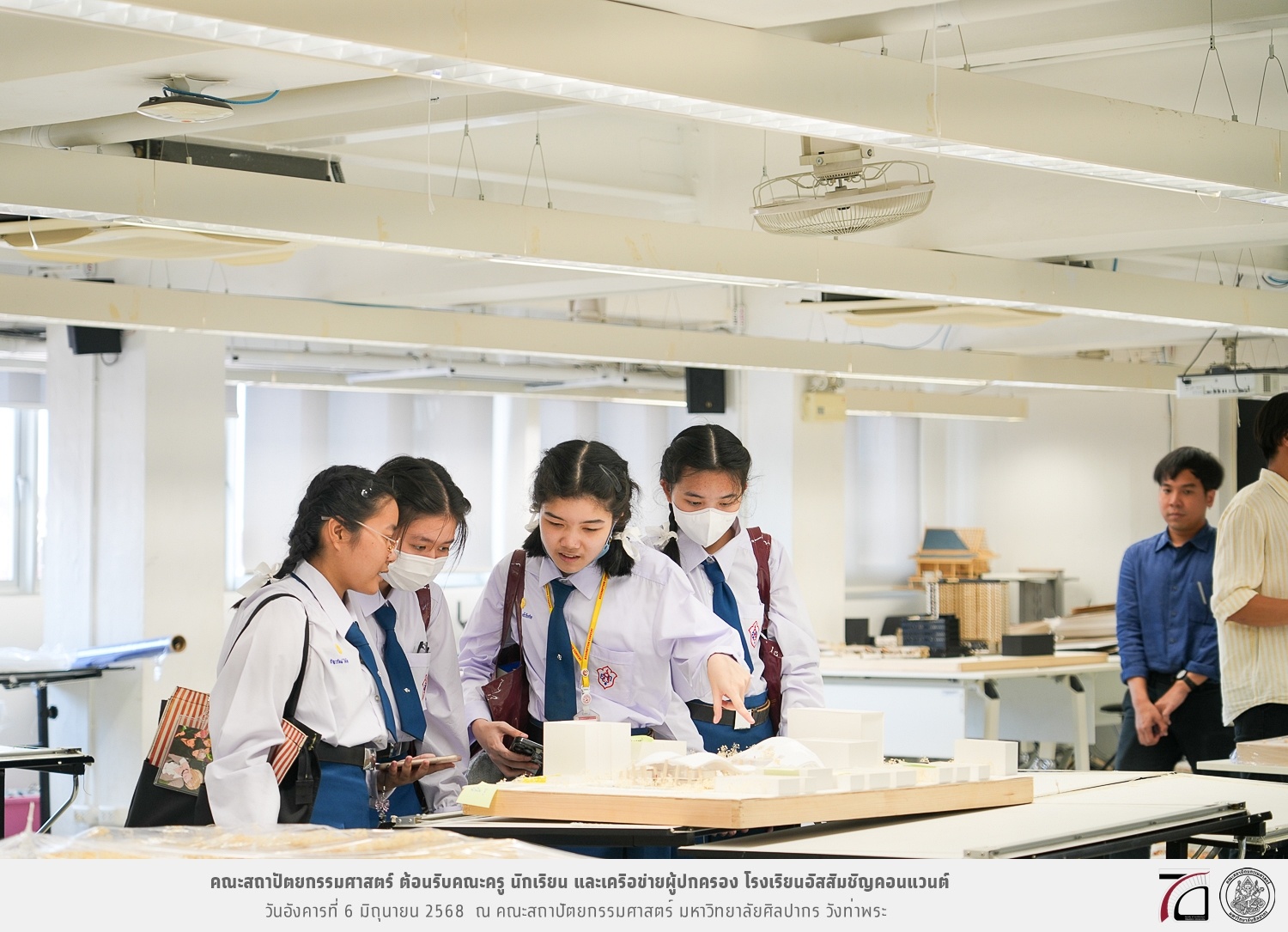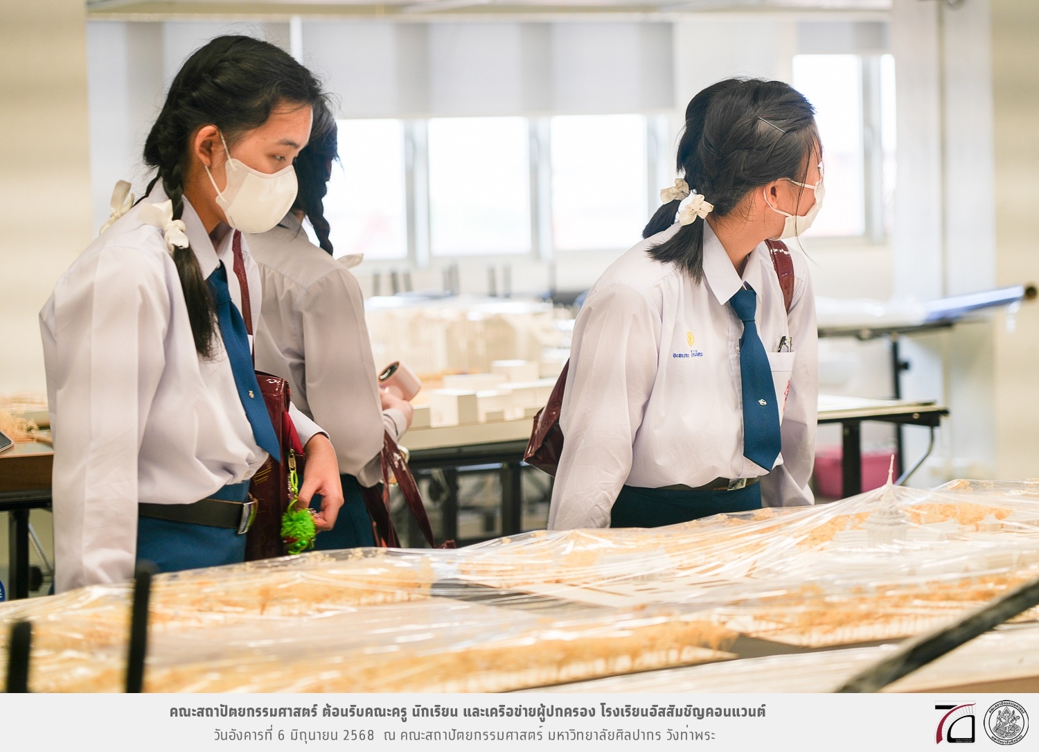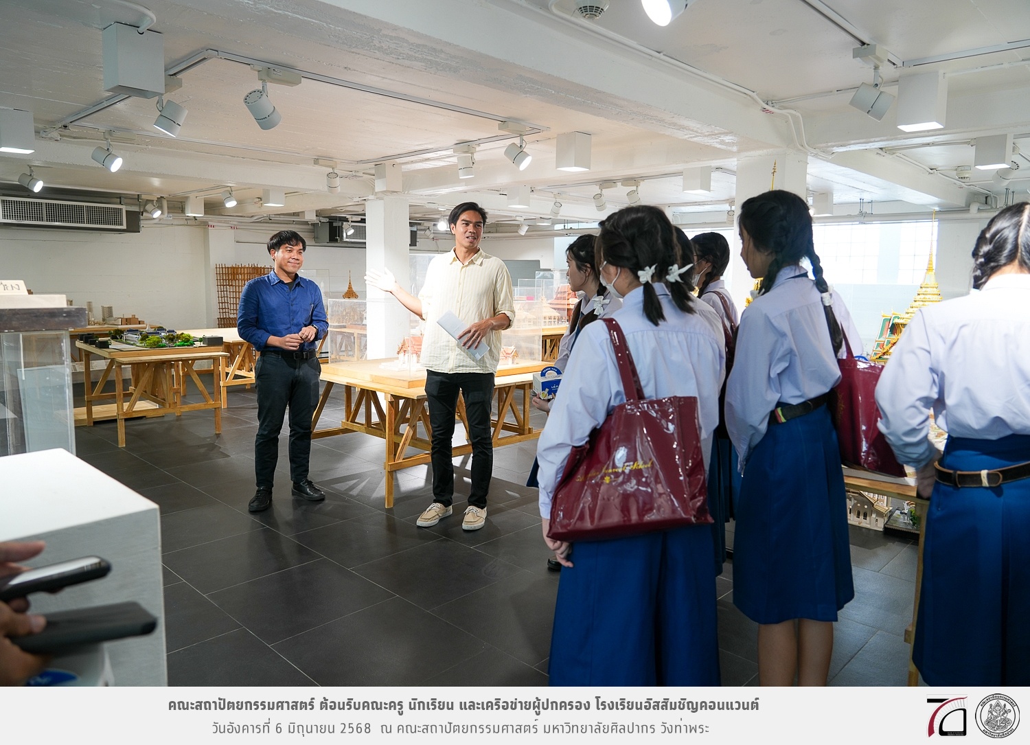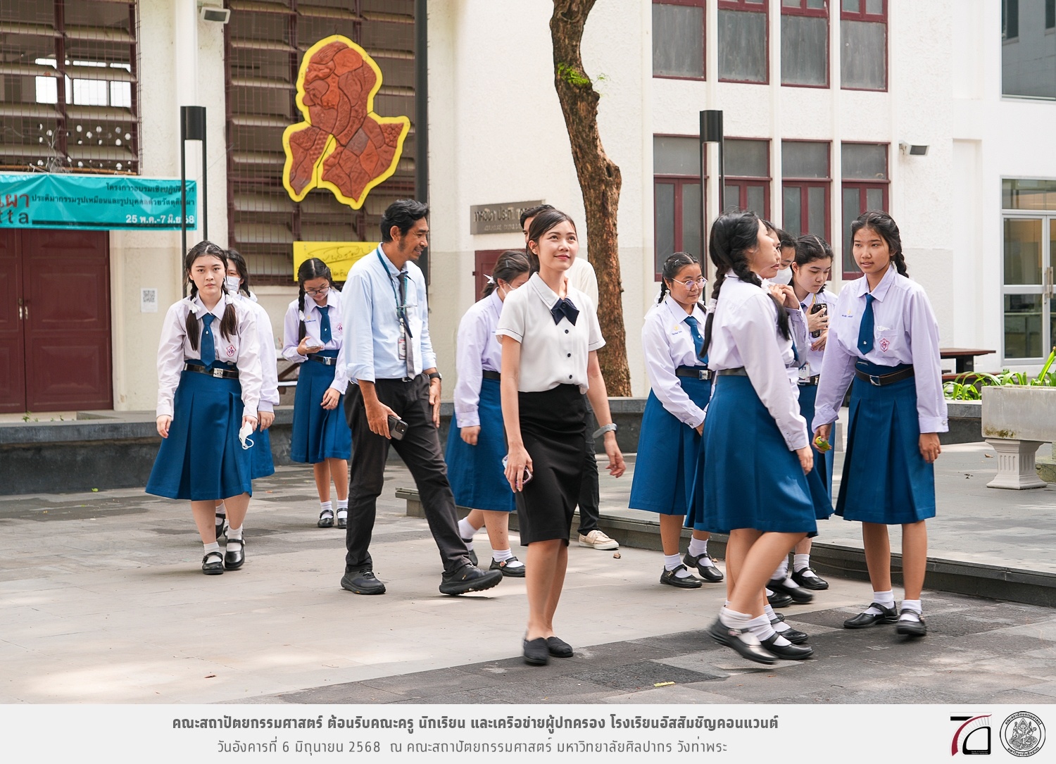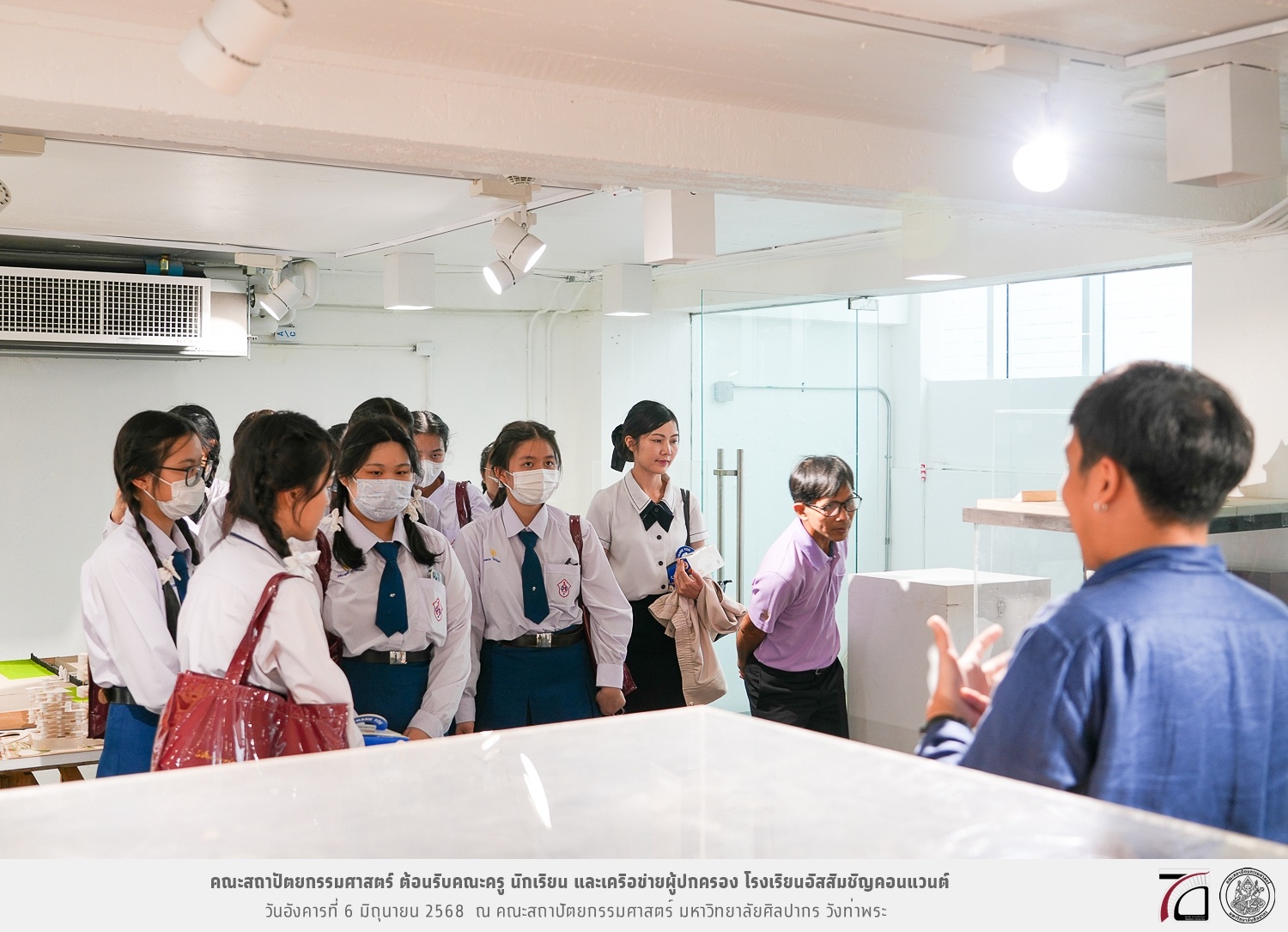 คณะครูและนักเรียน โรงเรียนอัสสัมชัญคอนแวนต์ เยี่ยมชมการเรียนการสอนของคณะสถาปัตยกรรมศาสตร์ โดยมีผู้ช่วยศาสตราจารย์ ดร. เจนยุทธ ล่อใจ รองคณบดีฝ่ายกิจการนักศึกษา ให้เกียรติแนะแนวการศึกษาต่อและนำชมคณะสถาปัตยกรรมศาสตร์ และบรรยากาศโดยรอบของมหาวิทยาลัยศิลปากร วังท่าพระ เมื่อวันอังคารที่ 6 มิถุนายน 2568 ณ คณะสถาปัตยกรรมศาสตร์ มหาวิทยาลัยศิลปากร วังท่าพระ