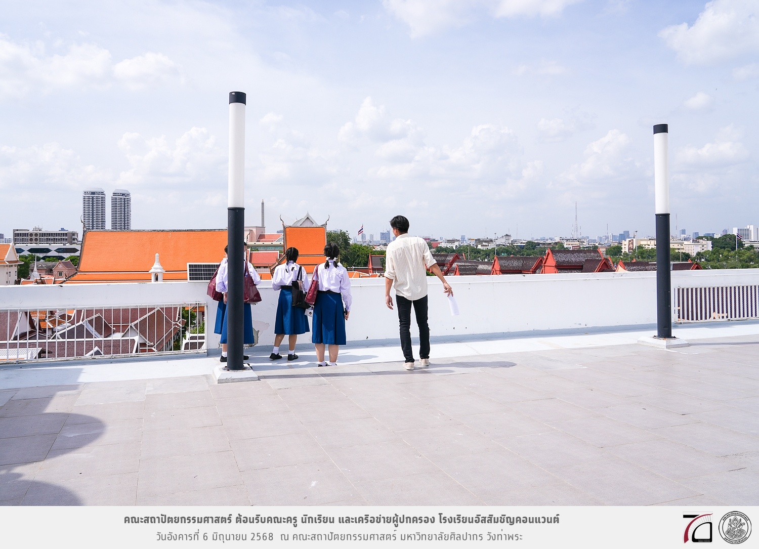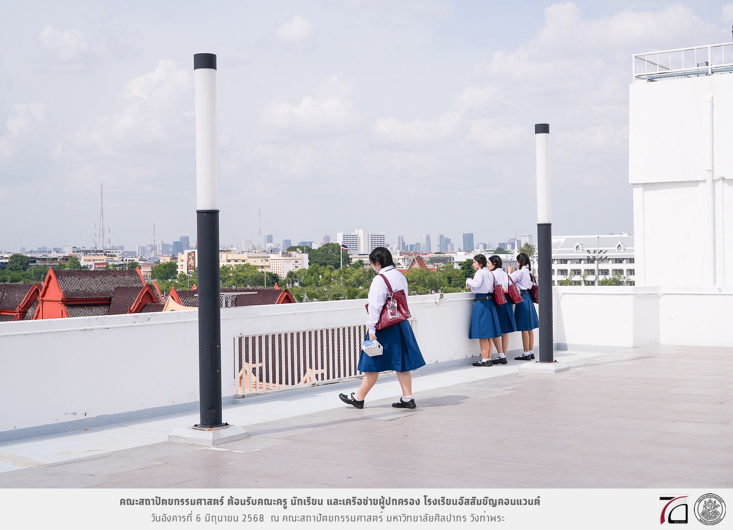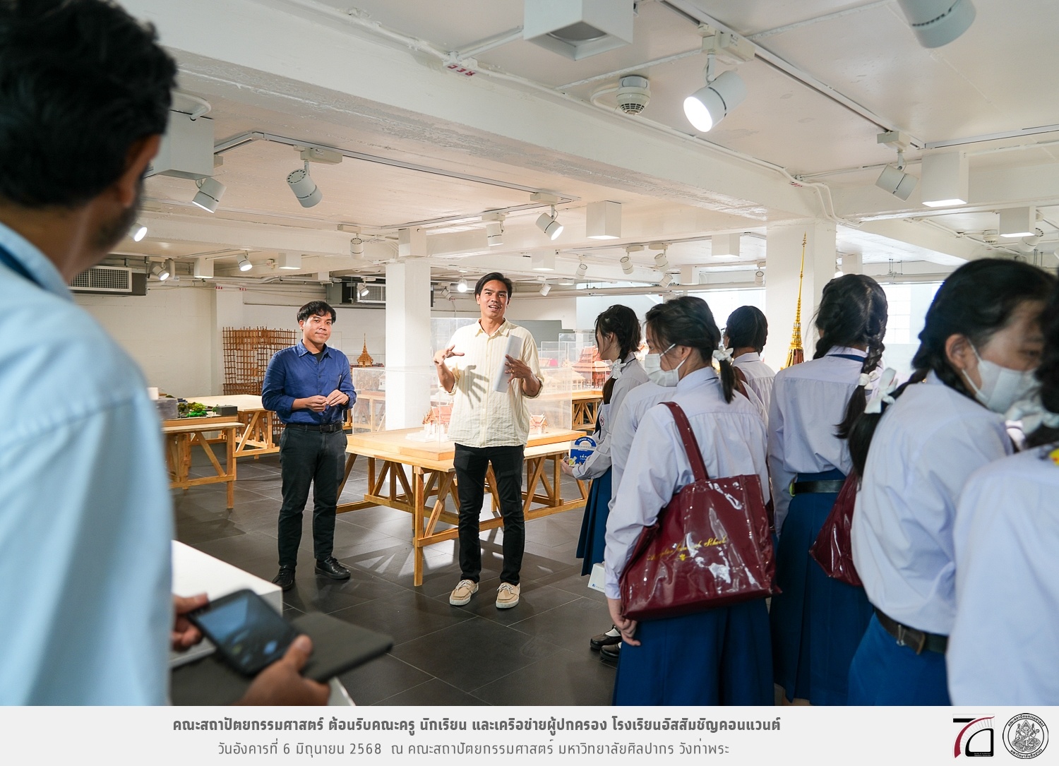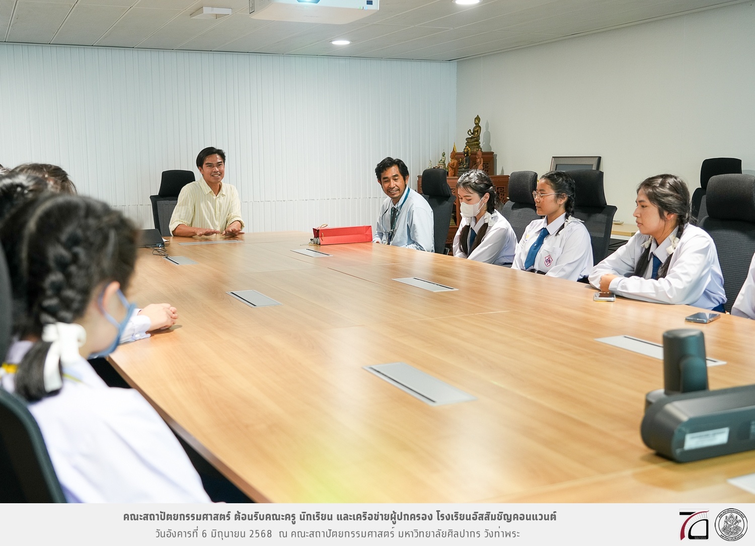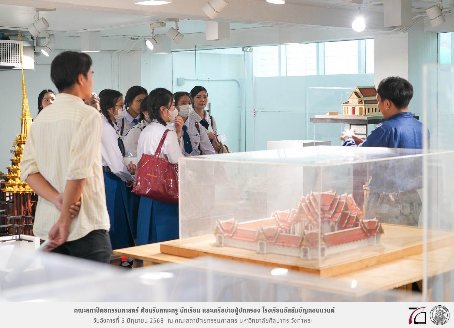 คณะครูและนักเรียน โรงเรียนอัสสัมชัญคอนแวนต์ เยี่ยมชมการเรียนการสอนของคณะสถาปัตยกรรมศาสตร์ โดยมีผู้ช่วยศาสตราจารย์ ดร. เจนยุทธ ล่อใจ รองคณบดีฝ่ายกิจการนักศึกษา ให้เกียรติแนะแนวการศึกษาต่อและนำชมคณะสถาปัตยกรรมศาสตร์ และบรรยากาศโดยรอบของมหาวิทยาลัยศิลปากร วังท่าพระ เมื่อวันอังคารที่ 6 มิถุนายน 2568 ณ คณะสถาปัตยกรรมศาสตร์ มหาวิทยาลัยศิลปากร วังท่าพระ