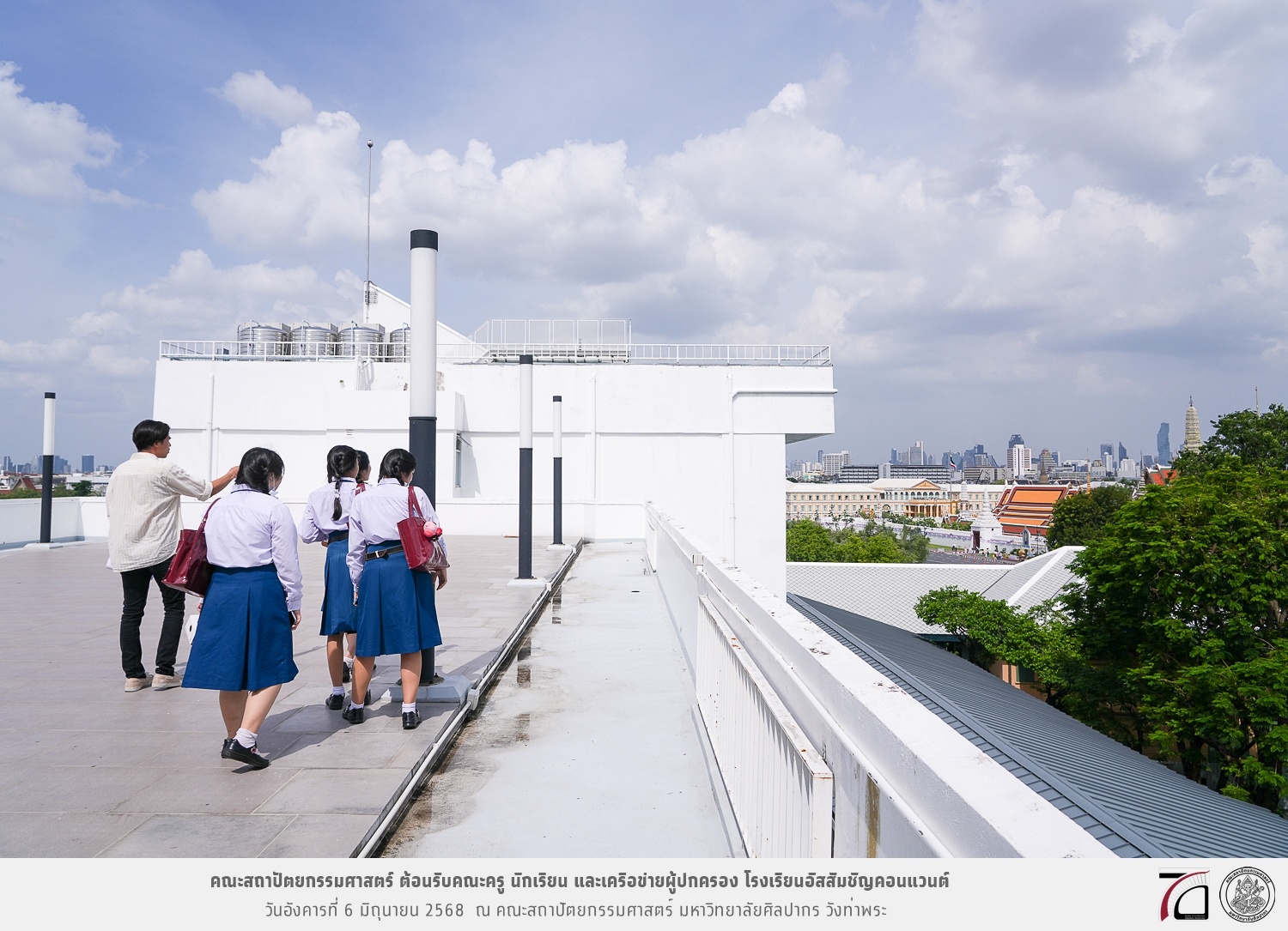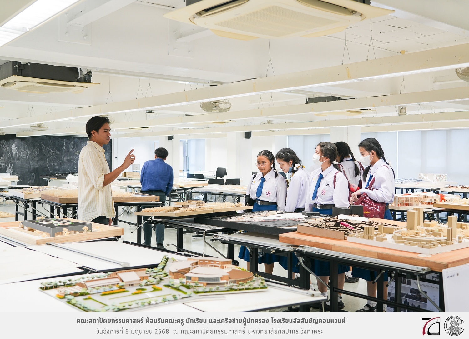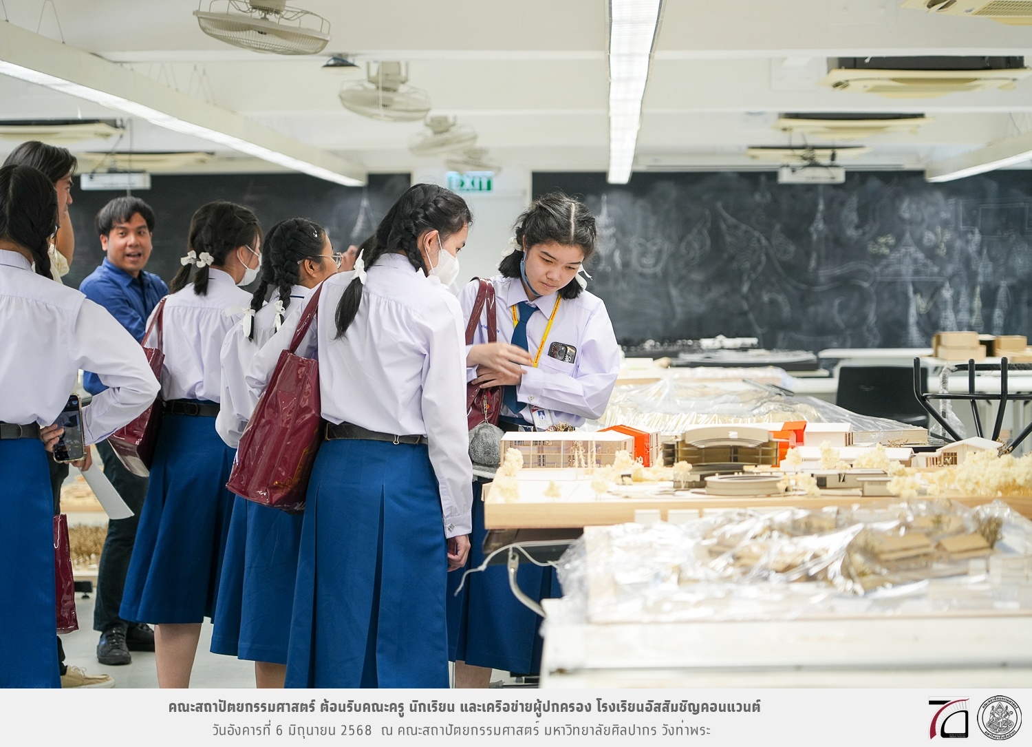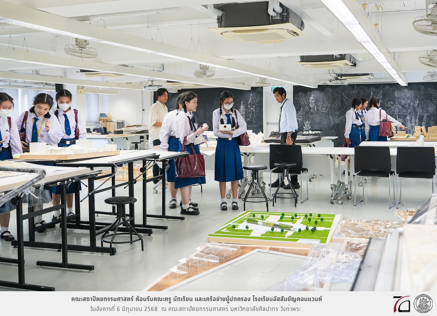 คณะครูและนักเรียน โรงเรียนอัสสัมชัญคอนแวนต์ เยี่ยมชมการเรียนการสอนของคณะสถาปัตยกรรมศาสตร์ โดยมีผู้ช่วยศาสตราจารย์ ดร. เจนยุทธ ล่อใจ รองคณบดีฝ่ายกิจการนักศึกษา ให้เกียรติแนะแนวการศึกษาต่อและนำชมคณะสถาปัตยกรรมศาสตร์ และบรรยากาศโดยรอบของมหาวิทยาลัยศิลปากร วังท่าพระ เมื่อวันอังคารที่ 6 มิถุนายน 2568 ณ คณะสถาปัตยกรรมศาสตร์ มหาวิทยาลัยศิลปากร วังท่าพระ