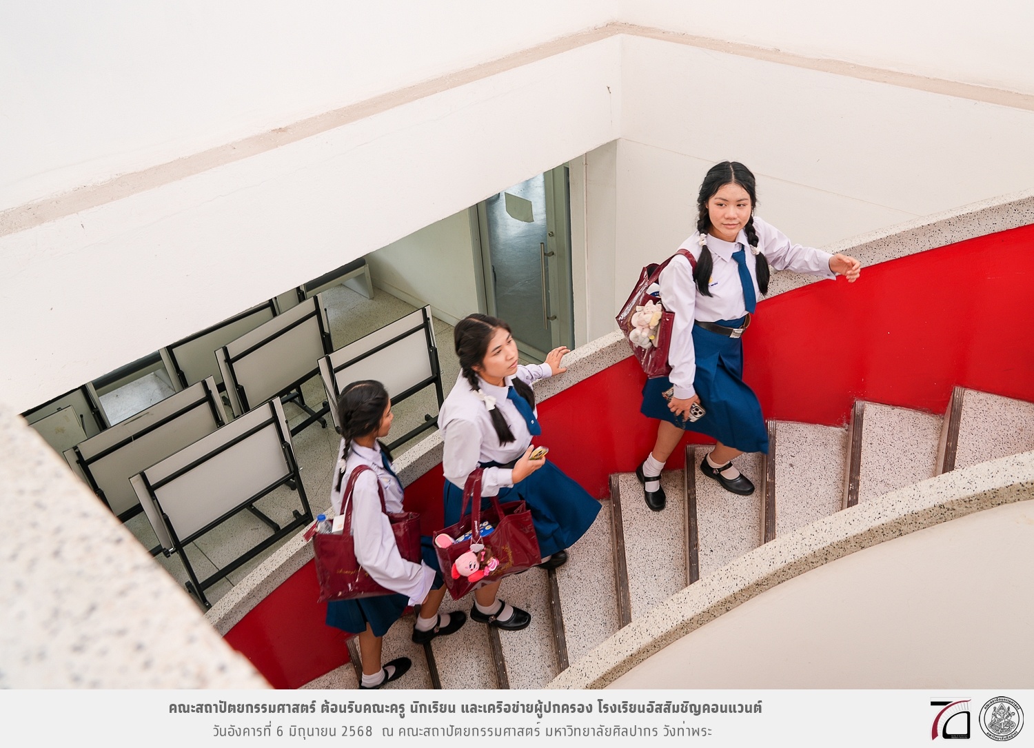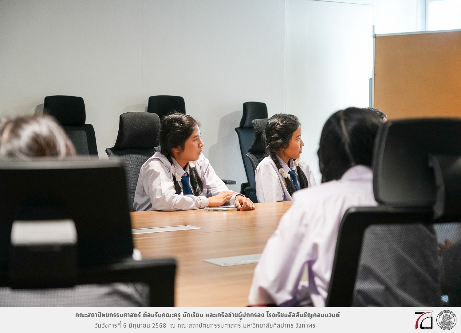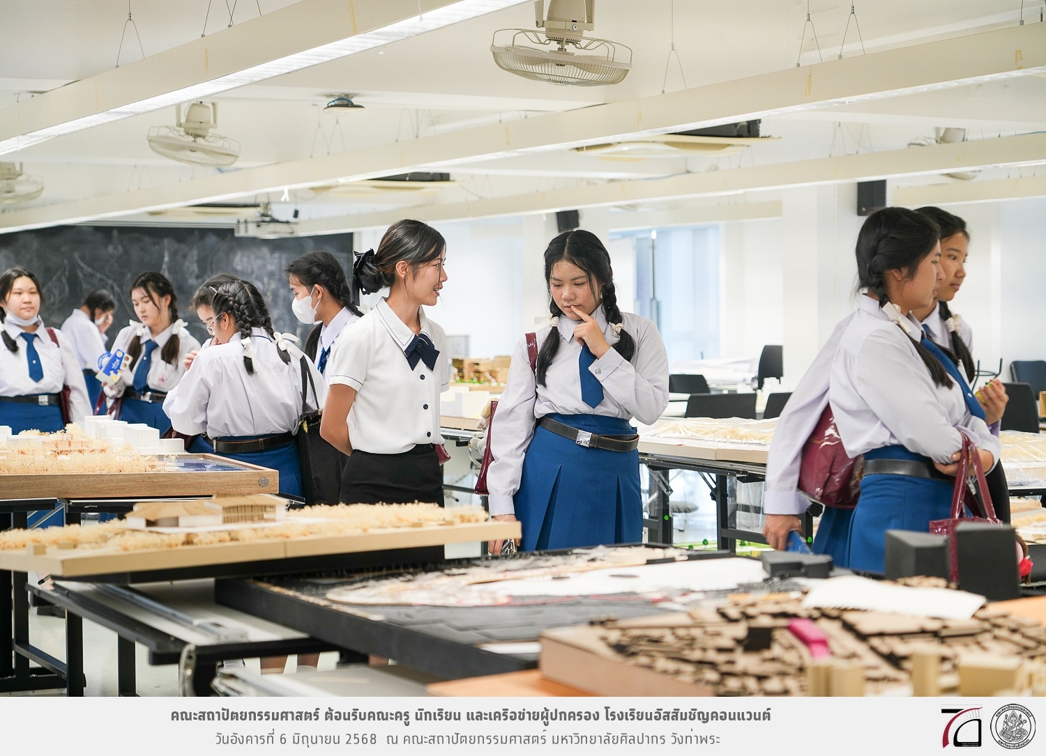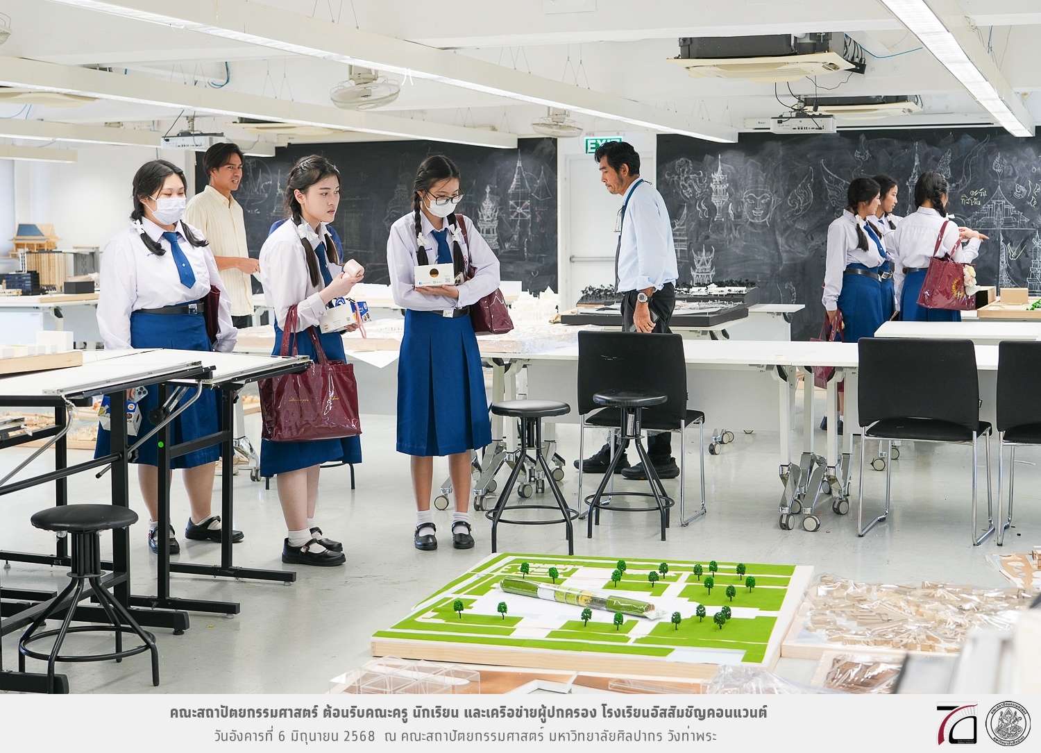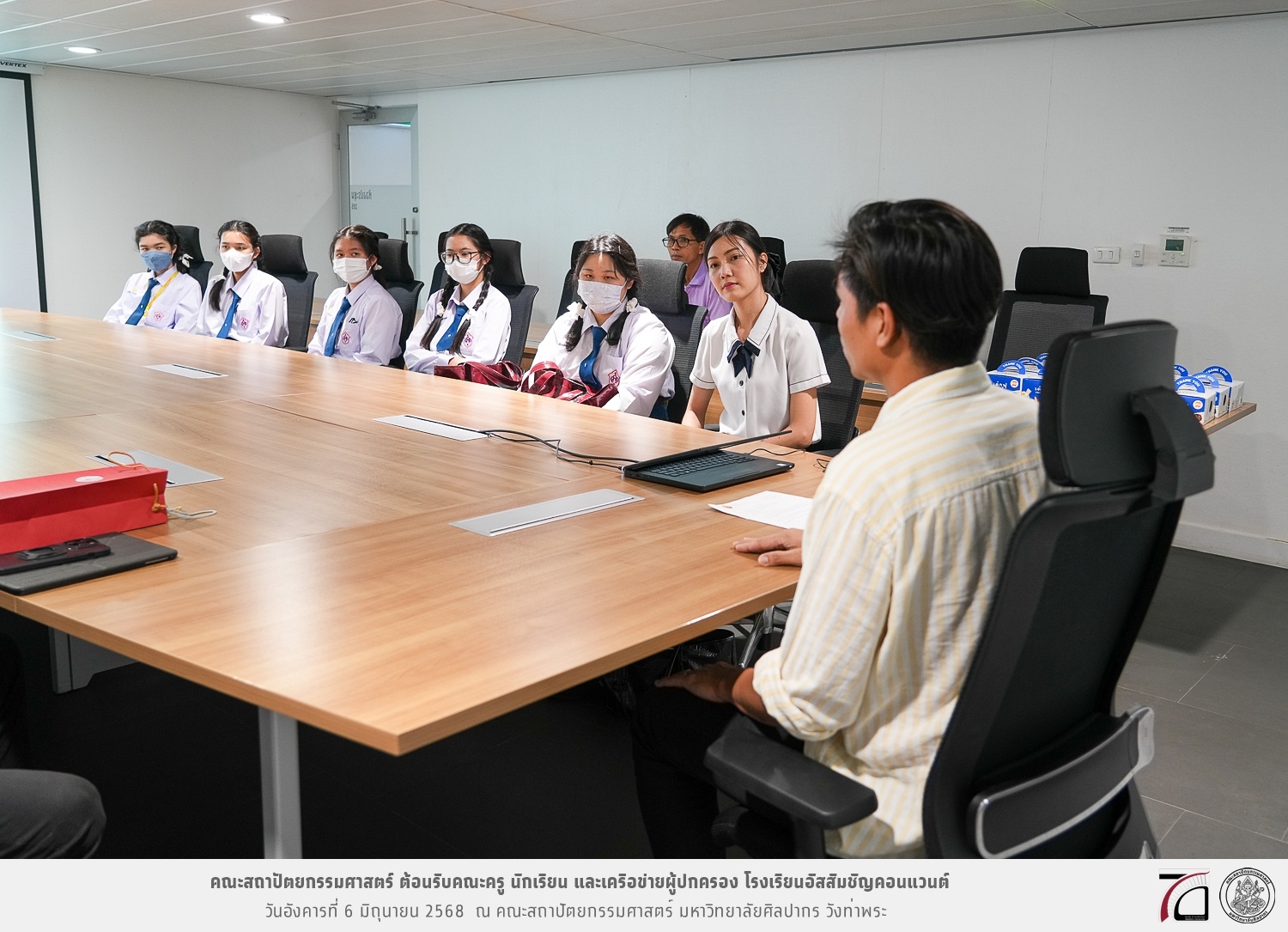 คณะครูและนักเรียน โรงเรียนอัสสัมชัญคอนแวนต์ เยี่ยมชมการเรียนการสอนของคณะสถาปัตยกรรมศาสตร์ โดยมีผู้ช่วยศาสตราจารย์ ดร. เจนยุทธ ล่อใจ รองคณบดีฝ่ายกิจการนักศึกษา ให้เกียรติแนะแนวการศึกษาต่อและนำชมคณะสถาปัตยกรรมศาสตร์ และบรรยากาศโดยรอบของมหาวิทยาลัยศิลปากร วังท่าพระ เมื่อวันอังคารที่ 6 มิถุนายน 2568 ณ คณะสถาปัตยกรรมศาสตร์ มหาวิทยาลัยศิลปากร วังท่าพระ
