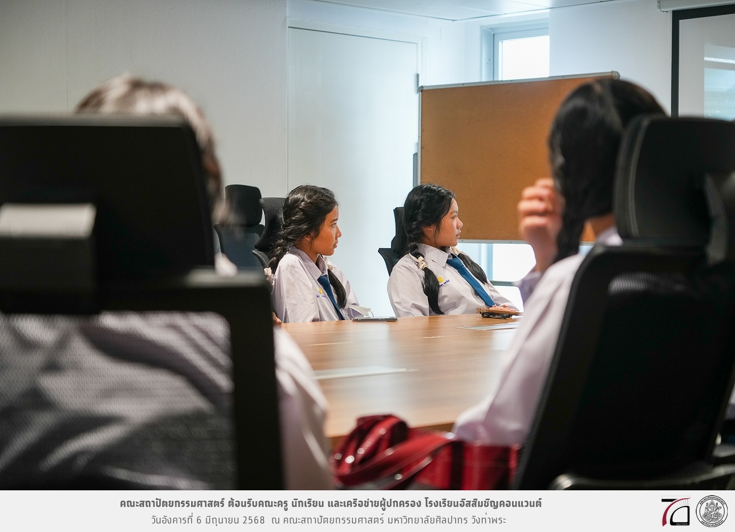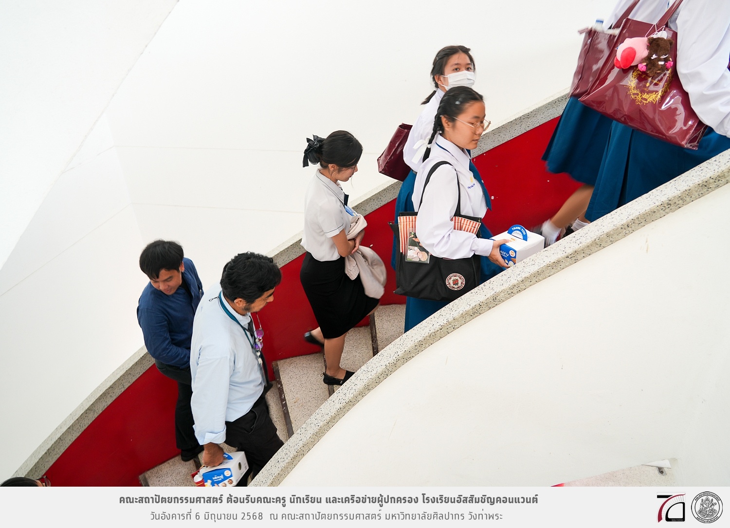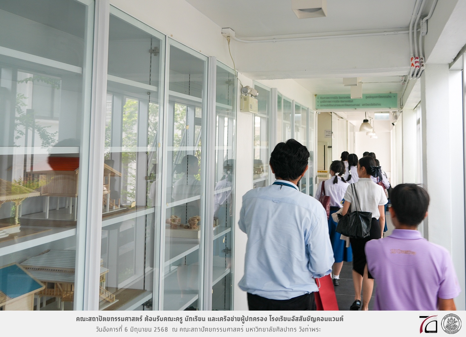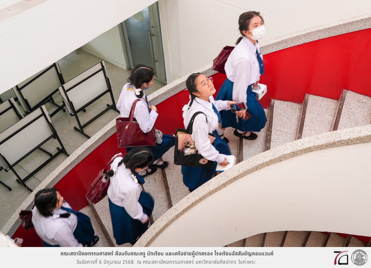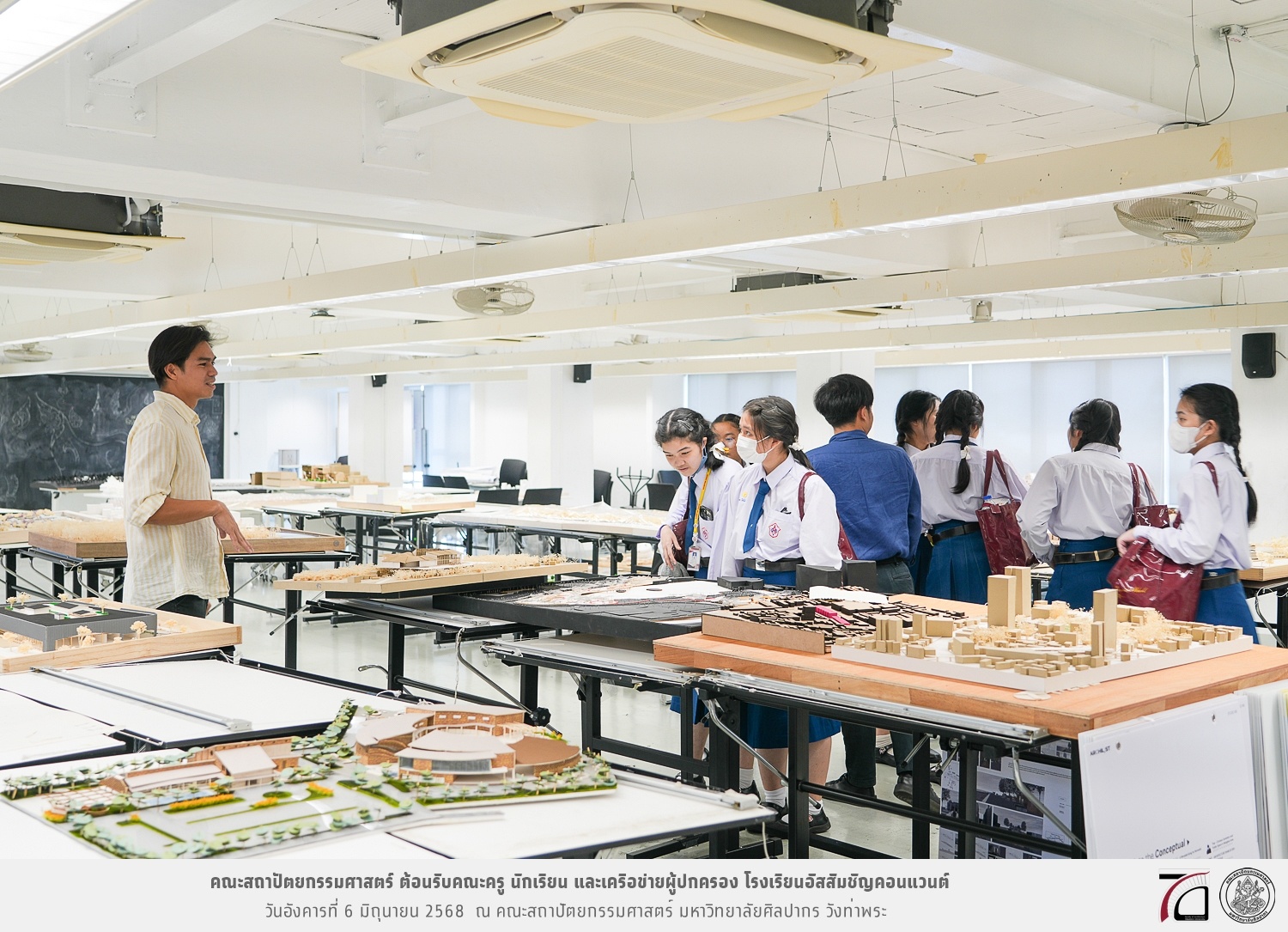 คณะครูและนักเรียน โรงเรียนอัสสัมชัญคอนแวนต์ เยี่ยมชมการเรียนการสอนของคณะสถาปัตยกรรมศาสตร์ โดยมีผู้ช่วยศาสตราจารย์ ดร. เจนยุทธ ล่อใจ รองคณบดีฝ่ายกิจการนักศึกษา ให้เกียรติแนะแนวการศึกษาต่อและนำชมคณะสถาปัตยกรรมศาสตร์ และบรรยากาศโดยรอบของมหาวิทยาลัยศิลปากร วังท่าพระ เมื่อวันอังคารที่ 6 มิถุนายน 2568 ณ คณะสถาปัตยกรรมศาสตร์ มหาวิทยาลัยศิลปากร วังท่าพระ