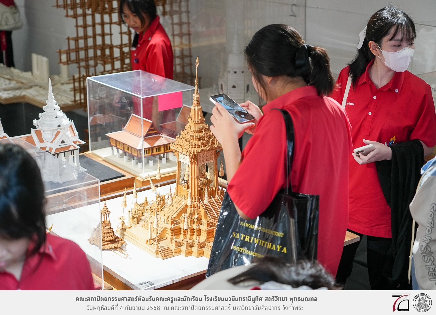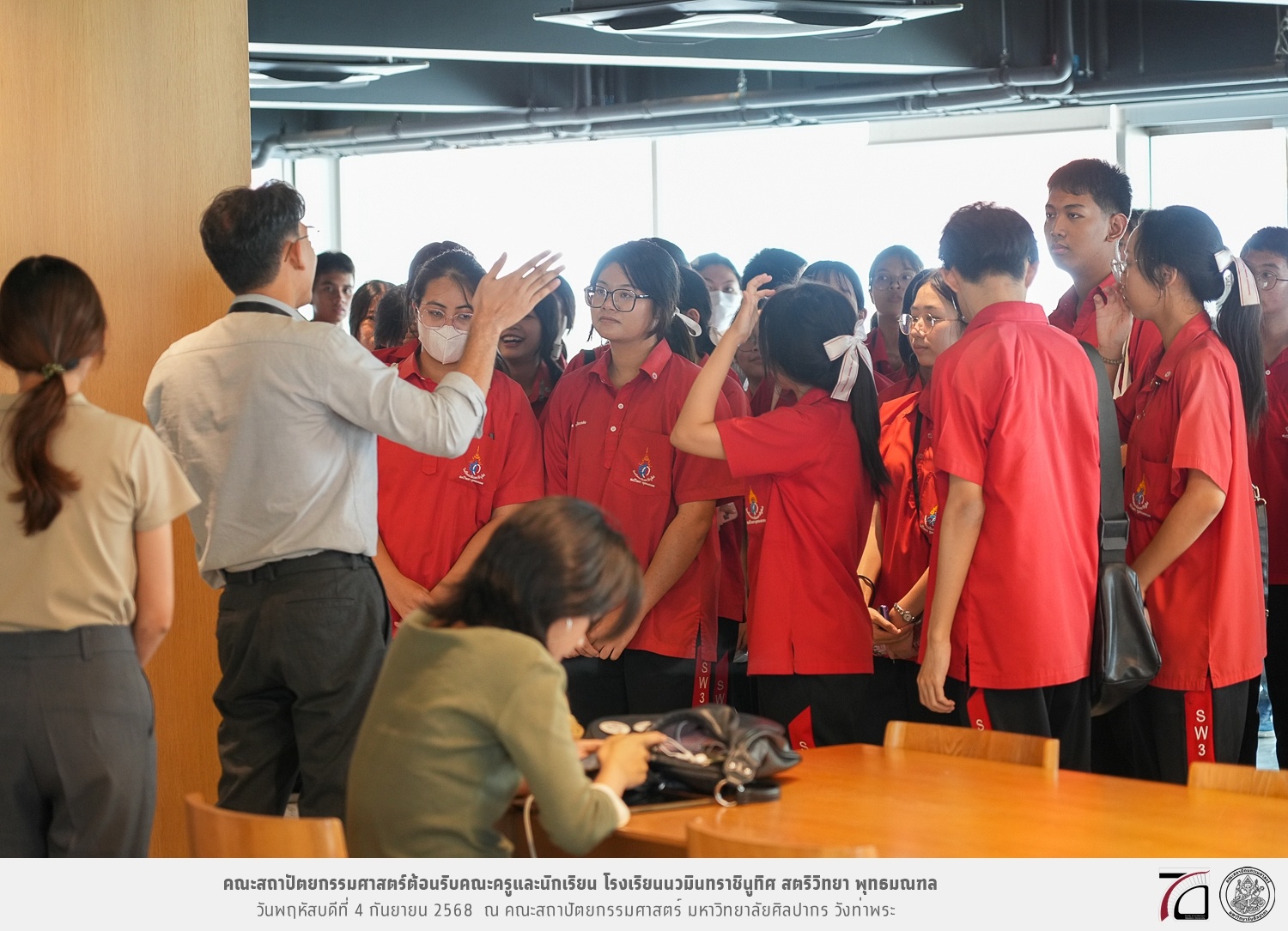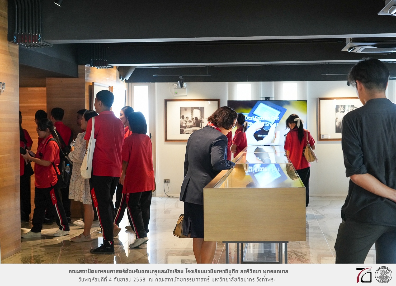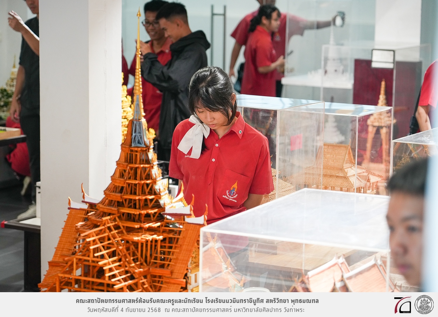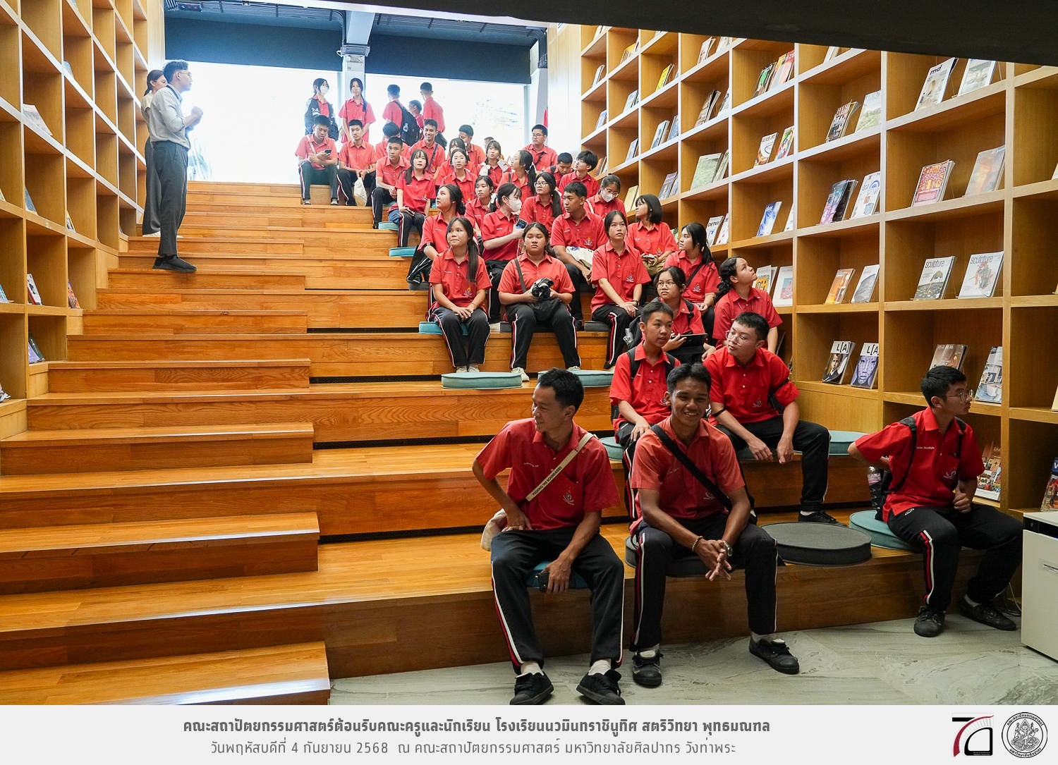 คณะฯ ให้การต้อนรับคณะครูและนักเรียน โรงเรียนนวมินทราชินูทิศ สตรีวิทยา พุทธมณฑล โดยมี ผู้ช่วยศาสตราจารย์ ดร.เจนยุทธ ล่อใจ รองคณบดีฝ่ายกิจการนักศึกษา นำชมคณะสถาปัตยกรรมศาสตร์และบรรยากาศโดยรอบของมหาวิทยาลัยศิลปากร วังท่าพระ เมื่อวันพฤหัสบดีที่ 4 กันยายน 2568 ณ คณะสถาปัตยกรรมศาสตร์ มหาวิทยาลัยศิลปากร วังท่าพระ