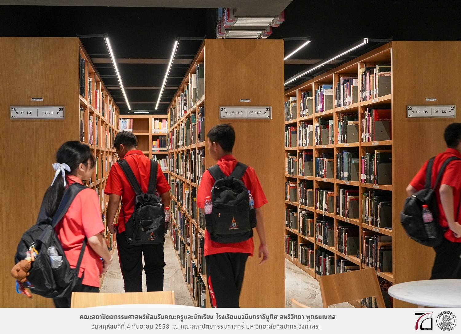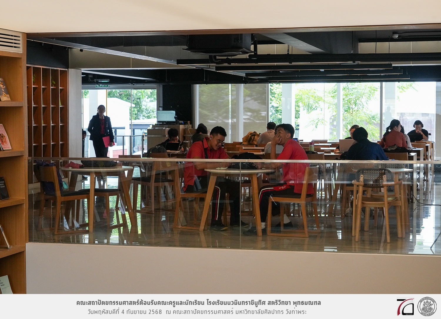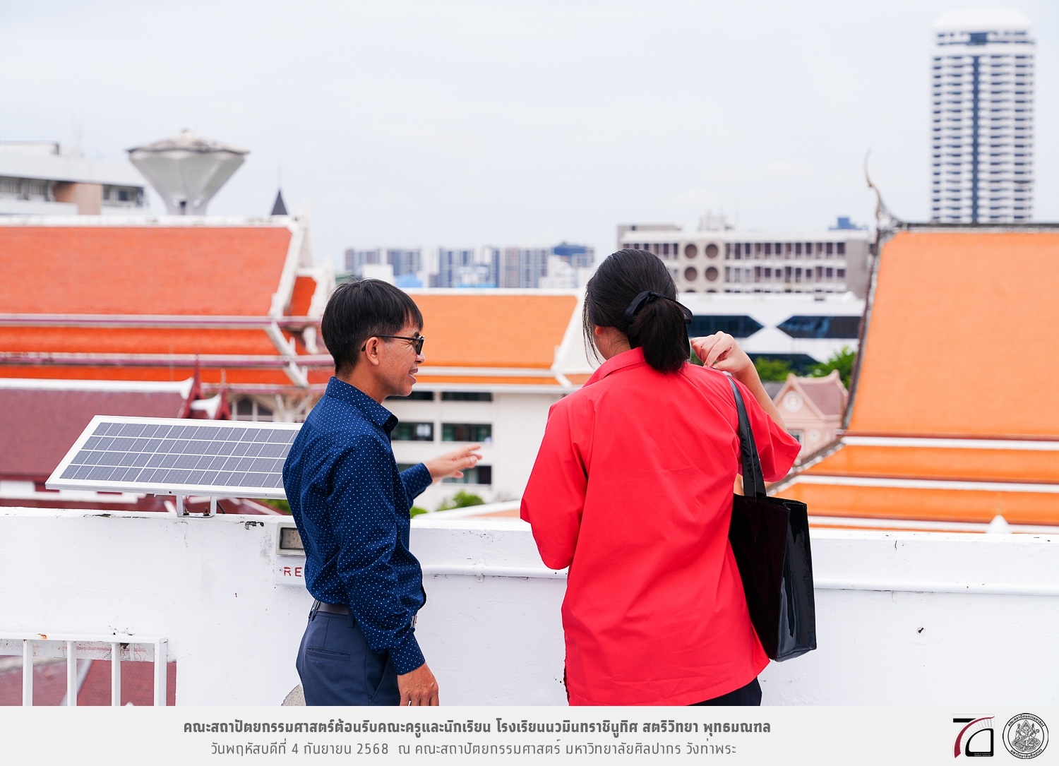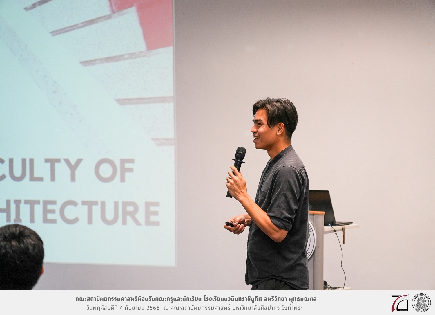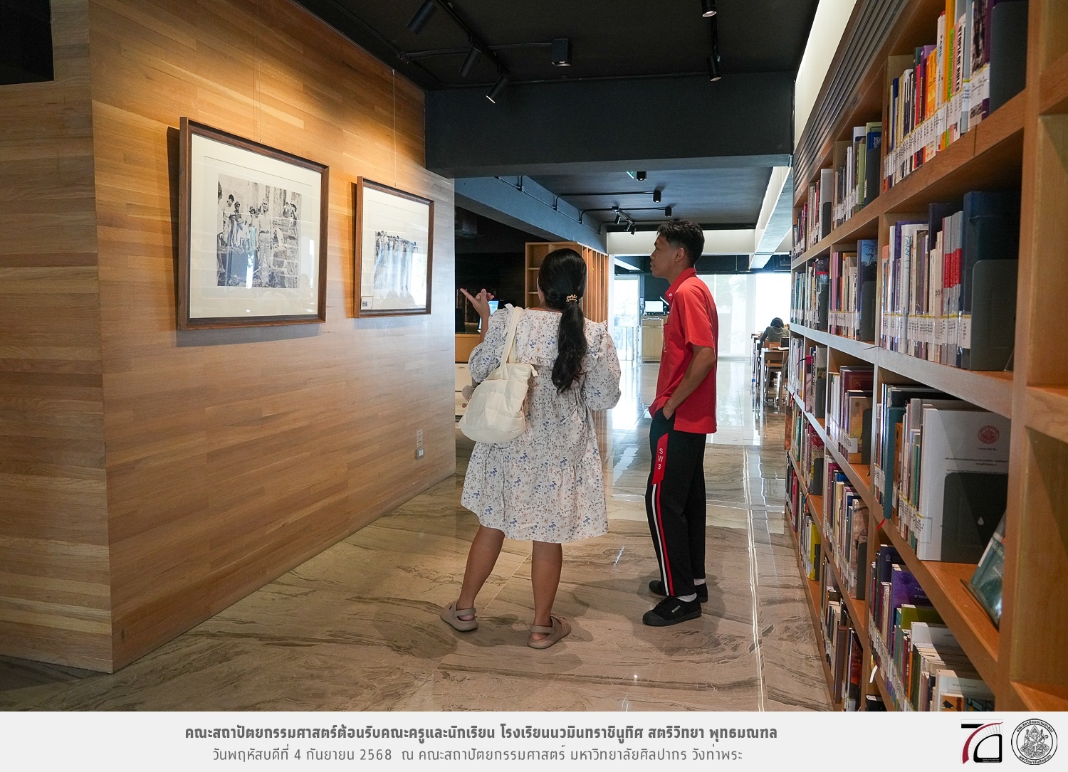 คณะฯ ให้การต้อนรับคณะครูและนักเรียน โรงเรียนนวมินทราชินูทิศ สตรีวิทยา พุทธมณฑล โดยมี ผู้ช่วยศาสตราจารย์ ดร.เจนยุทธ ล่อใจ รองคณบดีฝ่ายกิจการนักศึกษา นำชมคณะสถาปัตยกรรมศาสตร์และบรรยากาศโดยรอบของมหาวิทยาลัยศิลปากร วังท่าพระ เมื่อวันพฤหัสบดีที่ 4 กันยายน 2568 ณ คณะสถาปัตยกรรมศาสตร์ มหาวิทยาลัยศิลปากร วังท่าพระ