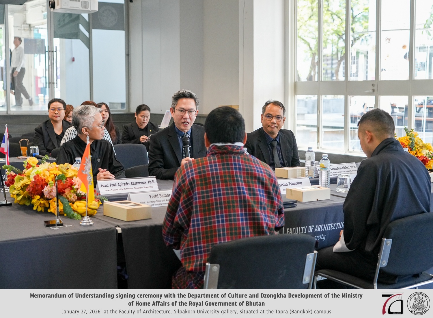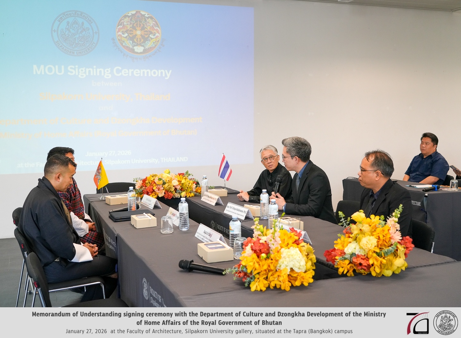 The Faculty of Architecture, Silpakorn University, led by Associate Professor Dr. Apiradee Kasemsook, and the Department of Culture and Dzongkha Development, Ministry of Home Affairs of the Royal Government of Bhutan, represented by Mr. Yeshi Samdrup, Chief of the Heritage Sites and Archaeology Division, formally initiated academic and research collaboration in accordance with the Memorandum of Understanding established between the two institutions and their respective countries.