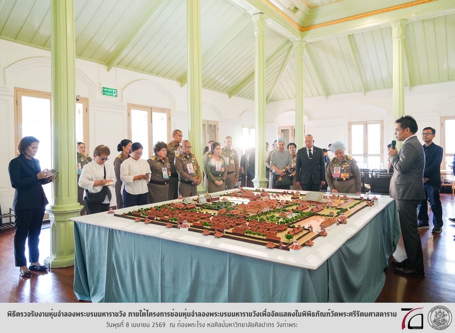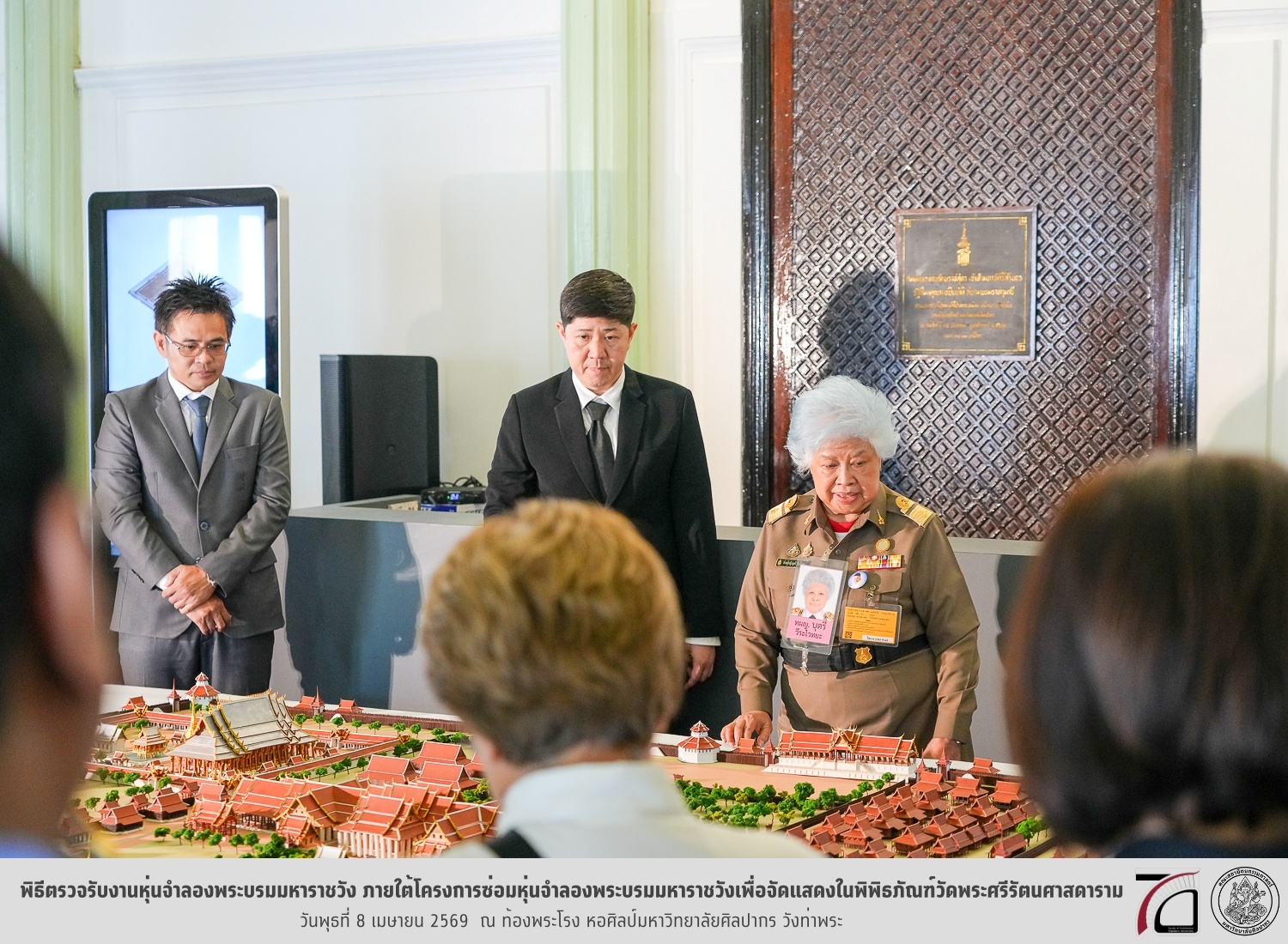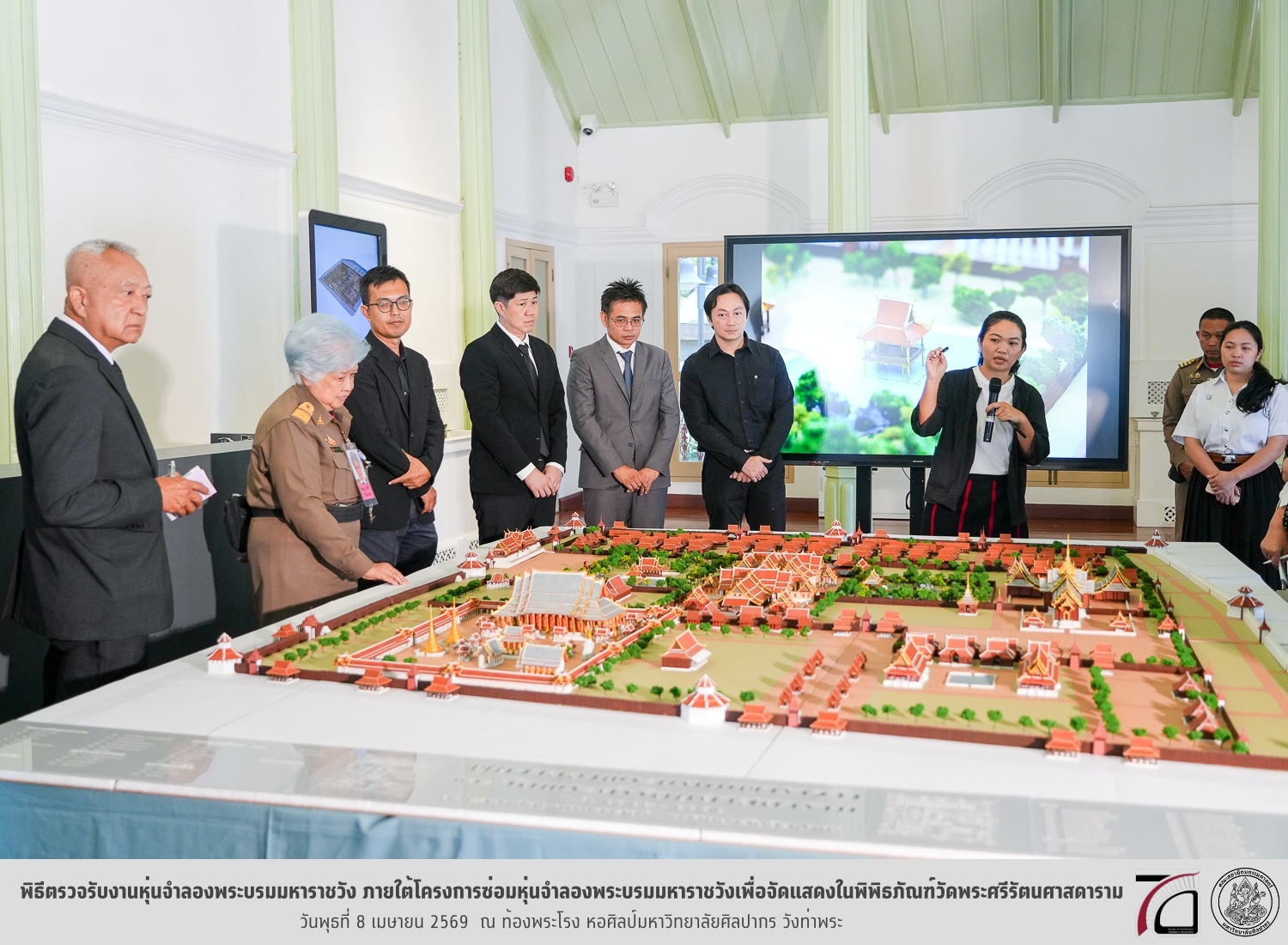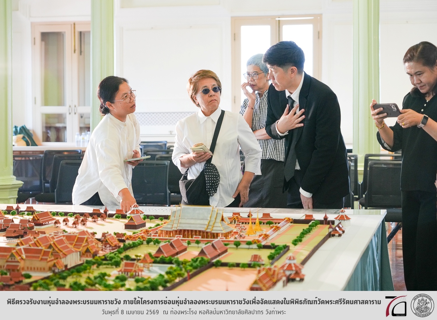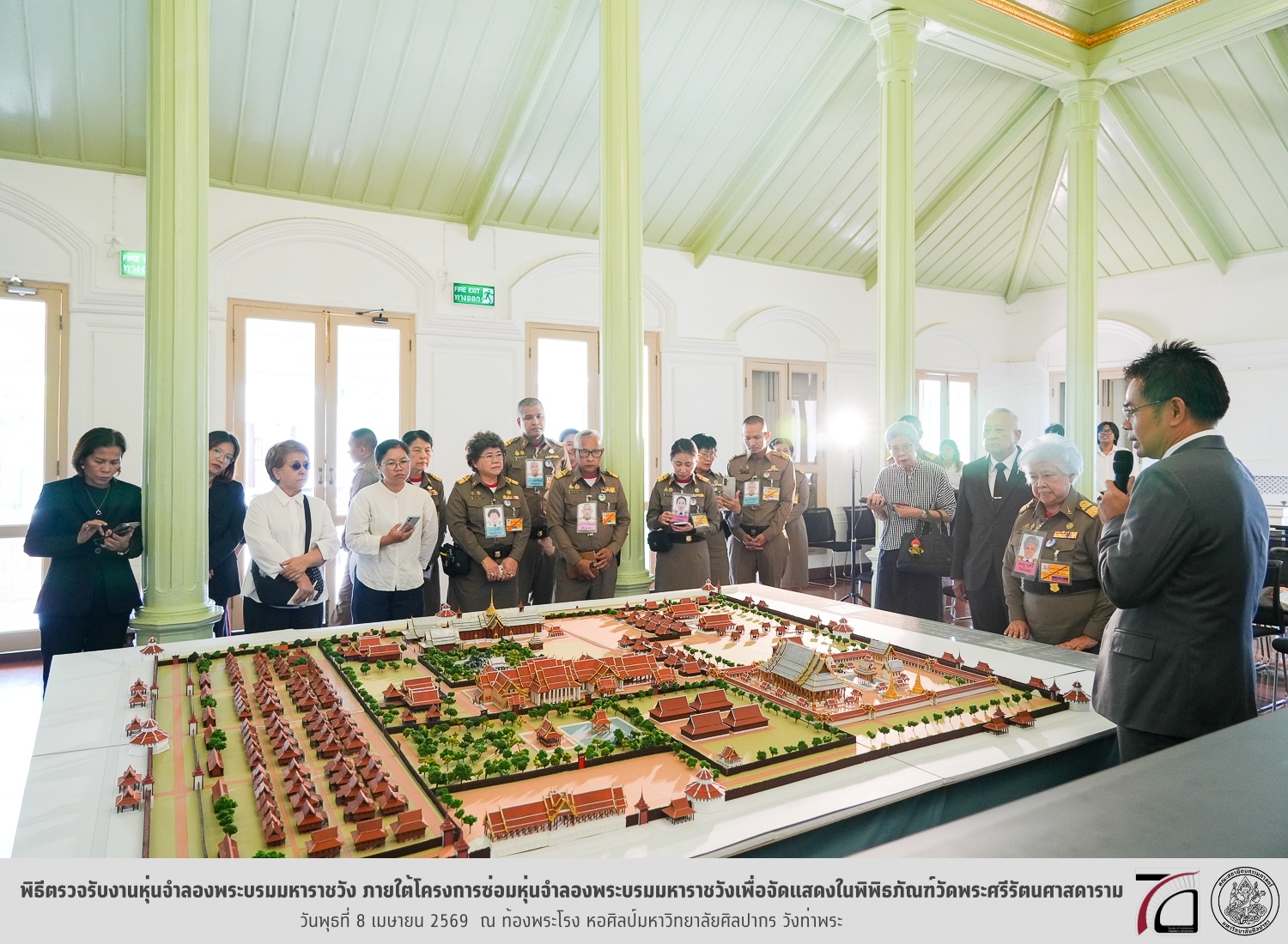 วันพุธที่ 8 เมษายน 2569 คณะสถาปัตยกรรมศาสตร์ มหาวิทยาลัยศิลปากร นำโดย ผู้ช่วยศาสตราจารย์ ดร.บุณยกร วชิระเธียรชัย ในฐานะผู้รับผิดชอบโครงการซ่อมหุ่นจำลองพระบรมมหาราชวังเพื่อจัดแสดงในพิพิธภัณฑ์วัดพระศรีรัตนศาสดาราม และคณะทำงาน ประกอบด้วย ผู้ช่วยศาสตราจารย์ ดร.พินัย สิริเกียรติกุล ผู้ช่วยศาสตราจารย์พีระพัฒน์ สำราญ ผู้ช่วยศาสตราจารย์สิริเดช วังกรานต์ พร้อมกับอาจารย์ศรินยา โทณสุกุมาร หัวหน้าภาควิชาศิลปสถาปัตยกรรม