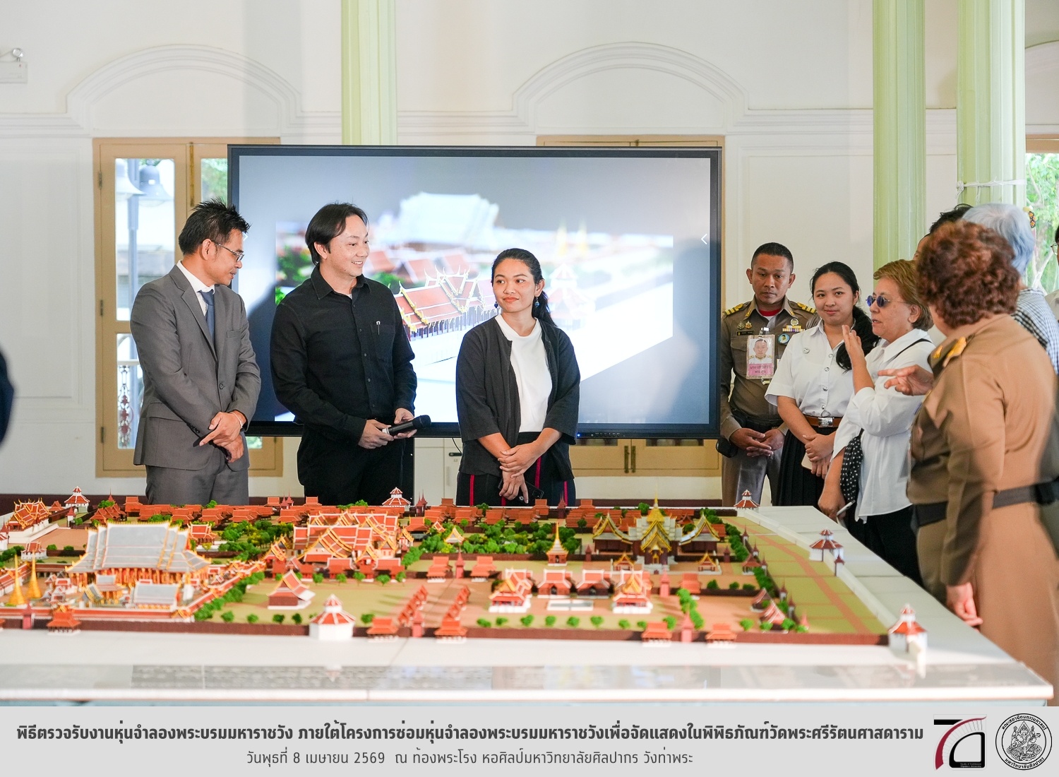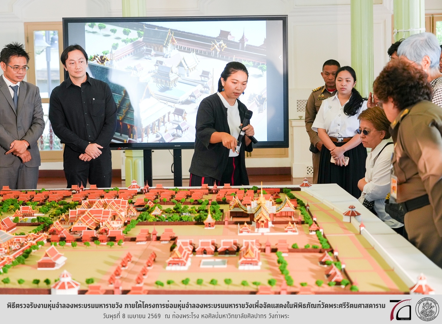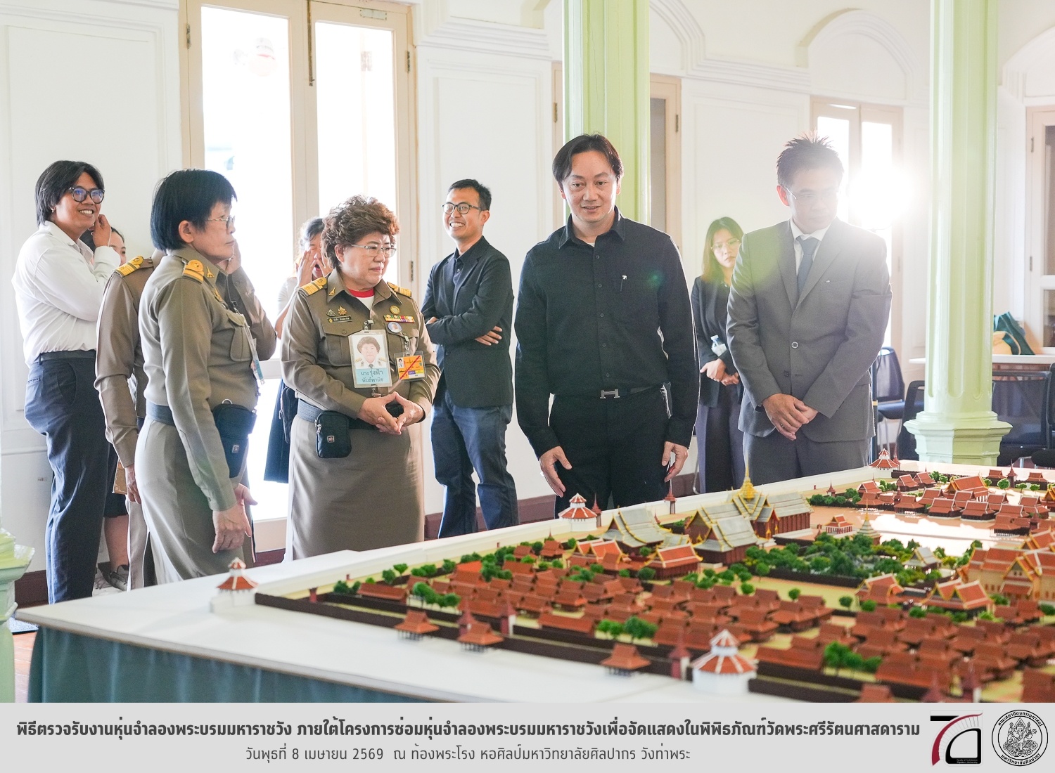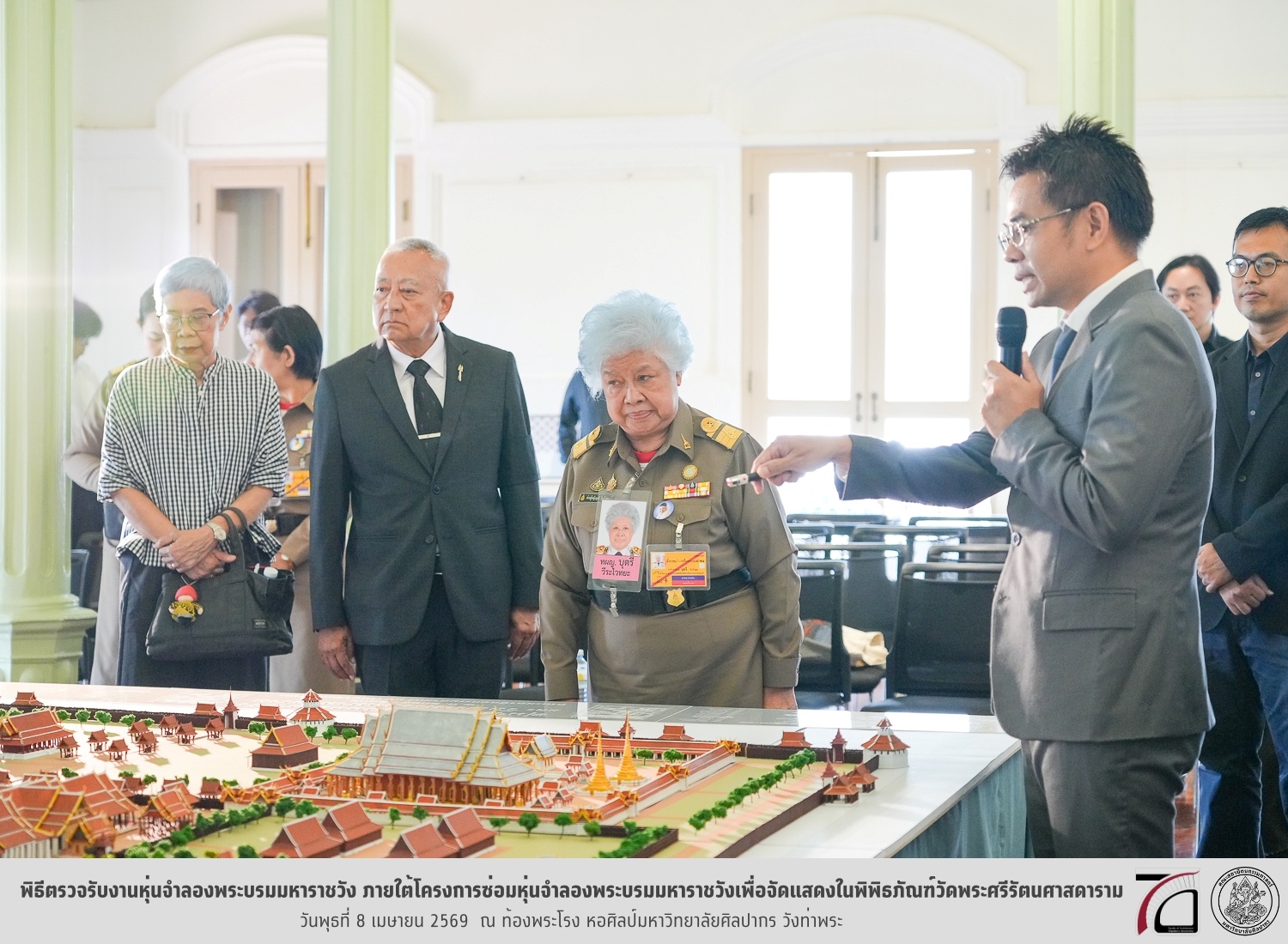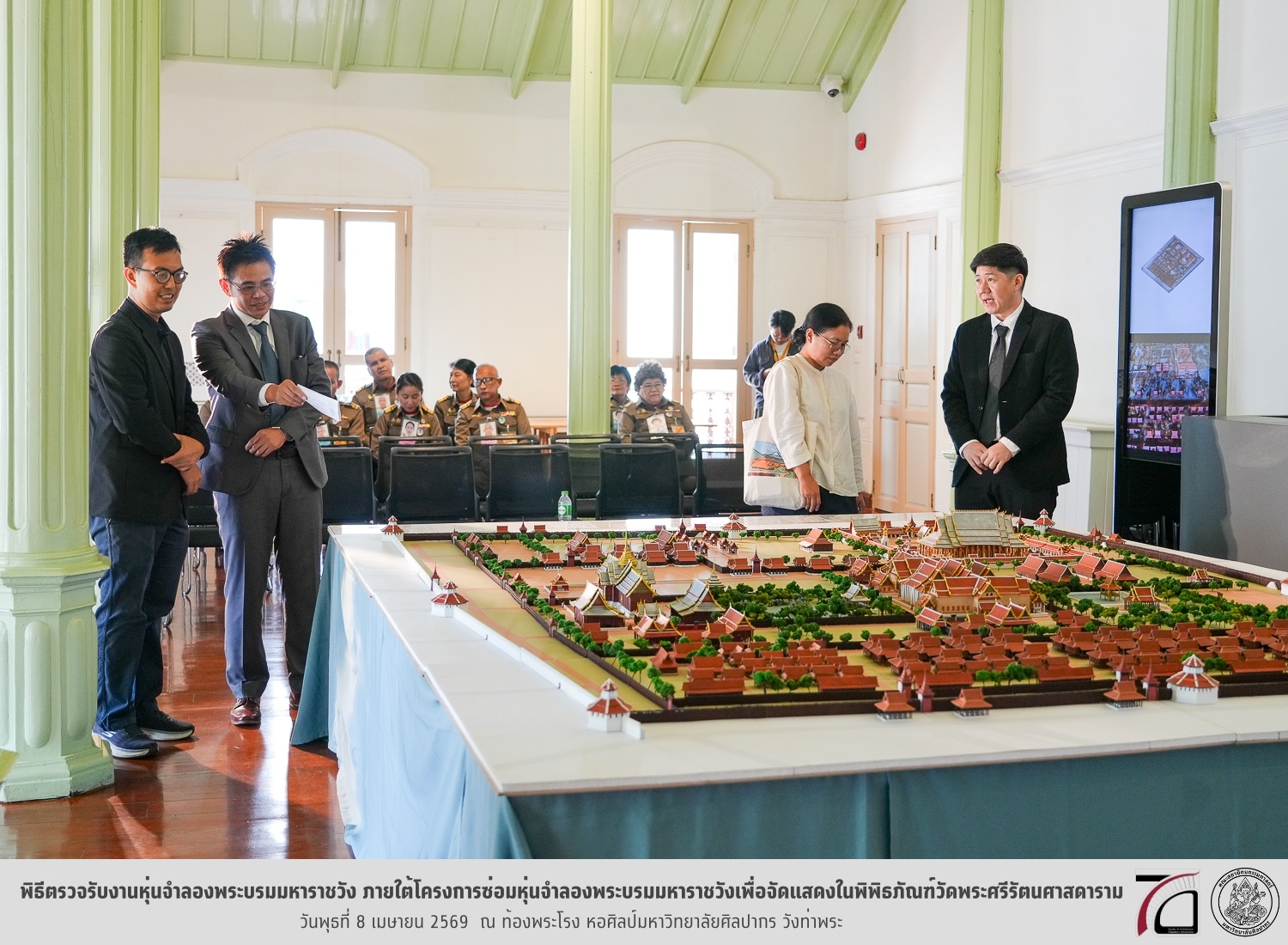 วันพุธที่ 8 เมษายน 2569 คณะสถาปัตยกรรมศาสตร์ มหาวิทยาลัยศิลปากร นำโดย ผู้ช่วยศาสตราจารย์ ดร.บุณยกร วชิระเธียรชัย ในฐานะผู้รับผิดชอบโครงการซ่อมหุ่นจำลองพระบรมมหาราชวังเพื่อจัดแสดงในพิพิธภัณฑ์วัดพระศรีรัตนศาสดาราม และคณะทำงาน ประกอบด้วย ผู้ช่วยศาสตราจารย์ ดร.พินัย สิริเกียรติกุล ผู้ช่วยศาสตราจารย์พีระพัฒน์ สำราญ ผู้ช่วยศาสตราจารย์สิริเดช วังกรานต์ พร้อมกับอาจารย์ศรินยา โทณสุกุมาร หัวหน้าภาควิชาศิลปสถาปัตยกรรม