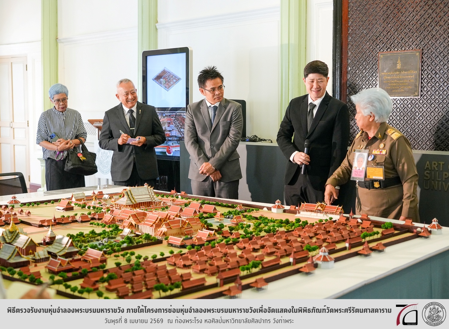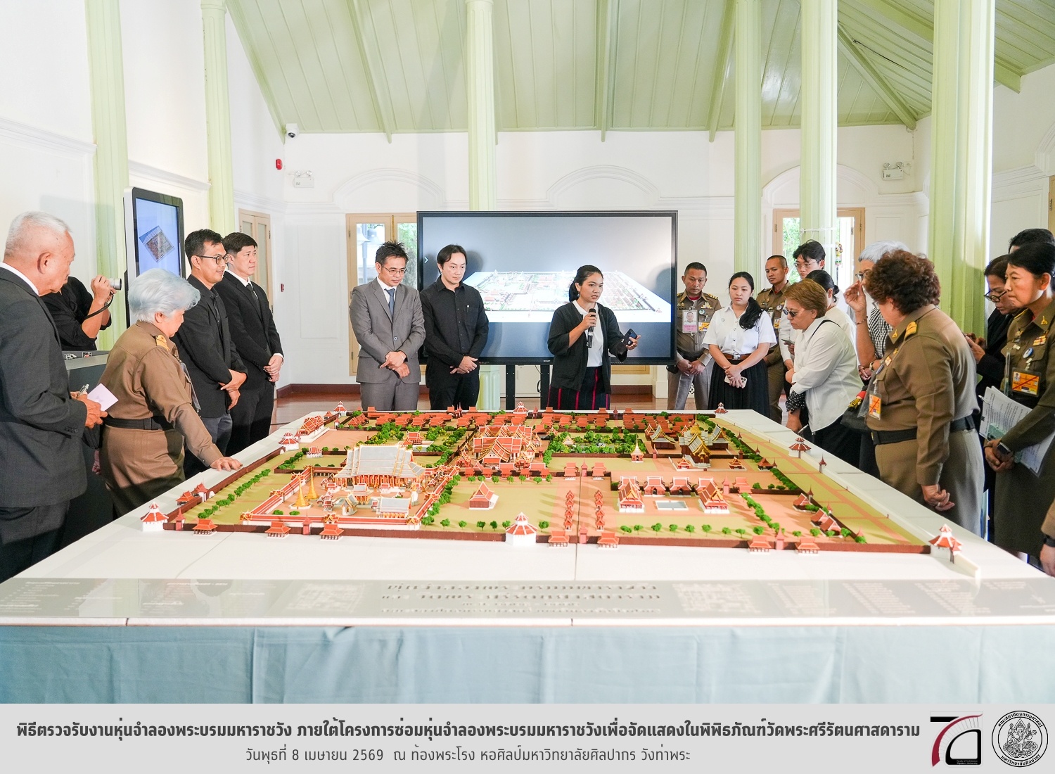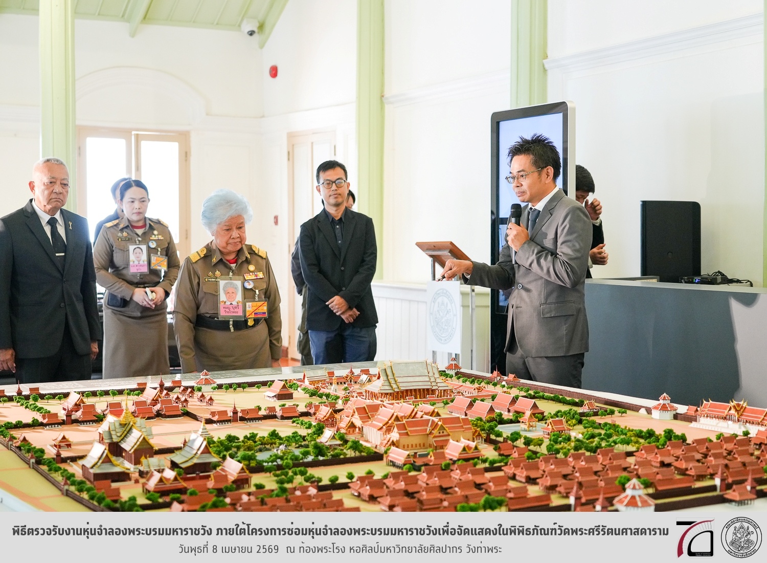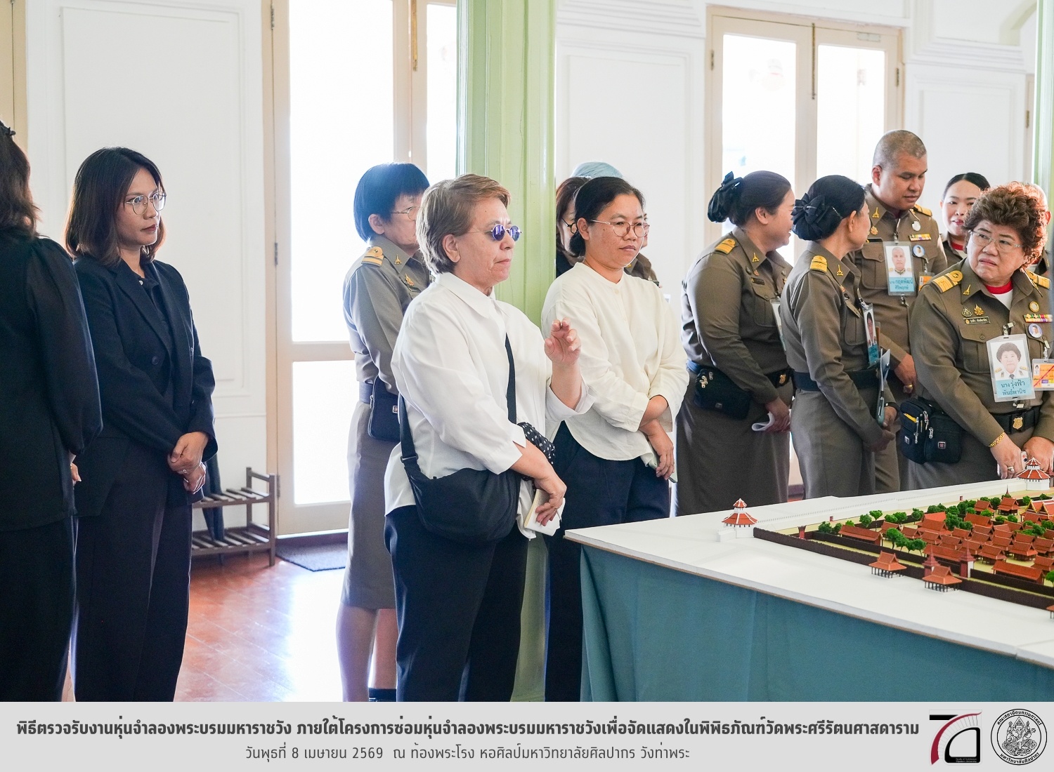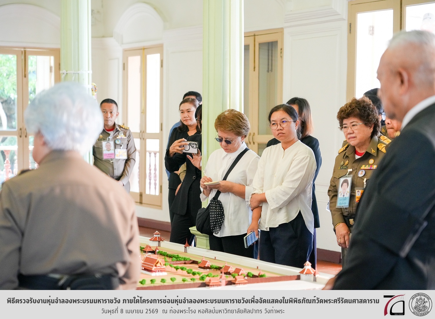 วันพุธที่ 8 เมษายน 2569 คณะสถาปัตยกรรมศาสตร์ มหาวิทยาลัยศิลปากร นำโดย ผู้ช่วยศาสตราจารย์ ดร.บุณยกร วชิระเธียรชัย ในฐานะผู้รับผิดชอบโครงการซ่อมหุ่นจำลองพระบรมมหาราชวังเพื่อจัดแสดงในพิพิธภัณฑ์วัดพระศรีรัตนศาสดาราม และคณะทำงาน ประกอบด้วย ผู้ช่วยศาสตราจารย์ ดร.พินัย สิริเกียรติกุล ผู้ช่วยศาสตราจารย์พีระพัฒน์ สำราญ ผู้ช่วยศาสตราจารย์สิริเดช วังกรานต์ พร้อมกับอาจารย์ศรินยา โทณสุกุมาร หัวหน้าภาควิชาศิลปสถาปัตยกรรม