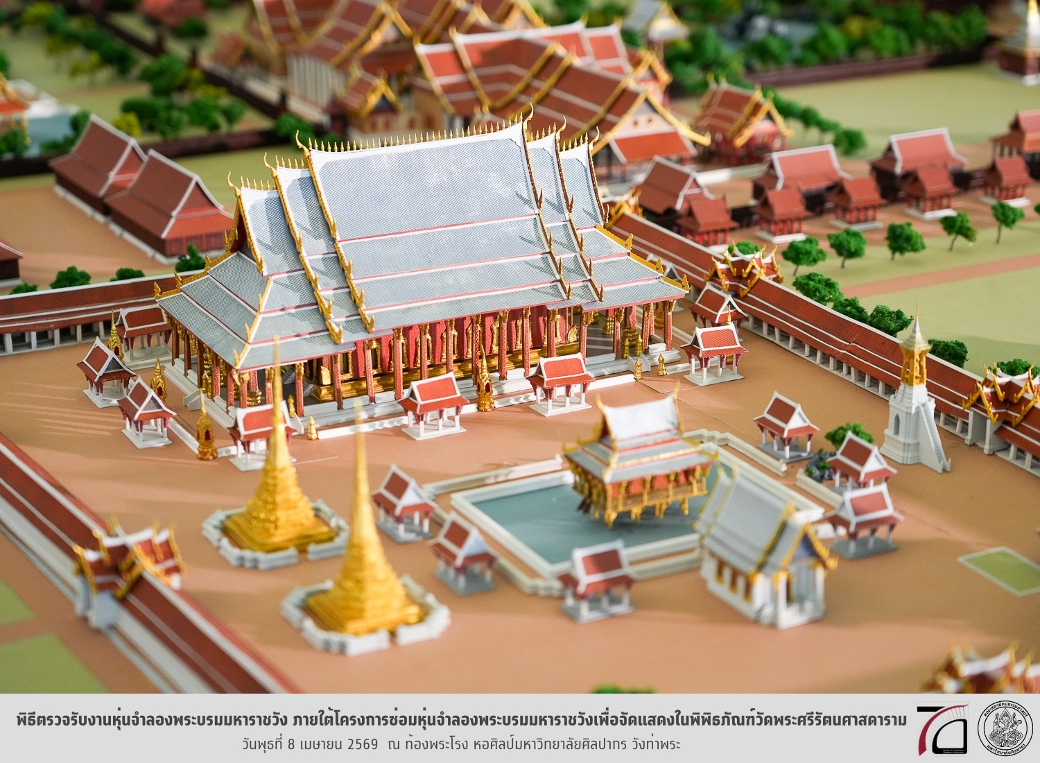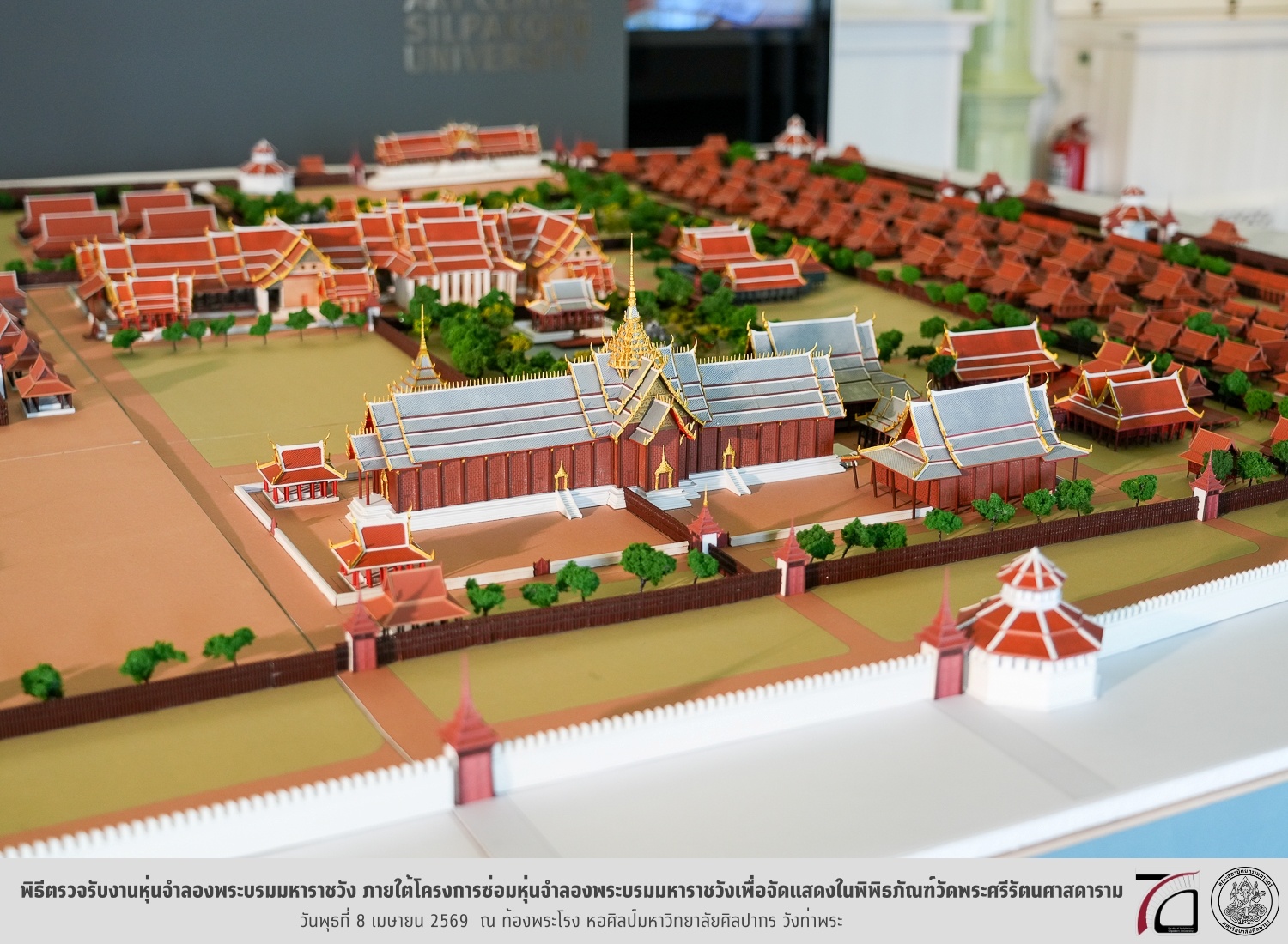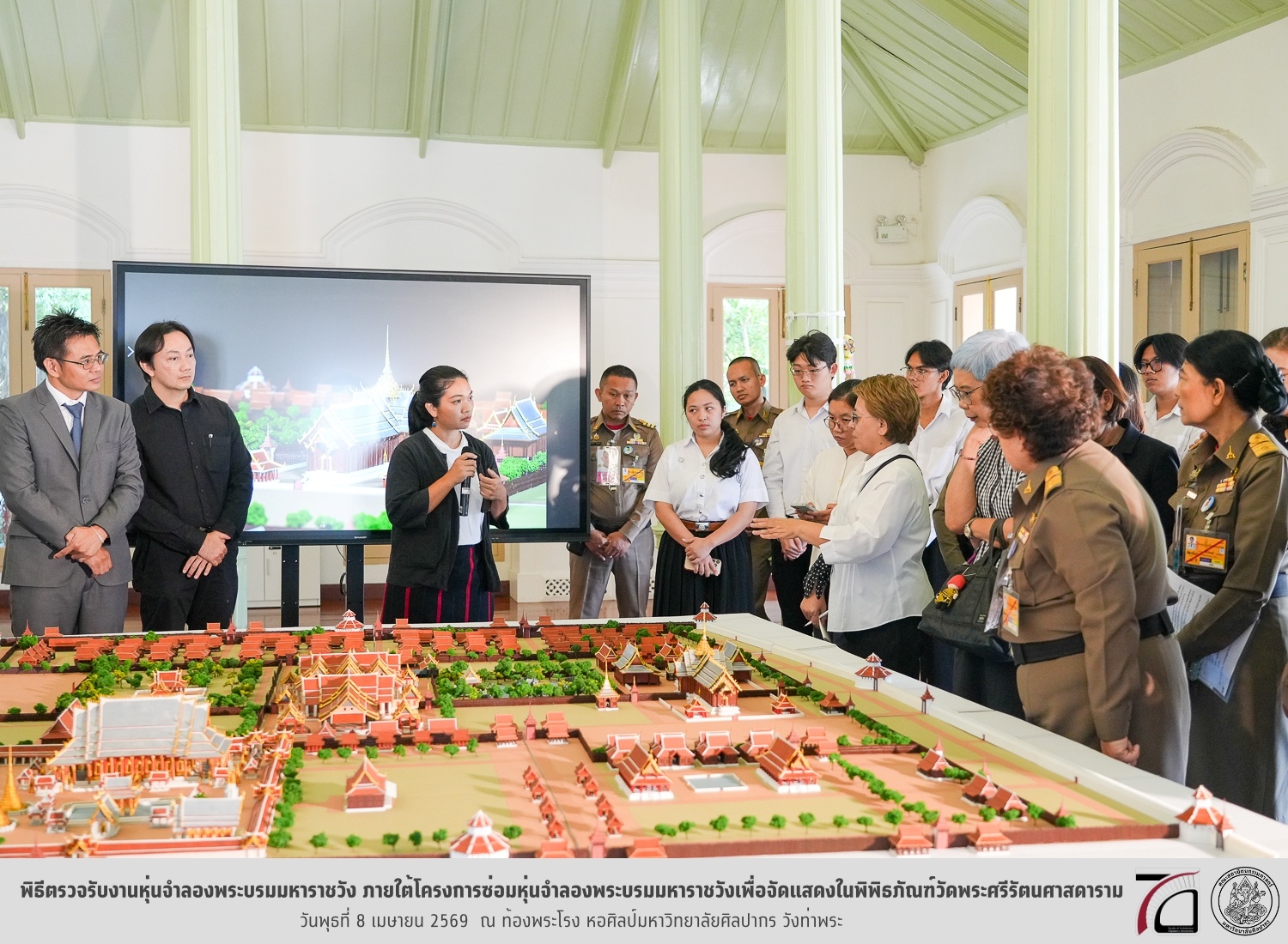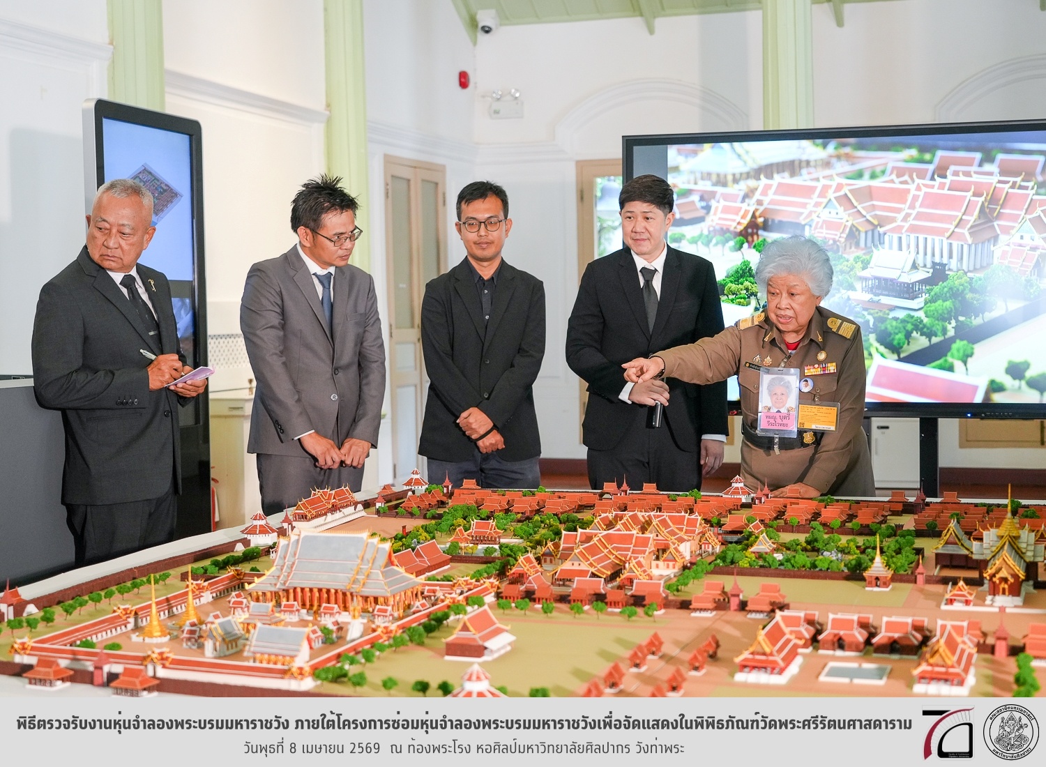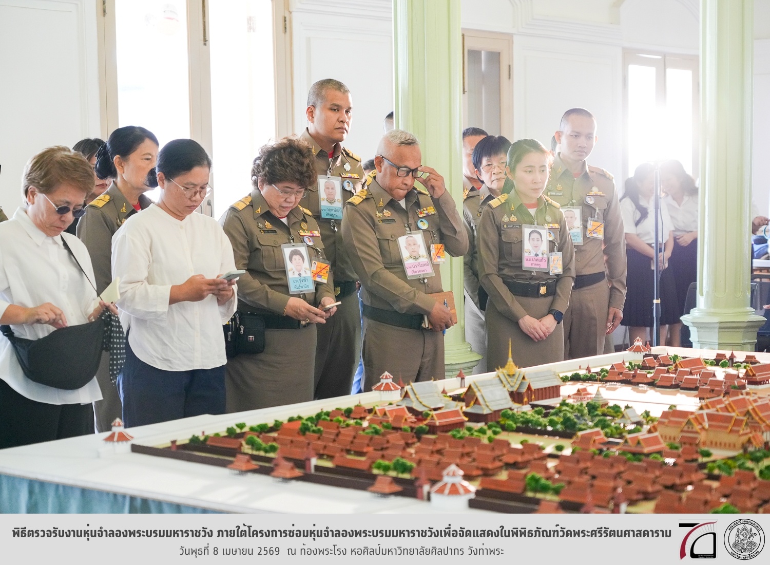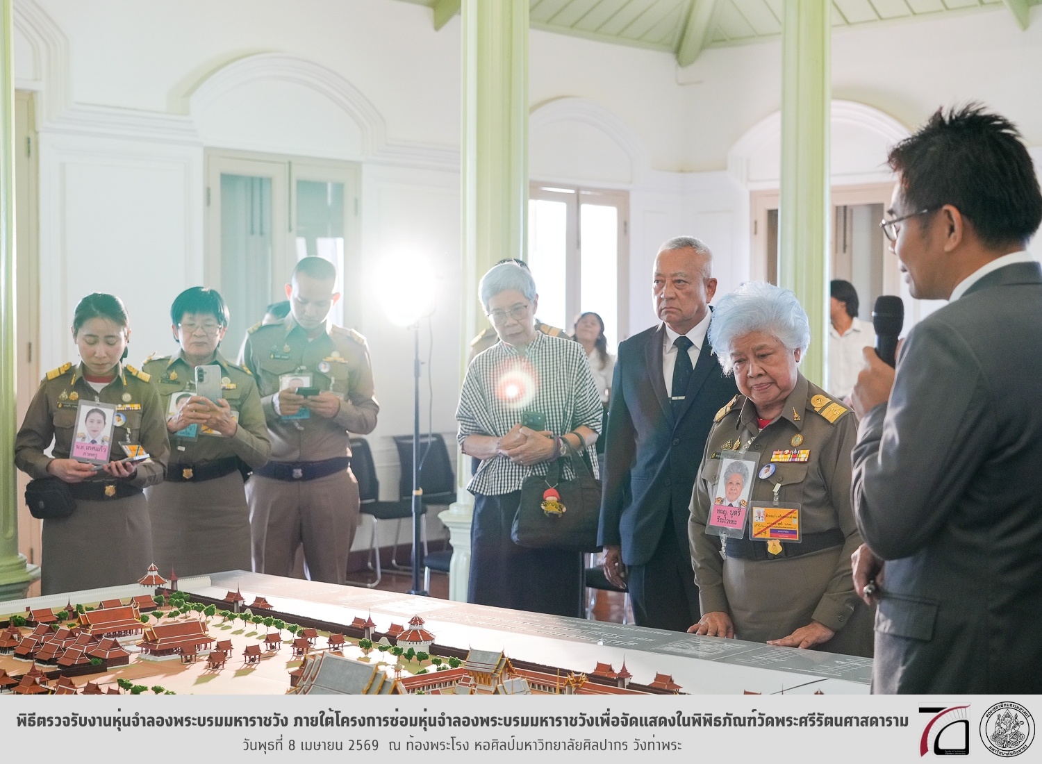 วันพุธที่ 8 เมษายน 2569 คณะสถาปัตยกรรมศาสตร์ มหาวิทยาลัยศิลปากร นำโดย ผู้ช่วยศาสตราจารย์ ดร.บุณยกร วชิระเธียรชัย ในฐานะผู้รับผิดชอบโครงการซ่อมหุ่นจำลองพระบรมมหาราชวังเพื่อจัดแสดงในพิพิธภัณฑ์วัดพระศรีรัตนศาสดาราม และคณะทำงาน ประกอบด้วย ผู้ช่วยศาสตราจารย์ ดร.พินัย สิริเกียรติกุล ผู้ช่วยศาสตราจารย์พีระพัฒน์ สำราญ ผู้ช่วยศาสตราจารย์สิริเดช วังกรานต์ พร้อมกับอาจารย์ศรินยา โทณสุกุมาร หัวหน้าภาควิชาศิลปสถาปัตยกรรม