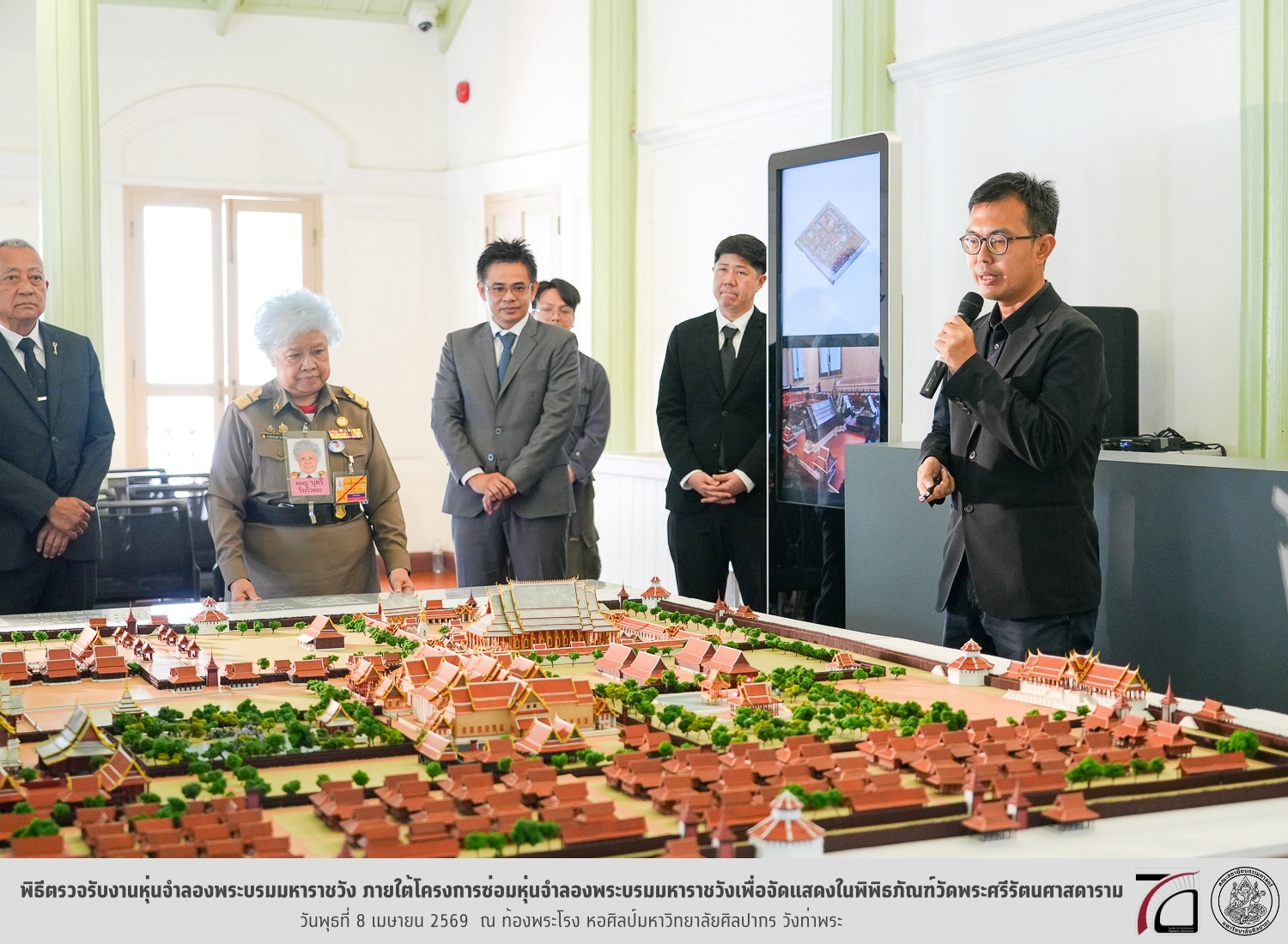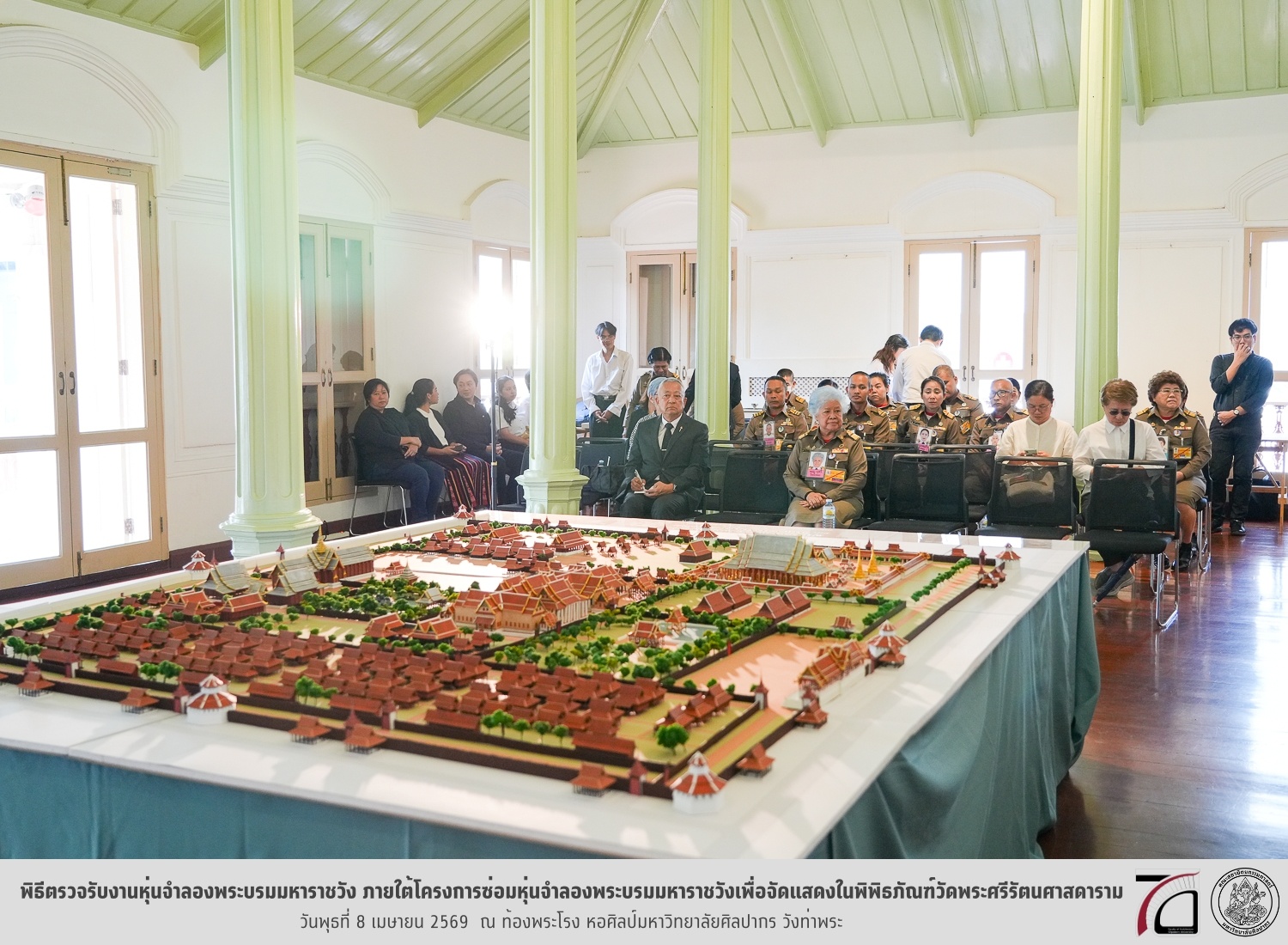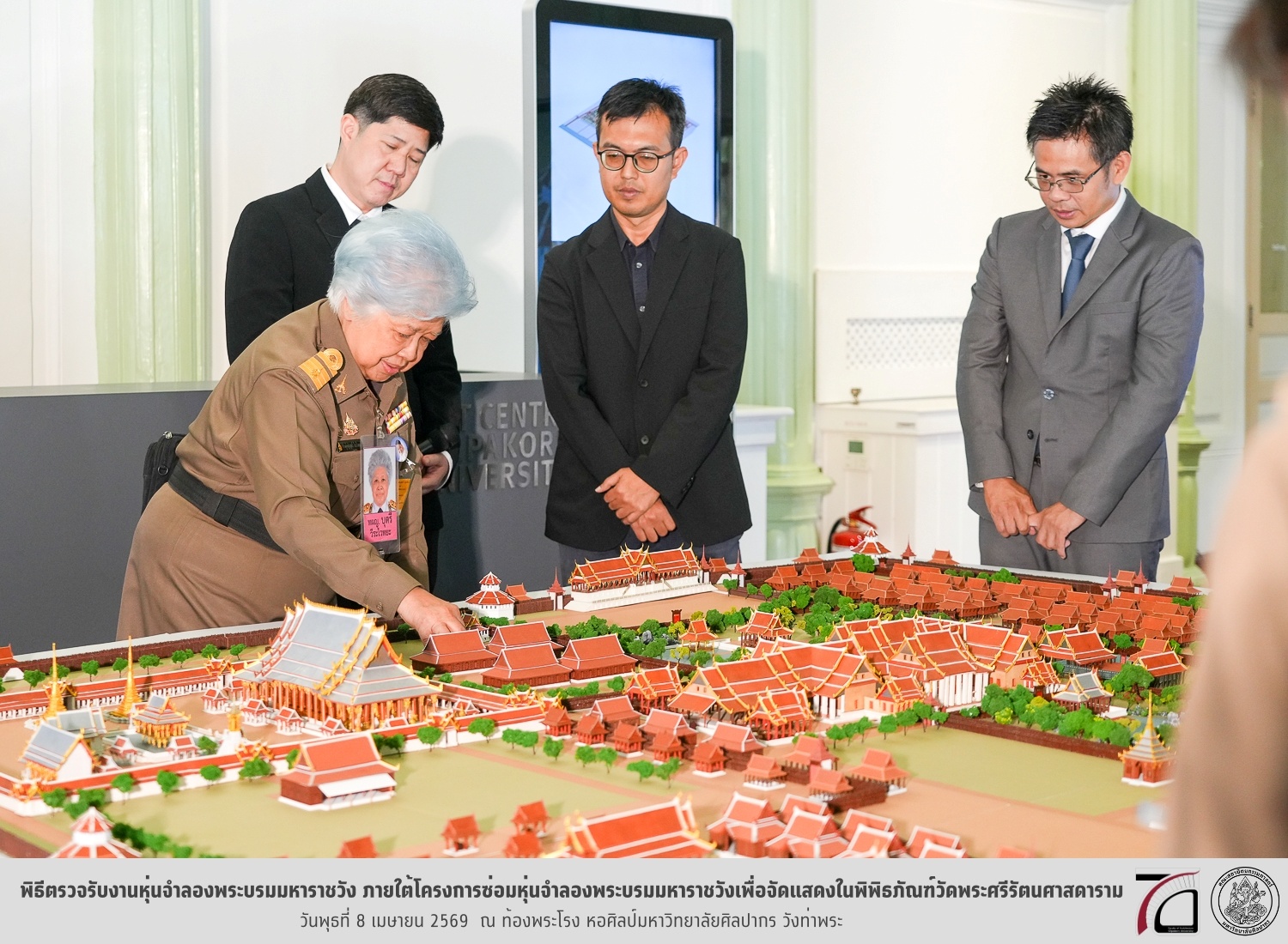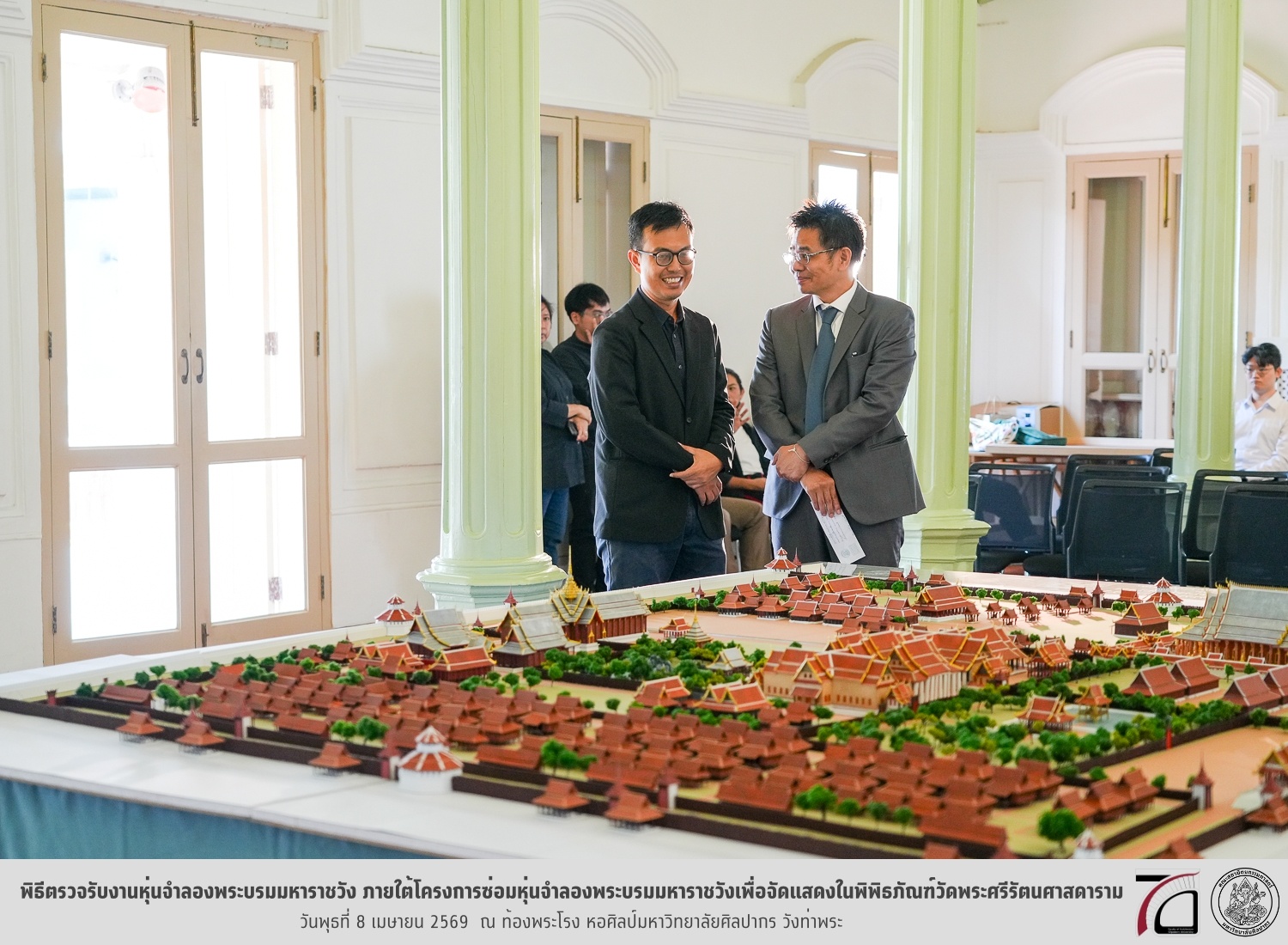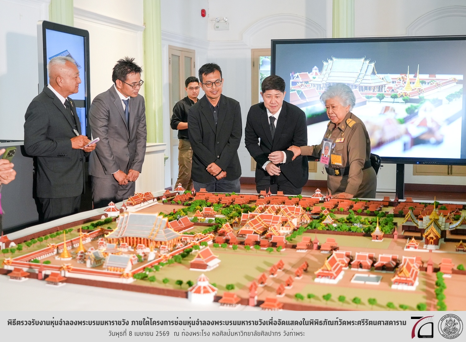 วันพุธที่ 8 เมษายน 2569 คณะสถาปัตยกรรมศาสตร์ มหาวิทยาลัยศิลปากร นำโดย ผู้ช่วยศาสตราจารย์ ดร.บุณยกร วชิระเธียรชัย ในฐานะผู้รับผิดชอบโครงการซ่อมหุ่นจำลองพระบรมมหาราชวังเพื่อจัดแสดงในพิพิธภัณฑ์วัดพระศรีรัตนศาสดาราม และคณะทำงาน ประกอบด้วย ผู้ช่วยศาสตราจารย์ ดร.พินัย สิริเกียรติกุล ผู้ช่วยศาสตราจารย์พีระพัฒน์ สำราญ ผู้ช่วยศาสตราจารย์สิริเดช วังกรานต์ พร้อมกับอาจารย์ศรินยา โทณสุกุมาร หัวหน้าภาควิชาศิลปสถาปัตยกรรม