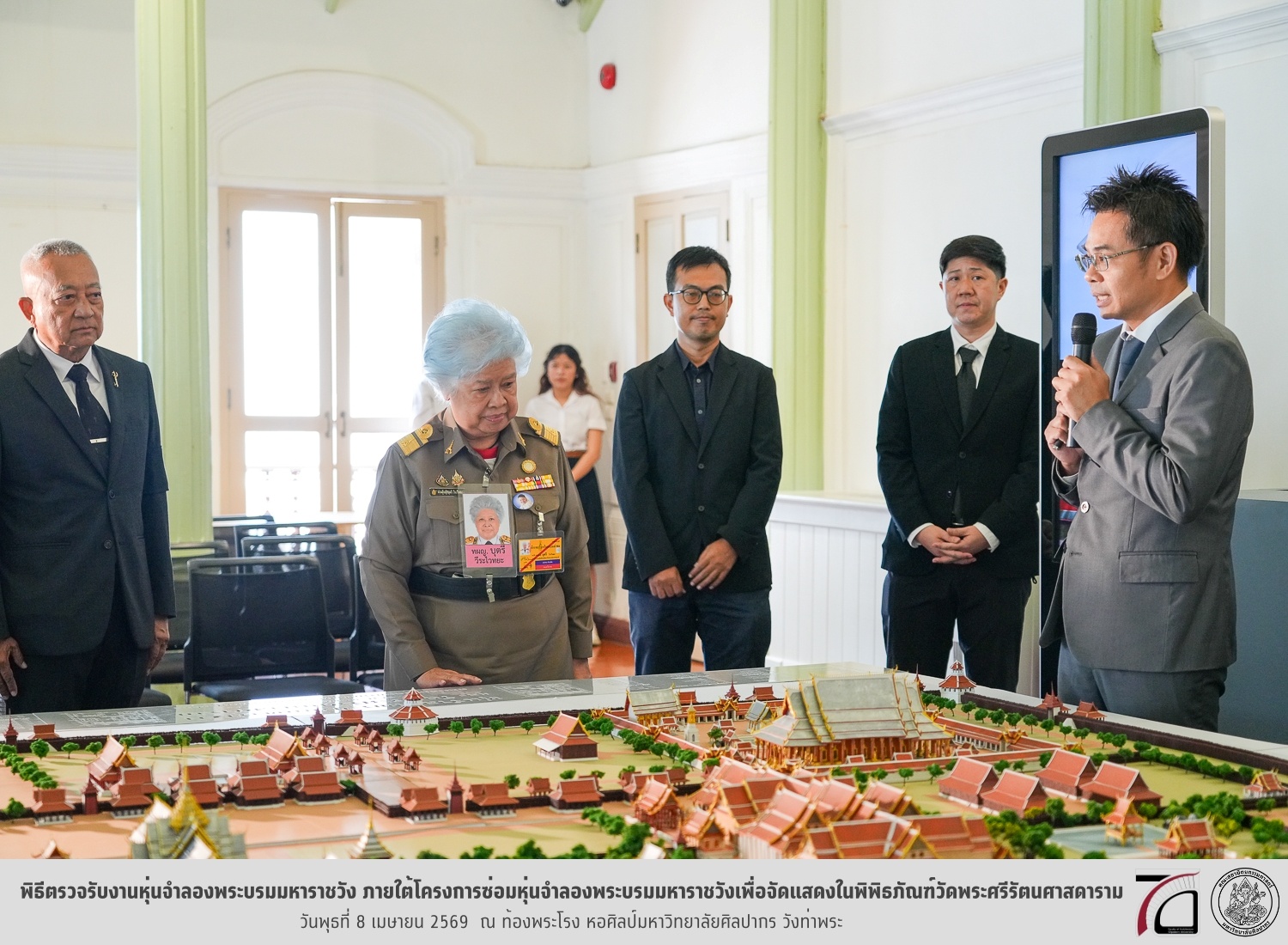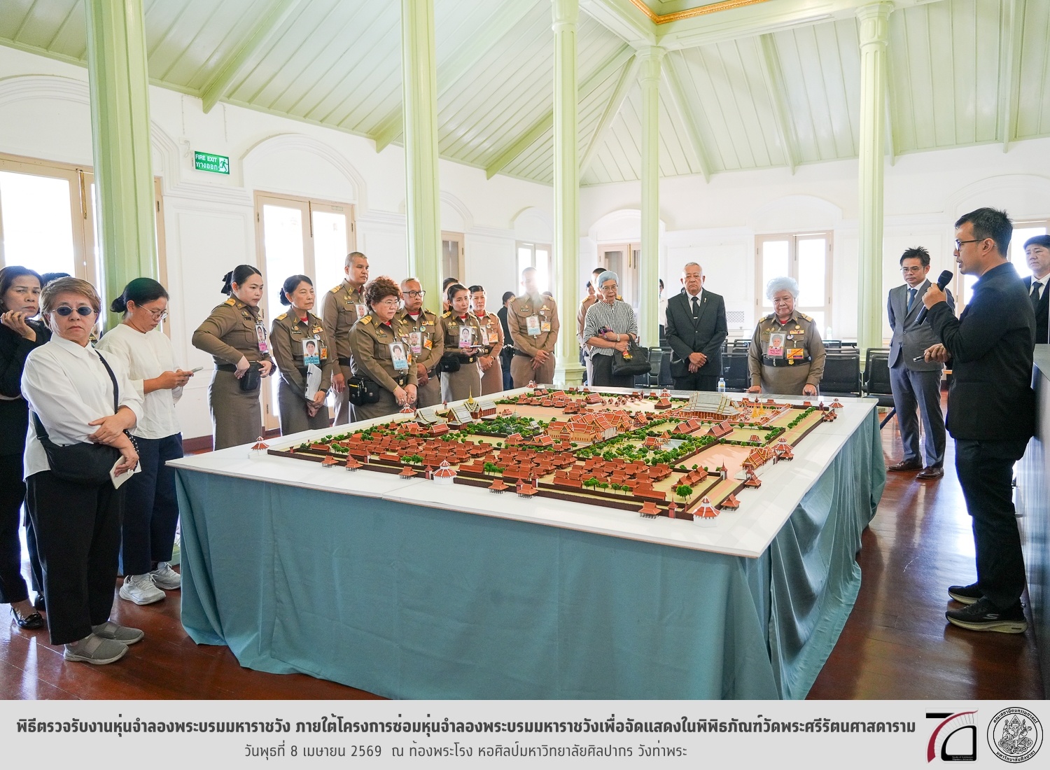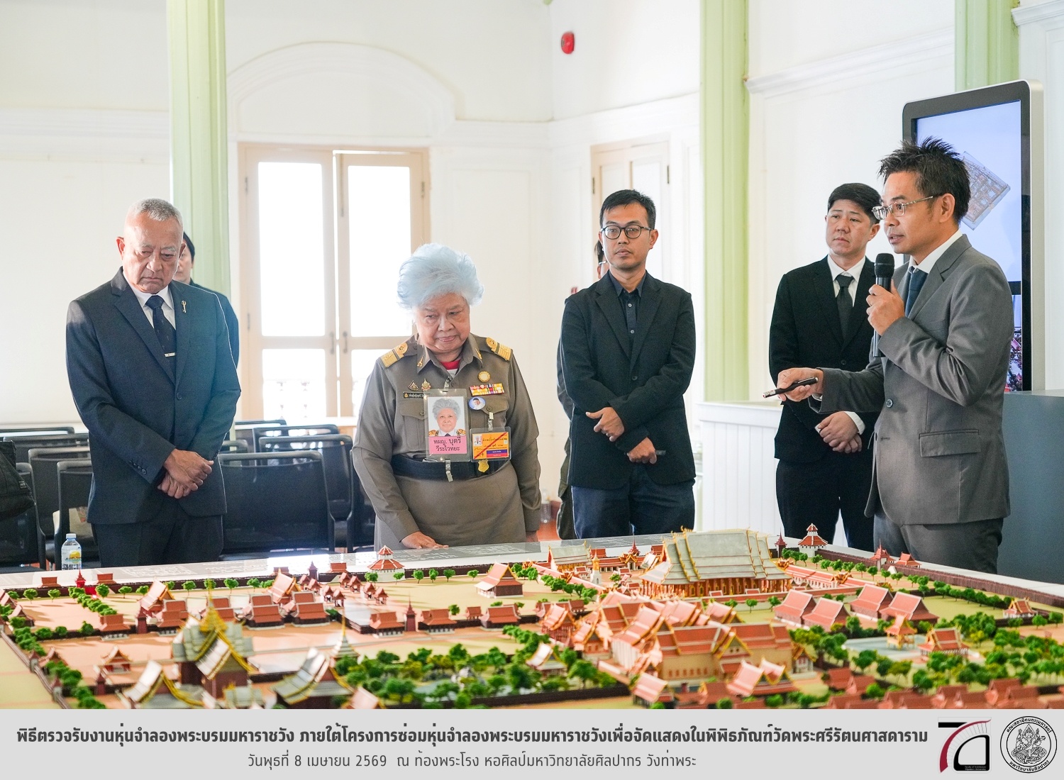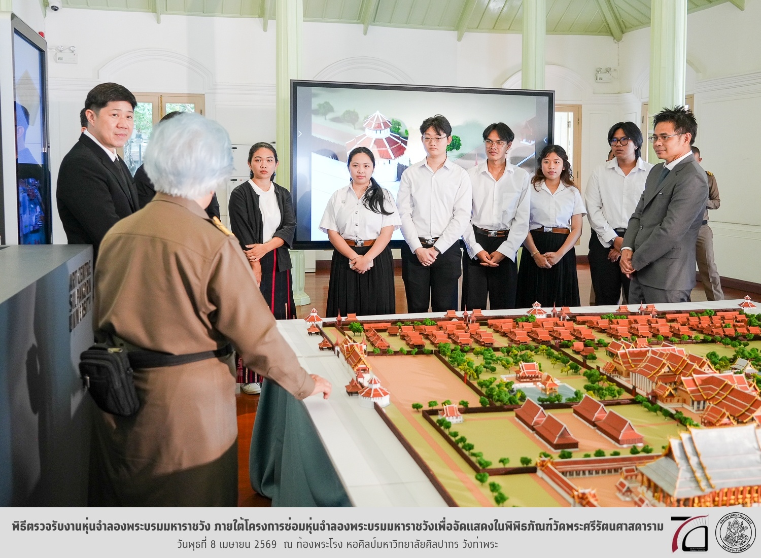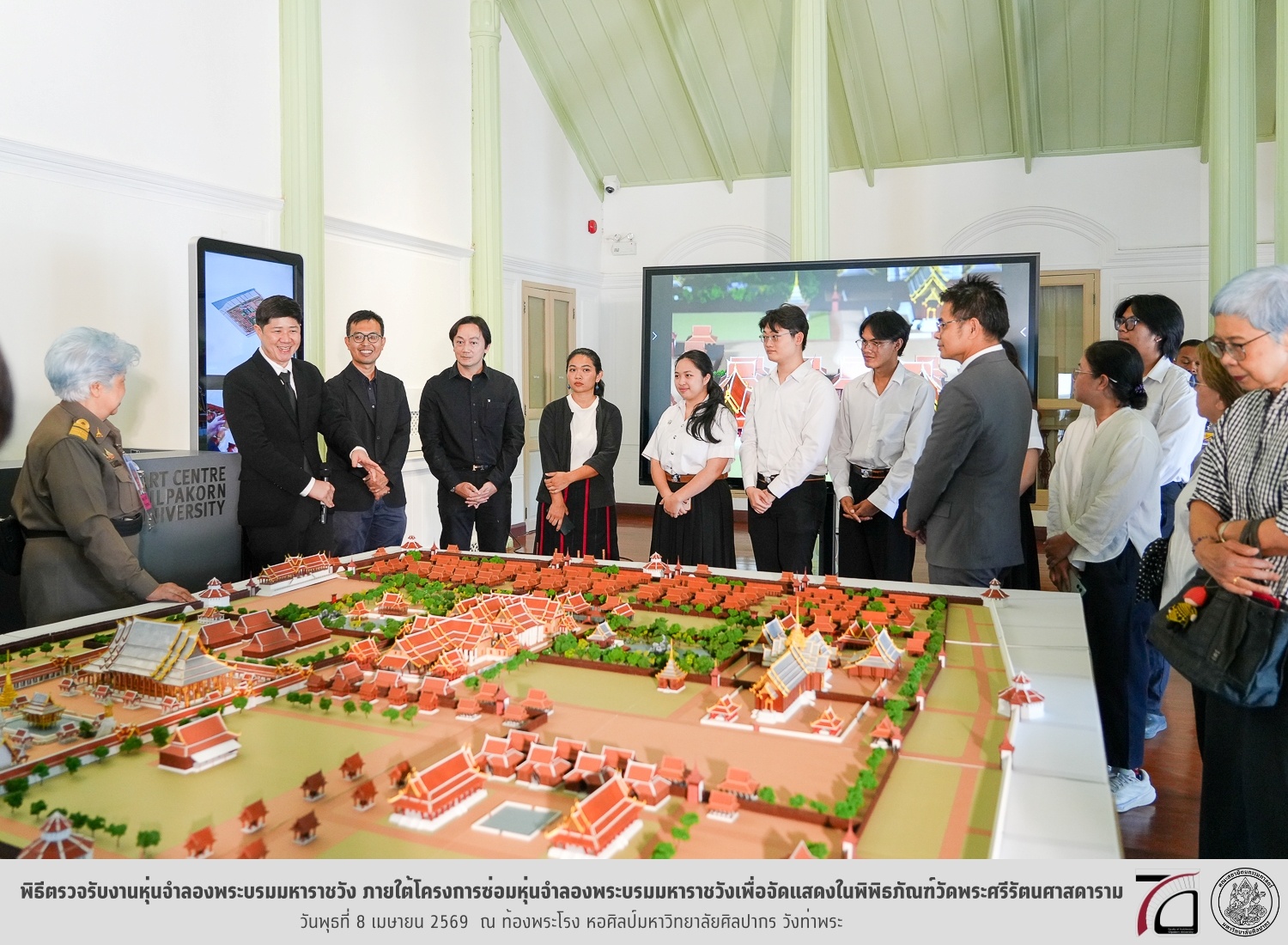 วันพุธที่ 8 เมษายน 2569 คณะสถาปัตยกรรมศาสตร์ มหาวิทยาลัยศิลปากร นำโดย ผู้ช่วยศาสตราจารย์ ดร.บุณยกร วชิระเธียรชัย ในฐานะผู้รับผิดชอบโครงการซ่อมหุ่นจำลองพระบรมมหาราชวังเพื่อจัดแสดงในพิพิธภัณฑ์วัดพระศรีรัตนศาสดาราม และคณะทำงาน ประกอบด้วย ผู้ช่วยศาสตราจารย์ ดร.พินัย สิริเกียรติกุล ผู้ช่วยศาสตราจารย์พีระพัฒน์ สำราญ ผู้ช่วยศาสตราจารย์สิริเดช วังกรานต์ พร้อมกับอาจารย์ศรินยา โทณสุกุมาร หัวหน้าภาควิชาศิลปสถาปัตยกรรม