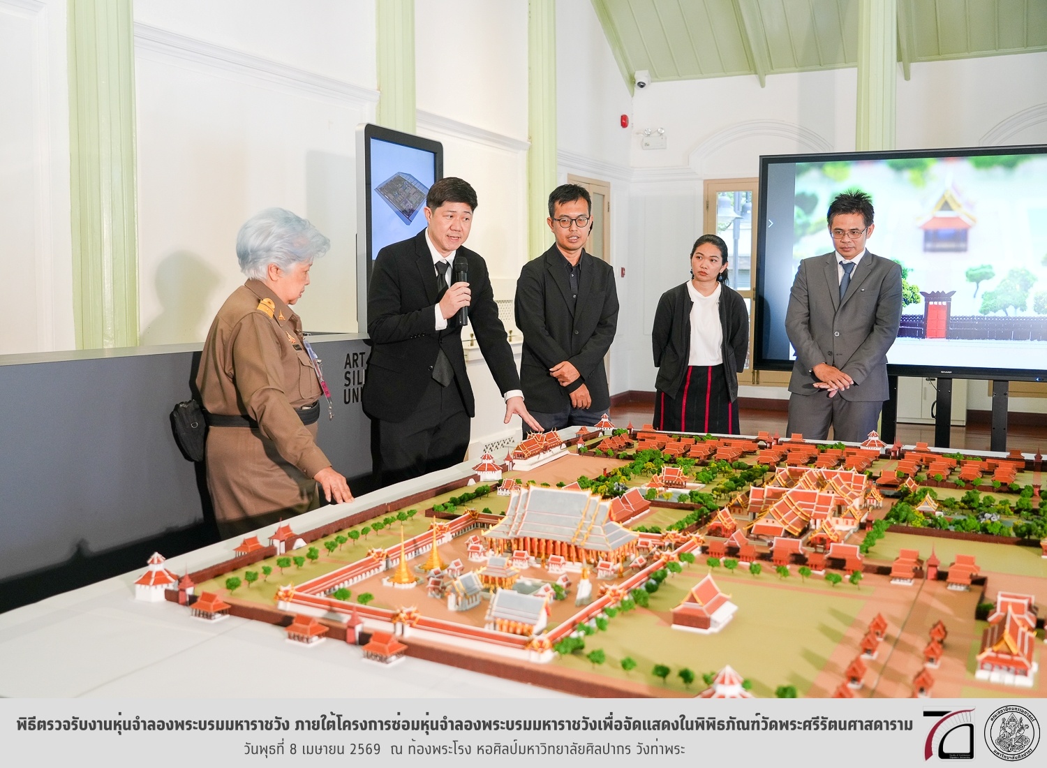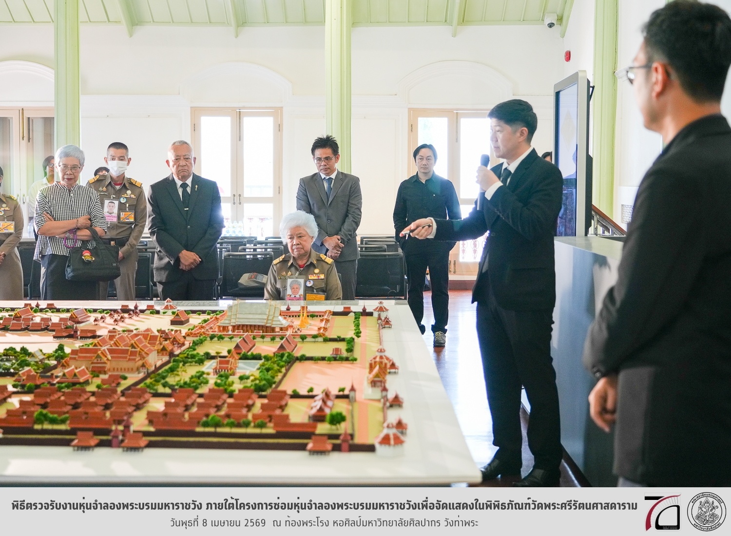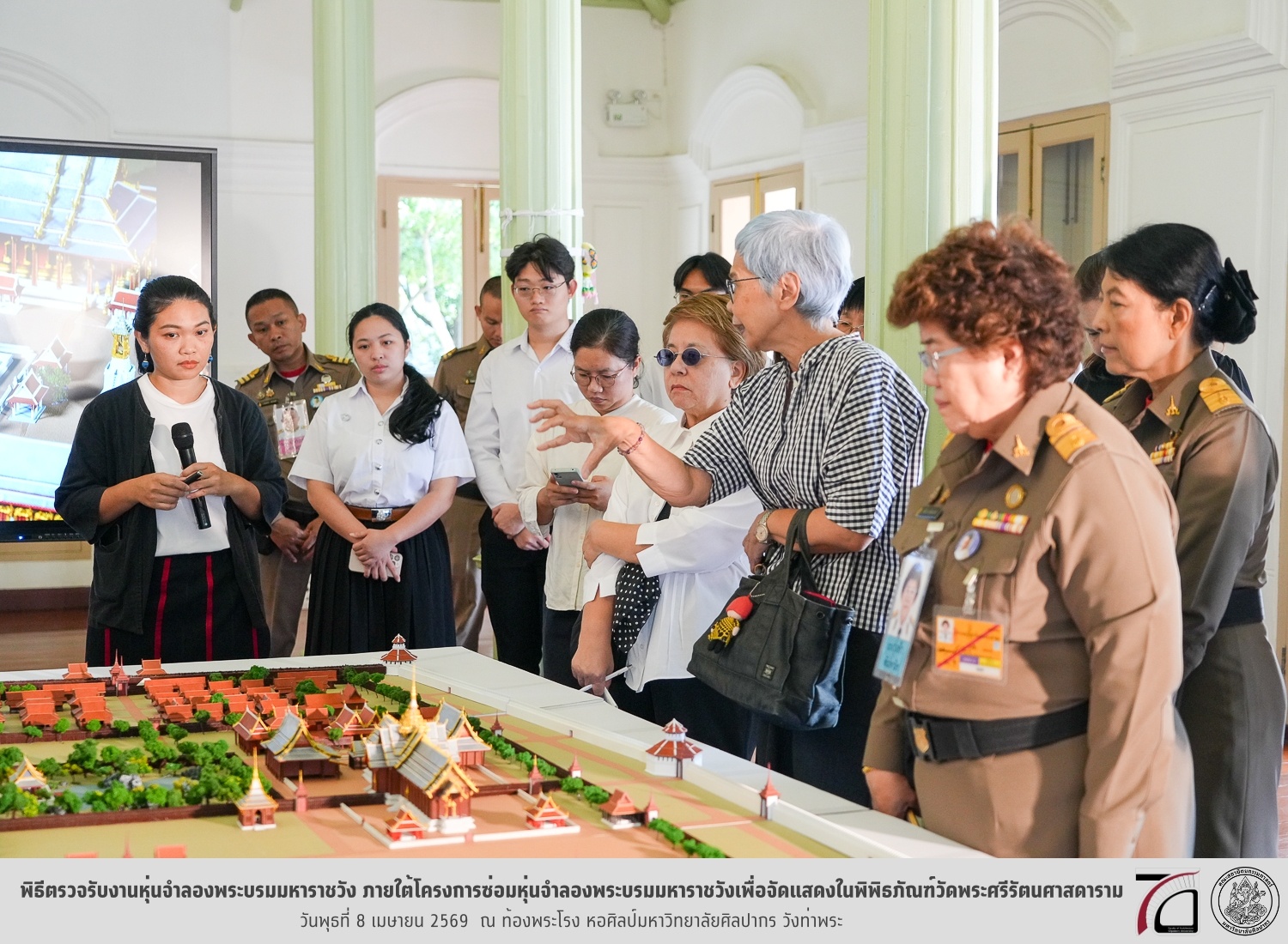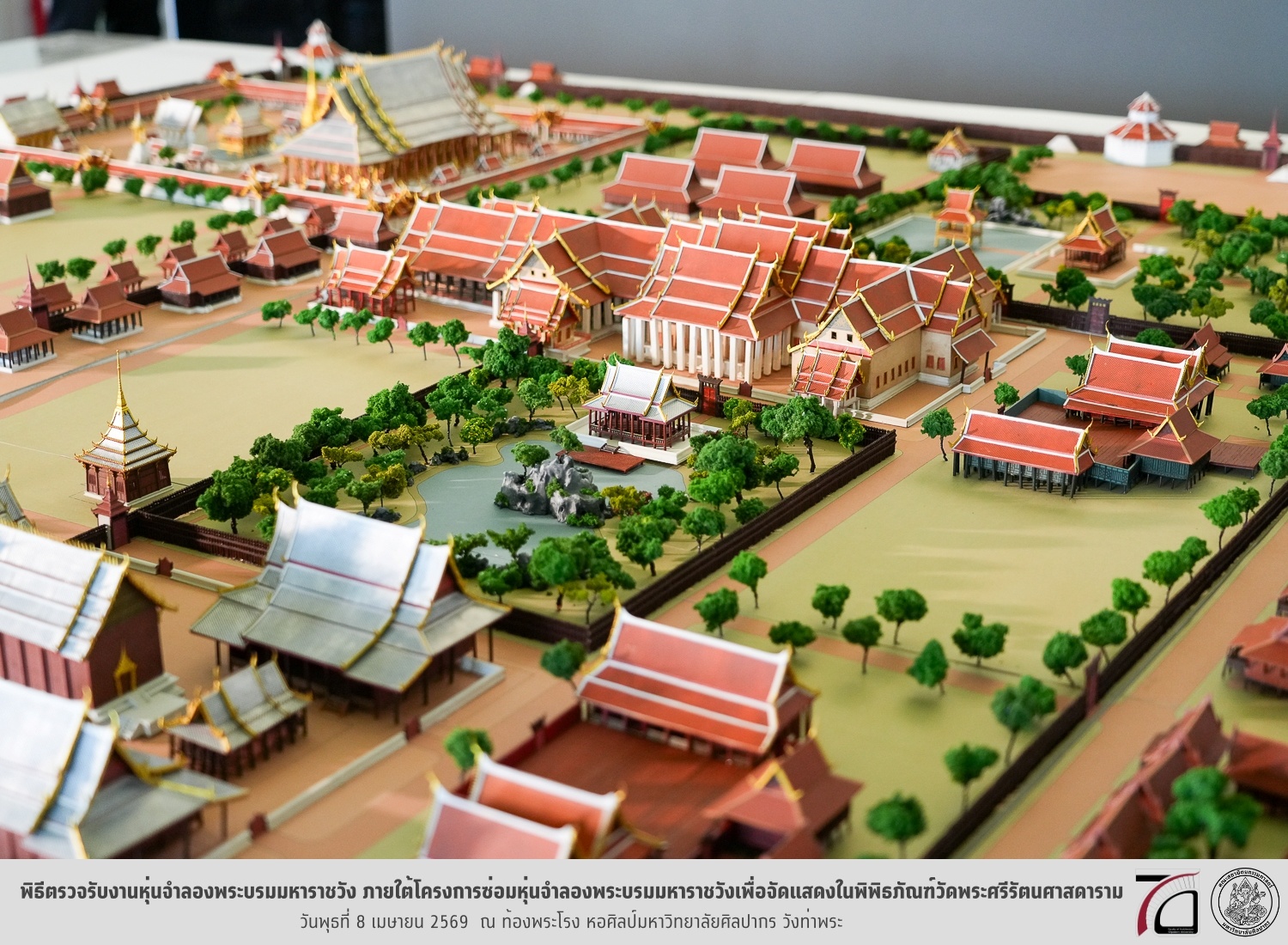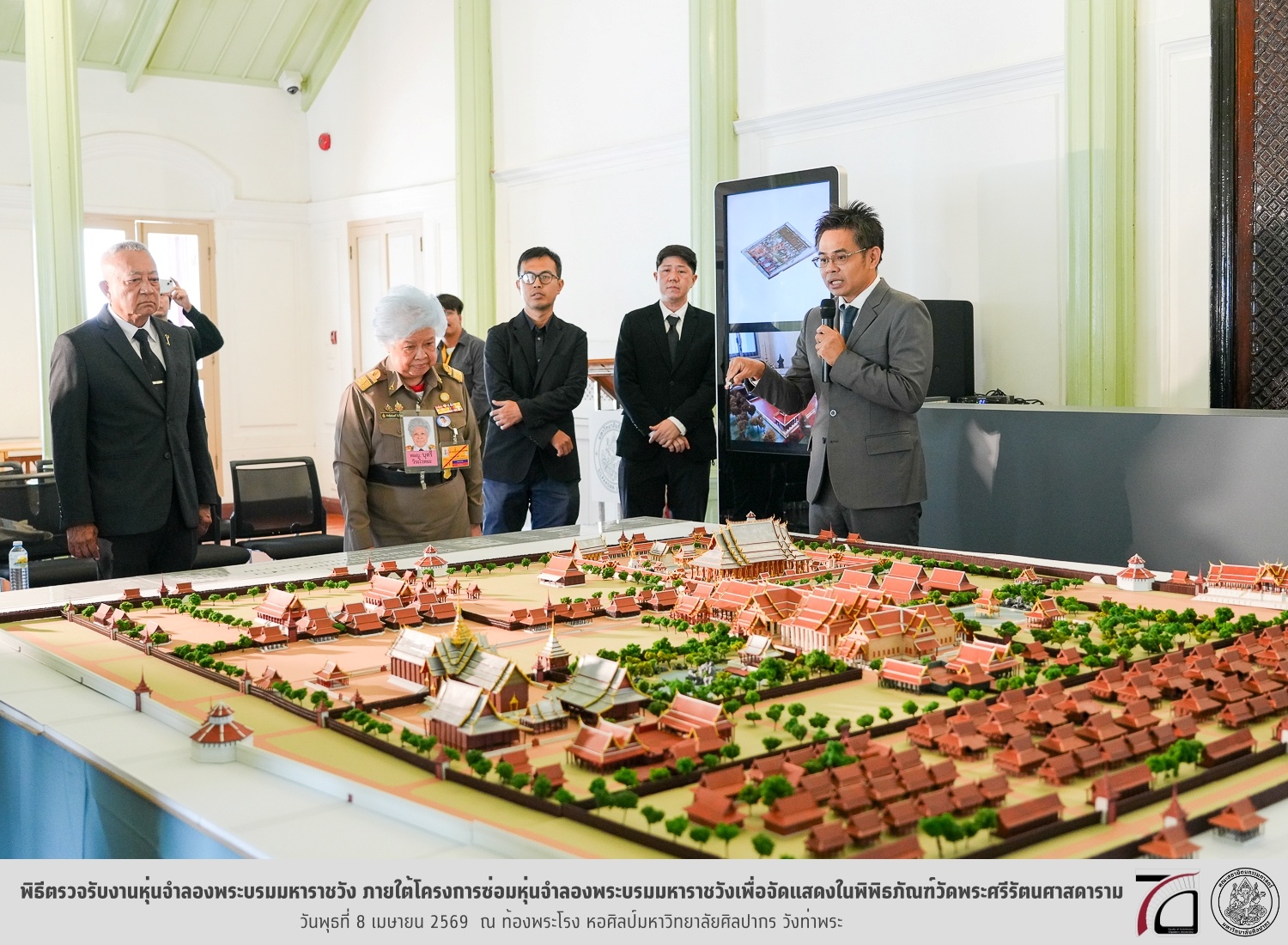 วันพุธที่ 8 เมษายน 2569 คณะสถาปัตยกรรมศาสตร์ มหาวิทยาลัยศิลปากร นำโดย ผู้ช่วยศาสตราจารย์ ดร.บุณยกร วชิระเธียรชัย ในฐานะผู้รับผิดชอบโครงการซ่อมหุ่นจำลองพระบรมมหาราชวังเพื่อจัดแสดงในพิพิธภัณฑ์วัดพระศรีรัตนศาสดาราม และคณะทำงาน ประกอบด้วย ผู้ช่วยศาสตราจารย์ ดร.พินัย สิริเกียรติกุล ผู้ช่วยศาสตราจารย์พีระพัฒน์ สำราญ ผู้ช่วยศาสตราจารย์สิริเดช วังกรานต์ พร้อมกับอาจารย์ศรินยา โทณสุกุมาร หัวหน้าภาควิชาศิลปสถาปัตยกรรม