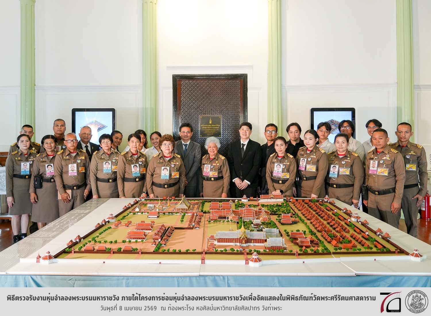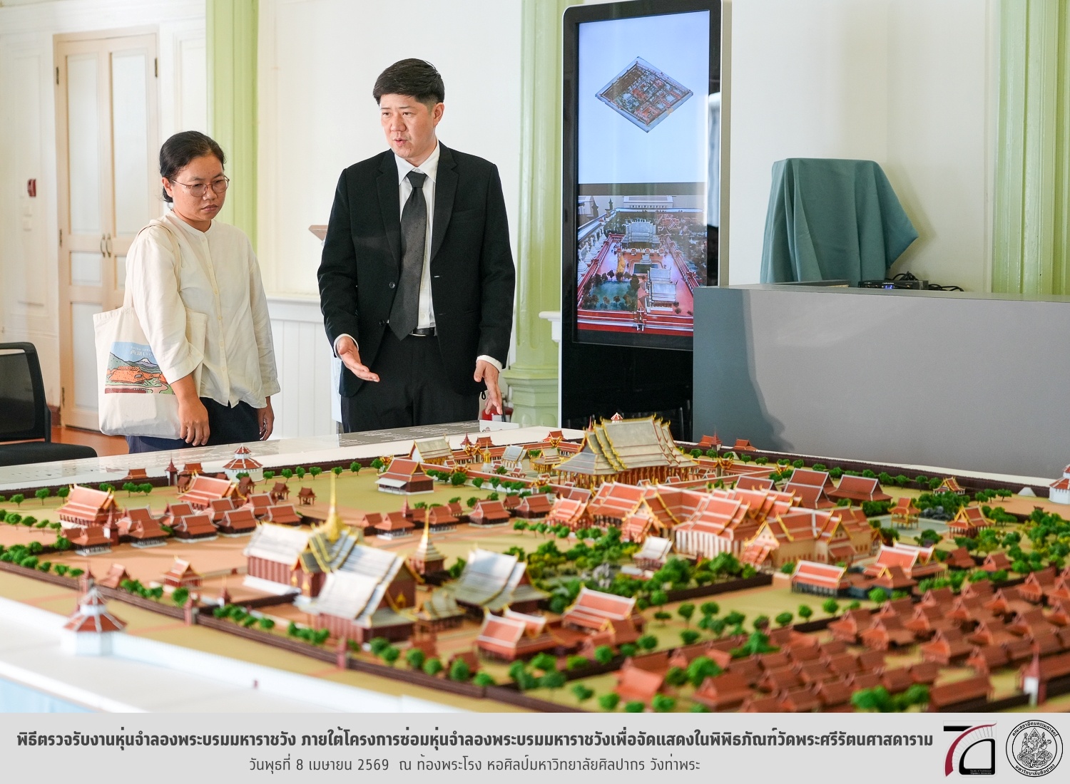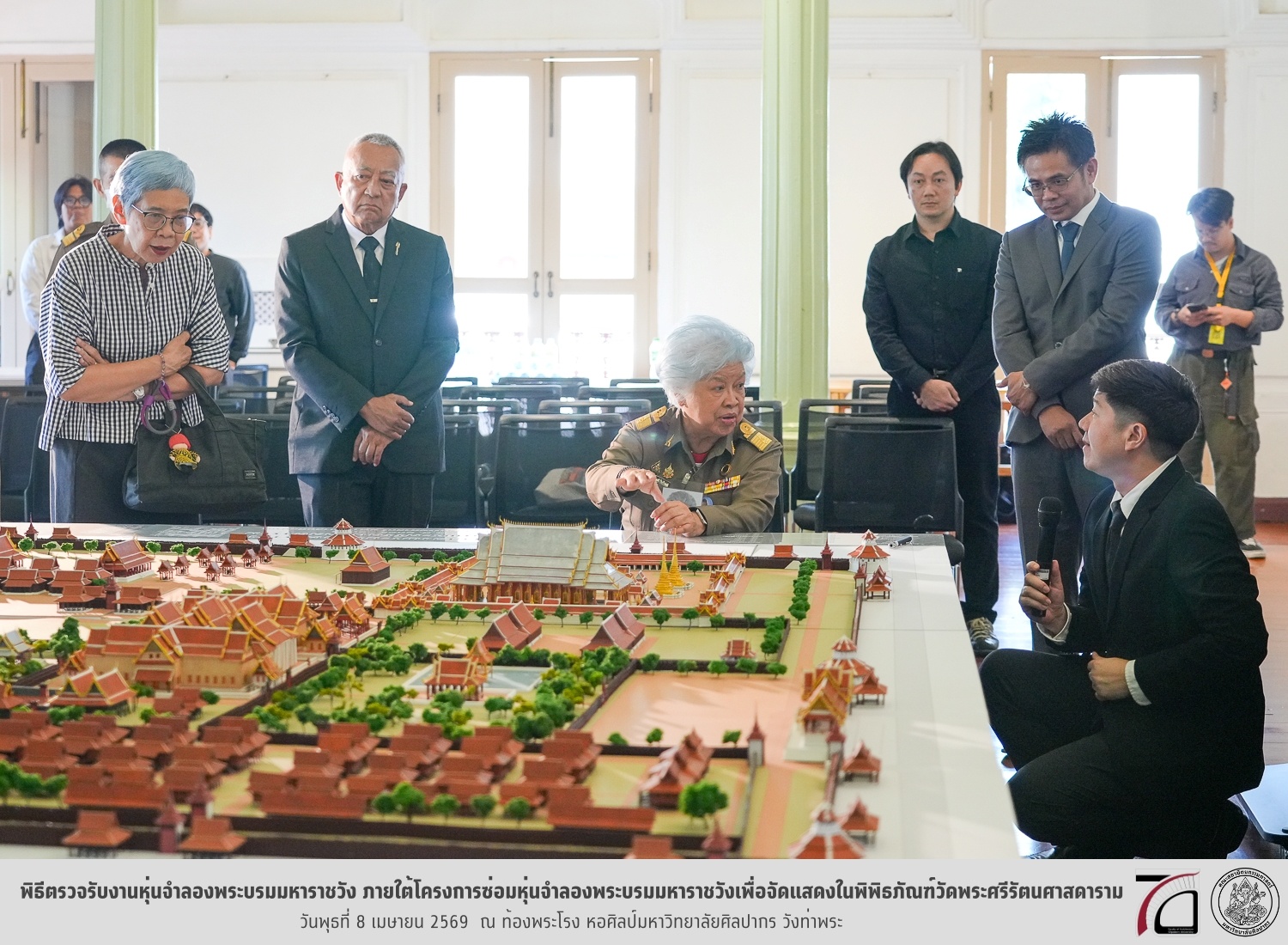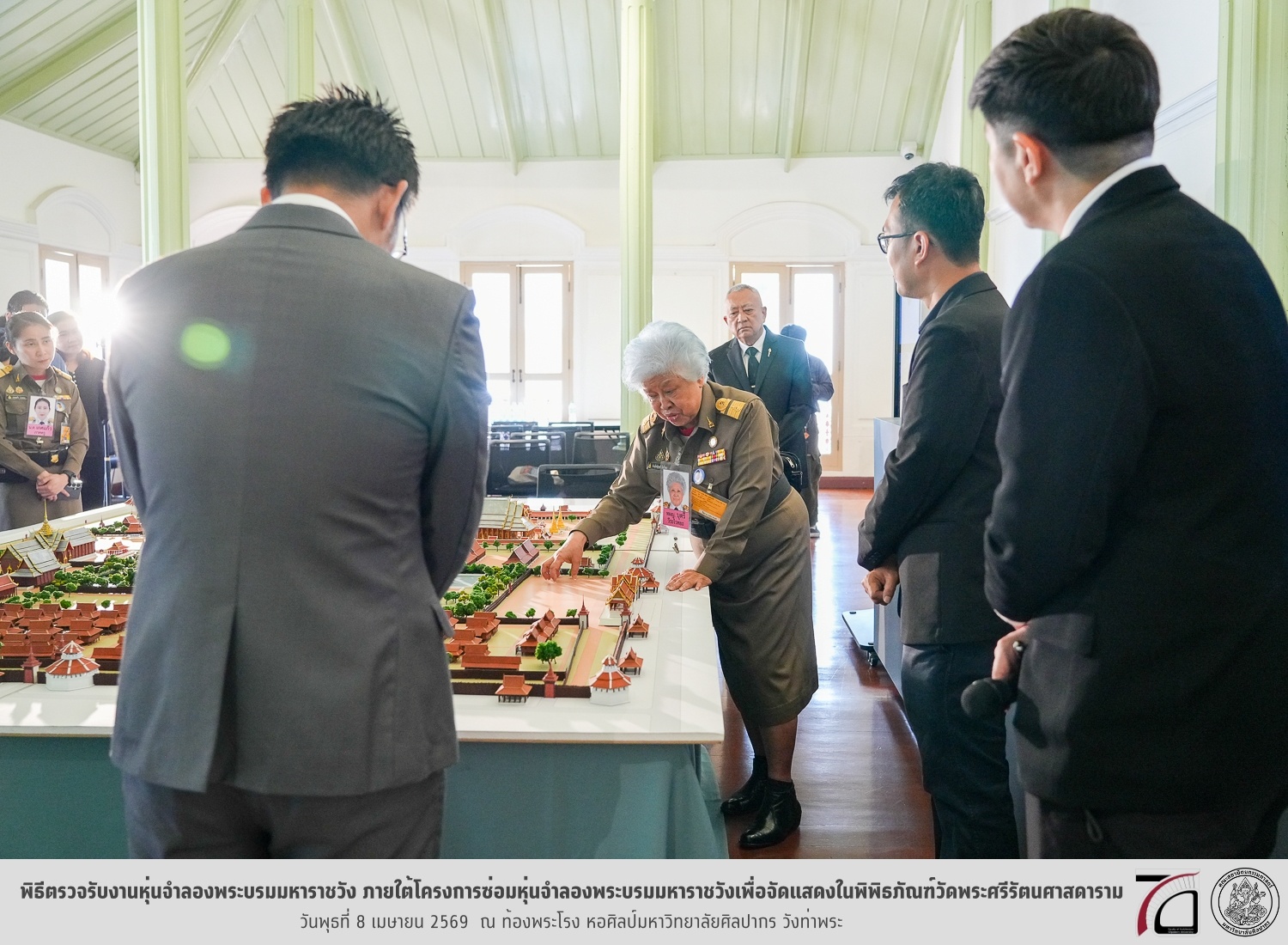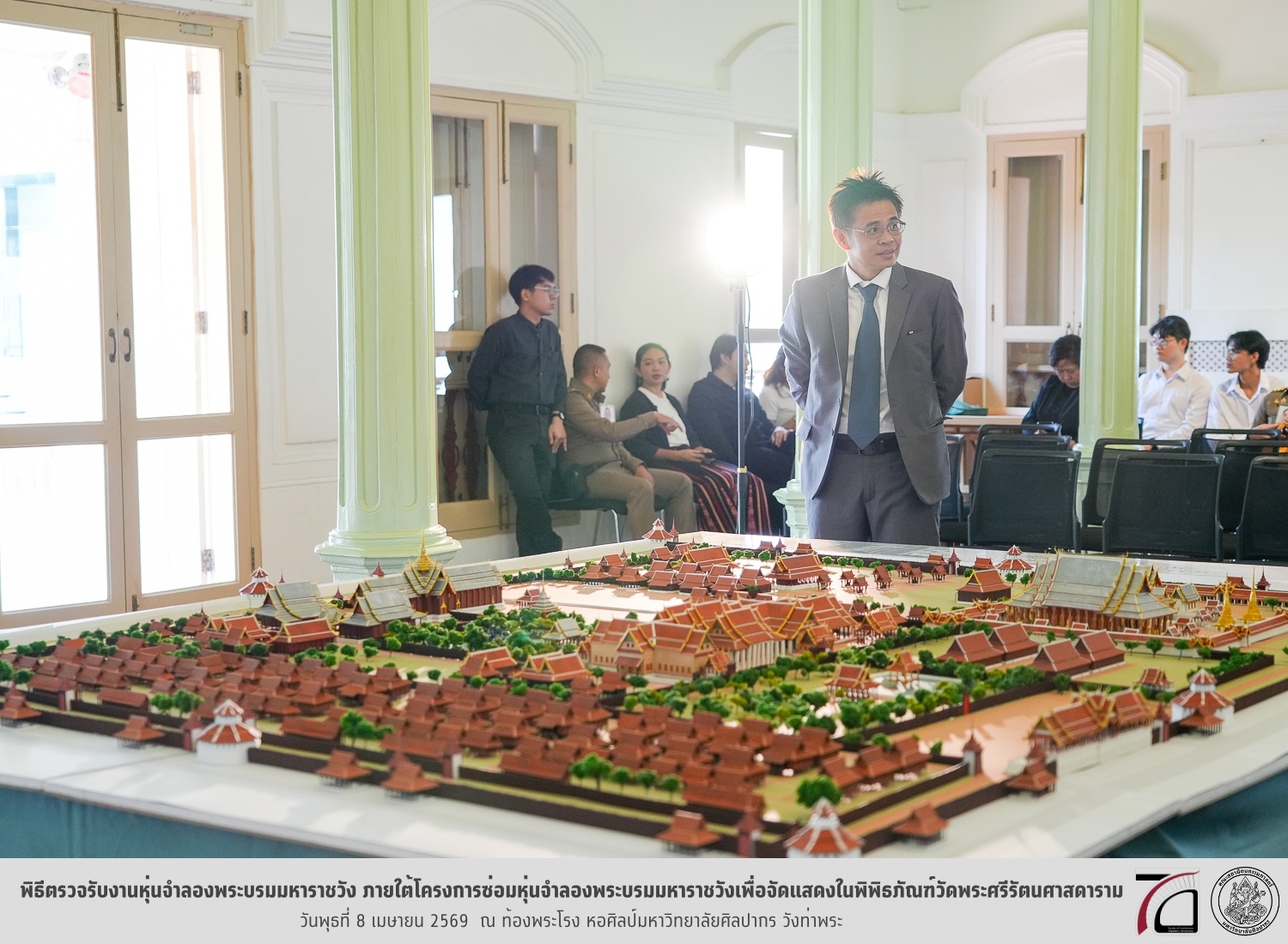 วันพุธที่ 8 เมษายน 2569 คณะสถาปัตยกรรมศาสตร์ มหาวิทยาลัยศิลปากร นำโดย ผู้ช่วยศาสตราจารย์ ดร.บุณยกร วชิระเธียรชัย ในฐานะผู้รับผิดชอบโครงการซ่อมหุ่นจำลองพระบรมมหาราชวังเพื่อจัดแสดงในพิพิธภัณฑ์วัดพระศรีรัตนศาสดาราม และคณะทำงาน ประกอบด้วย ผู้ช่วยศาสตราจารย์ ดร.พินัย สิริเกียรติกุล ผู้ช่วยศาสตราจารย์พีระพัฒน์ สำราญ ผู้ช่วยศาสตราจารย์สิริเดช วังกรานต์ พร้อมกับอาจารย์ศรินยา โทณสุกุมาร หัวหน้าภาควิชาศิลปสถาปัตยกรรม