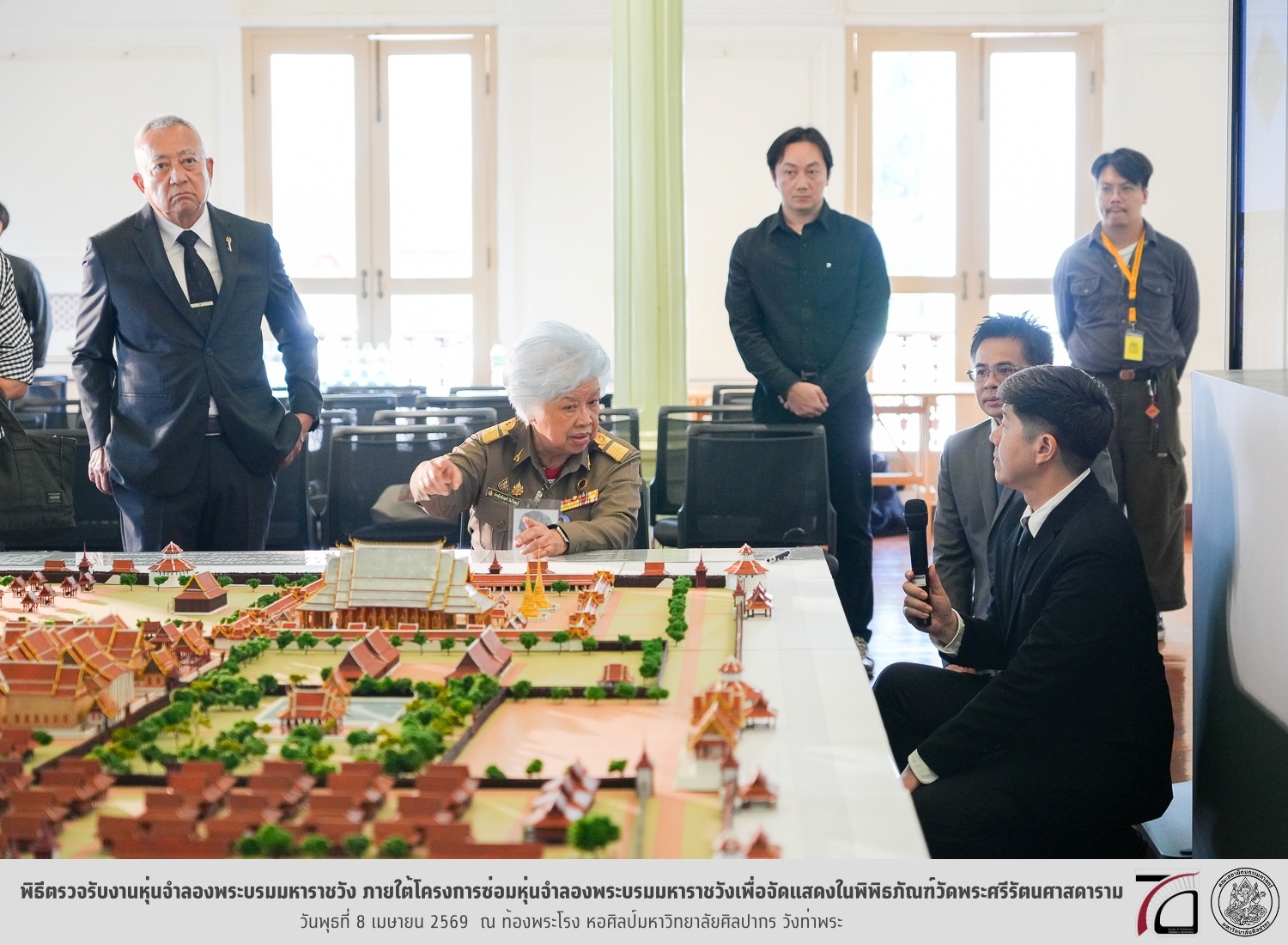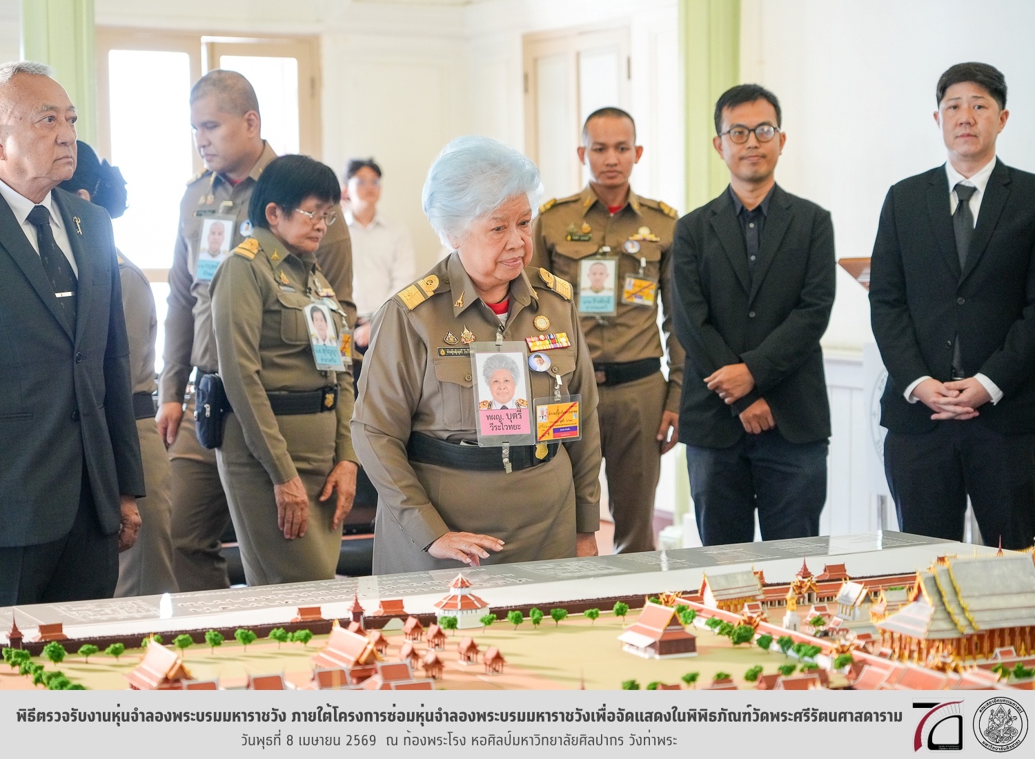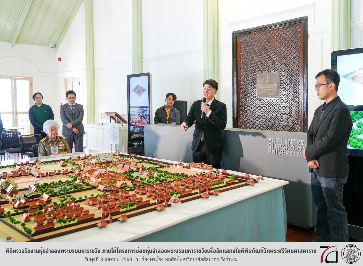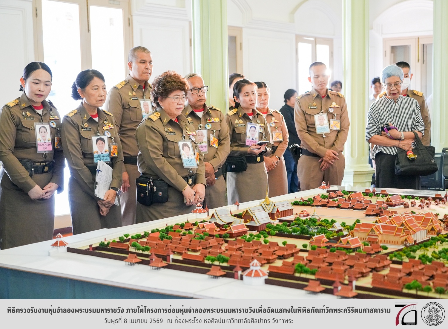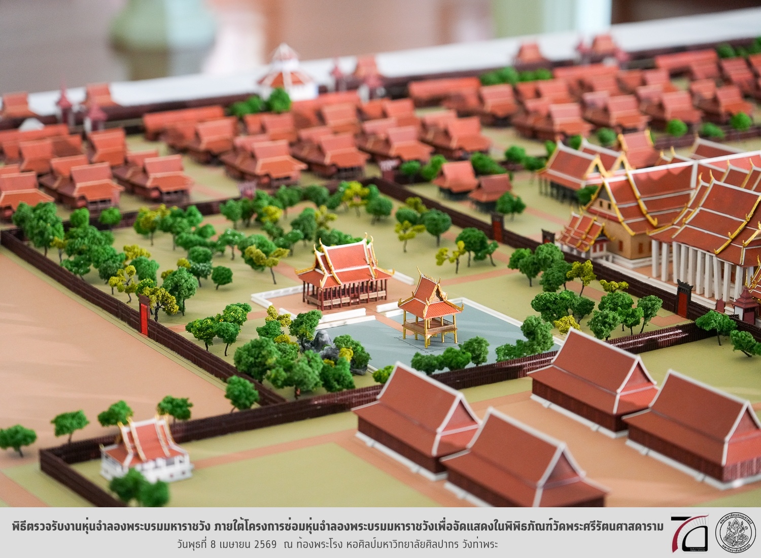 วันพุธที่ 8 เมษายน 2569 คณะสถาปัตยกรรมศาสตร์ มหาวิทยาลัยศิลปากร นำโดย ผู้ช่วยศาสตราจารย์ ดร.บุณยกร วชิระเธียรชัย ในฐานะผู้รับผิดชอบโครงการซ่อมหุ่นจำลองพระบรมมหาราชวังเพื่อจัดแสดงในพิพิธภัณฑ์วัดพระศรีรัตนศาสดาราม และคณะทำงาน ประกอบด้วย ผู้ช่วยศาสตราจารย์ ดร.พินัย สิริเกียรติกุล ผู้ช่วยศาสตราจารย์พีระพัฒน์ สำราญ ผู้ช่วยศาสตราจารย์สิริเดช วังกรานต์ พร้อมกับอาจารย์ศรินยา โทณสุกุมาร หัวหน้าภาควิชาศิลปสถาปัตยกรรม