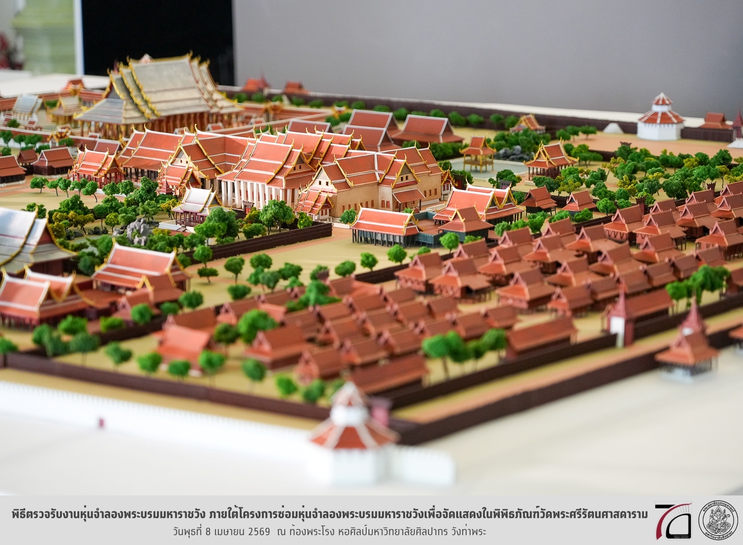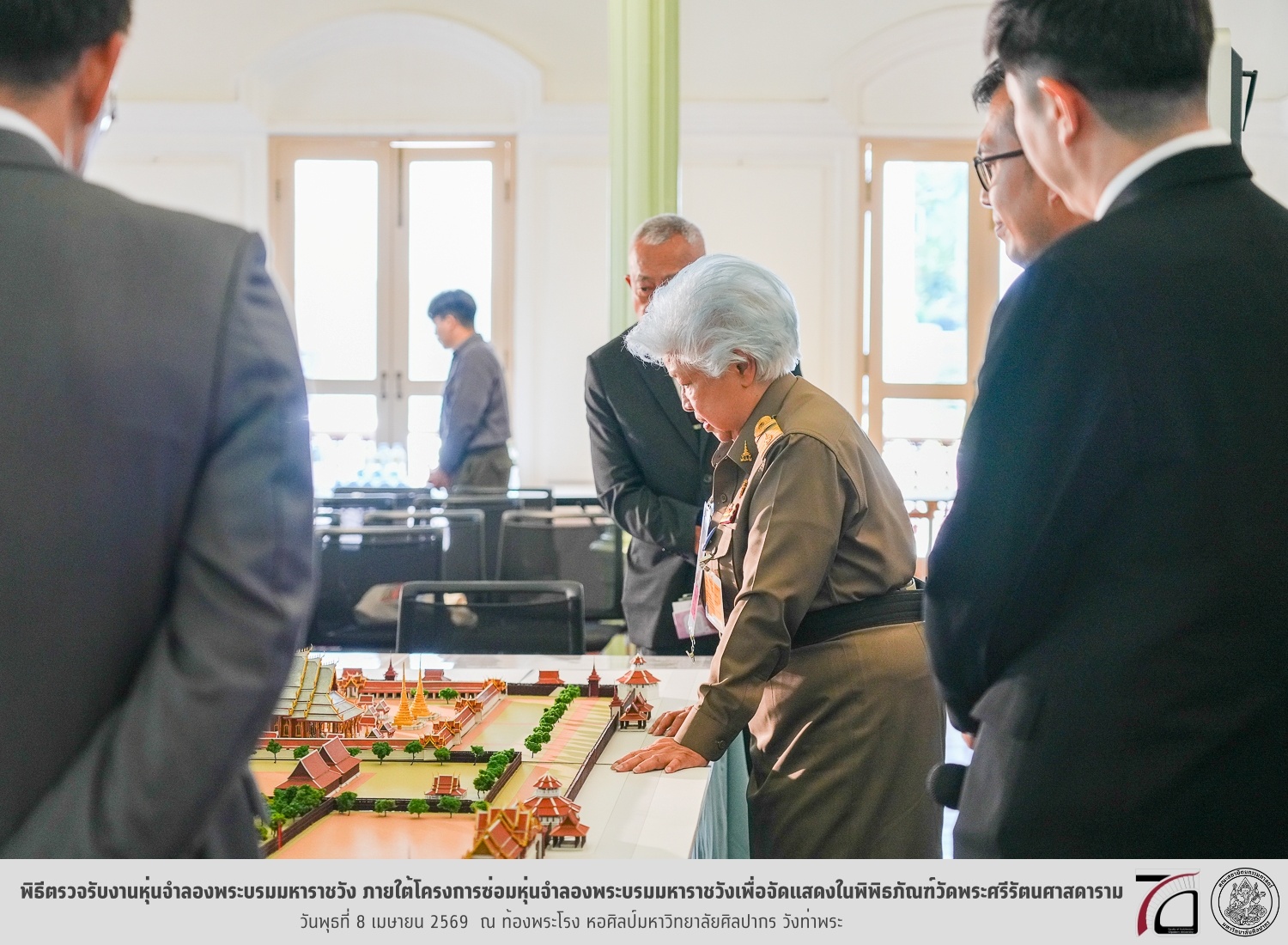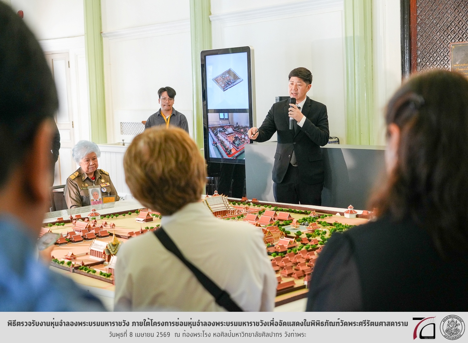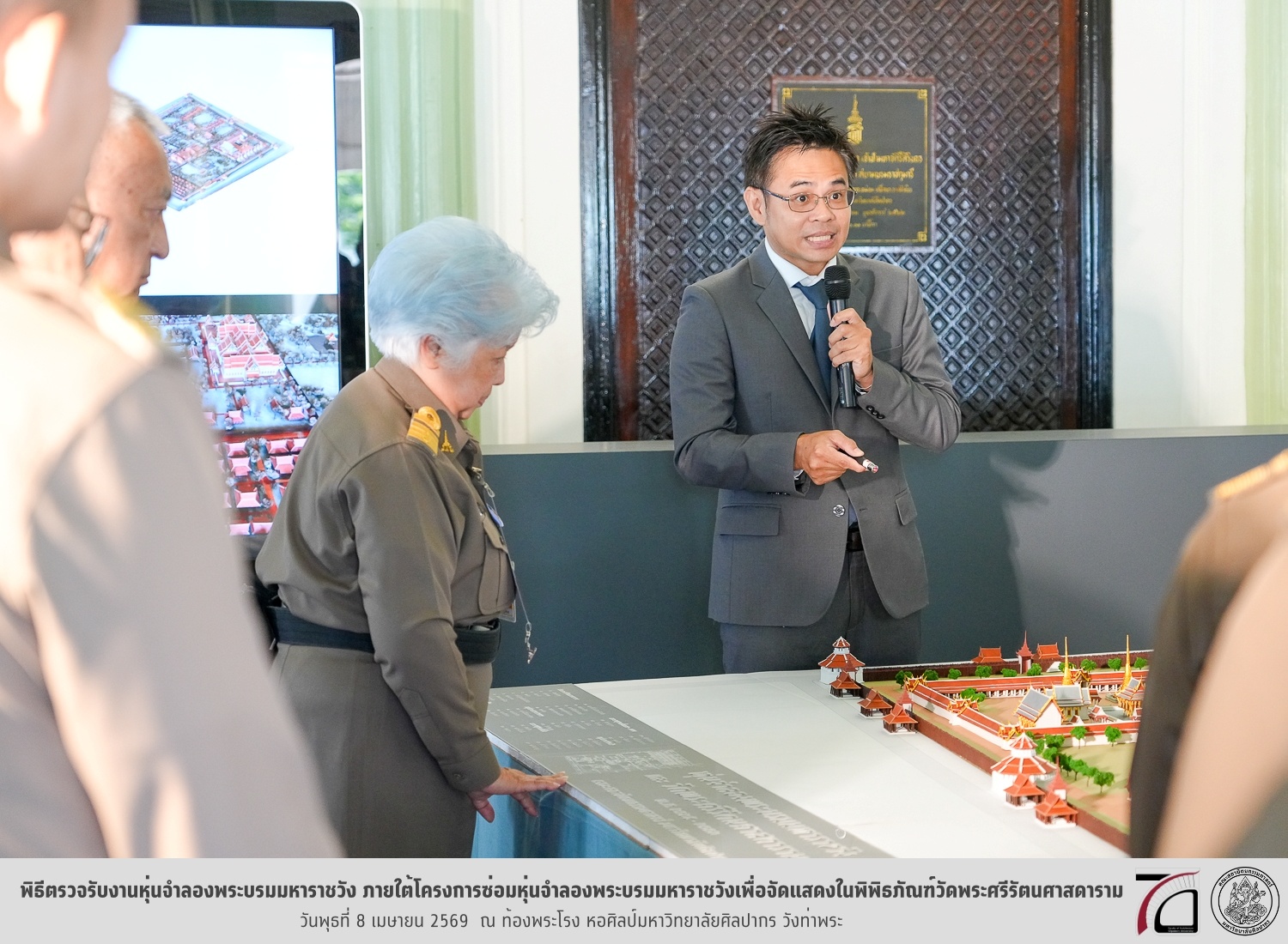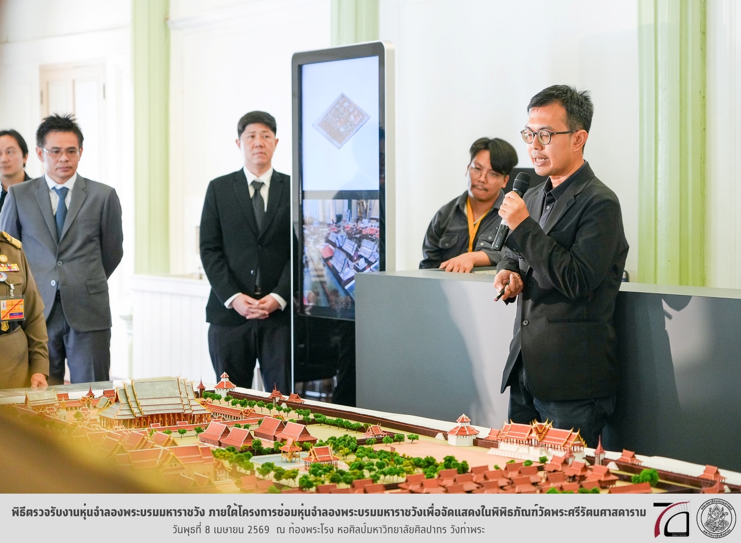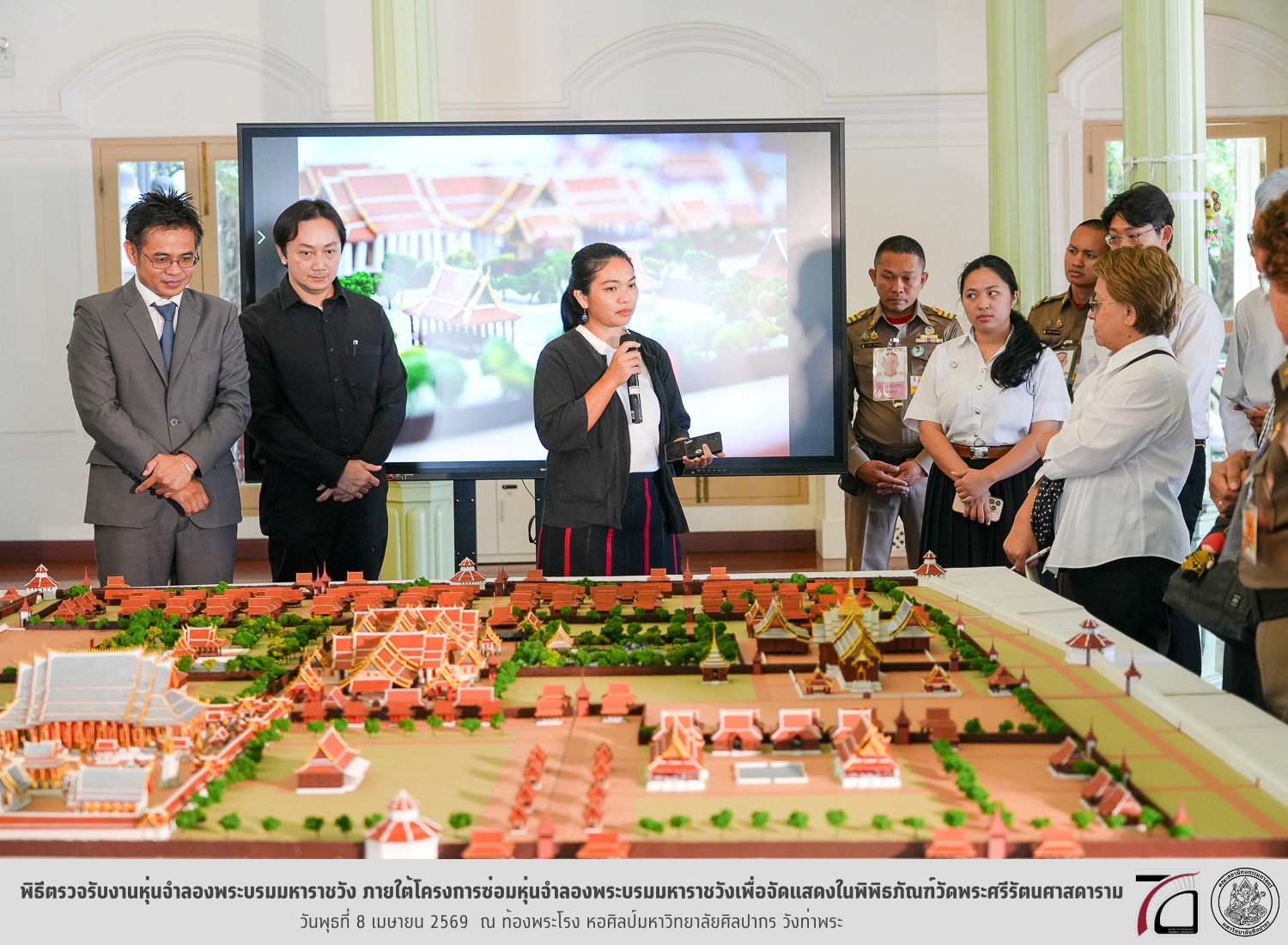 วันพุธที่ 8 เมษายน 2569 คณะสถาปัตยกรรมศาสตร์ มหาวิทยาลัยศิลปากร นำโดย ผู้ช่วยศาสตราจารย์ ดร.บุณยกร วชิระเธียรชัย ในฐานะผู้รับผิดชอบโครงการซ่อมหุ่นจำลองพระบรมมหาราชวังเพื่อจัดแสดงในพิพิธภัณฑ์วัดพระศรีรัตนศาสดาราม และคณะทำงาน ประกอบด้วย ผู้ช่วยศาสตราจารย์ ดร.พินัย สิริเกียรติกุล ผู้ช่วยศาสตราจารย์พีระพัฒน์ สำราญ ผู้ช่วยศาสตราจารย์สิริเดช วังกรานต์ พร้อมกับอาจารย์ศรินยา โทณสุกุมาร หัวหน้าภาควิชาศิลปสถาปัตยกรรม
