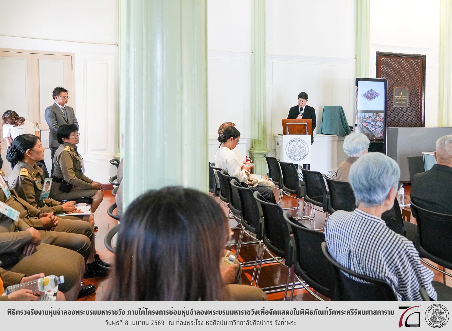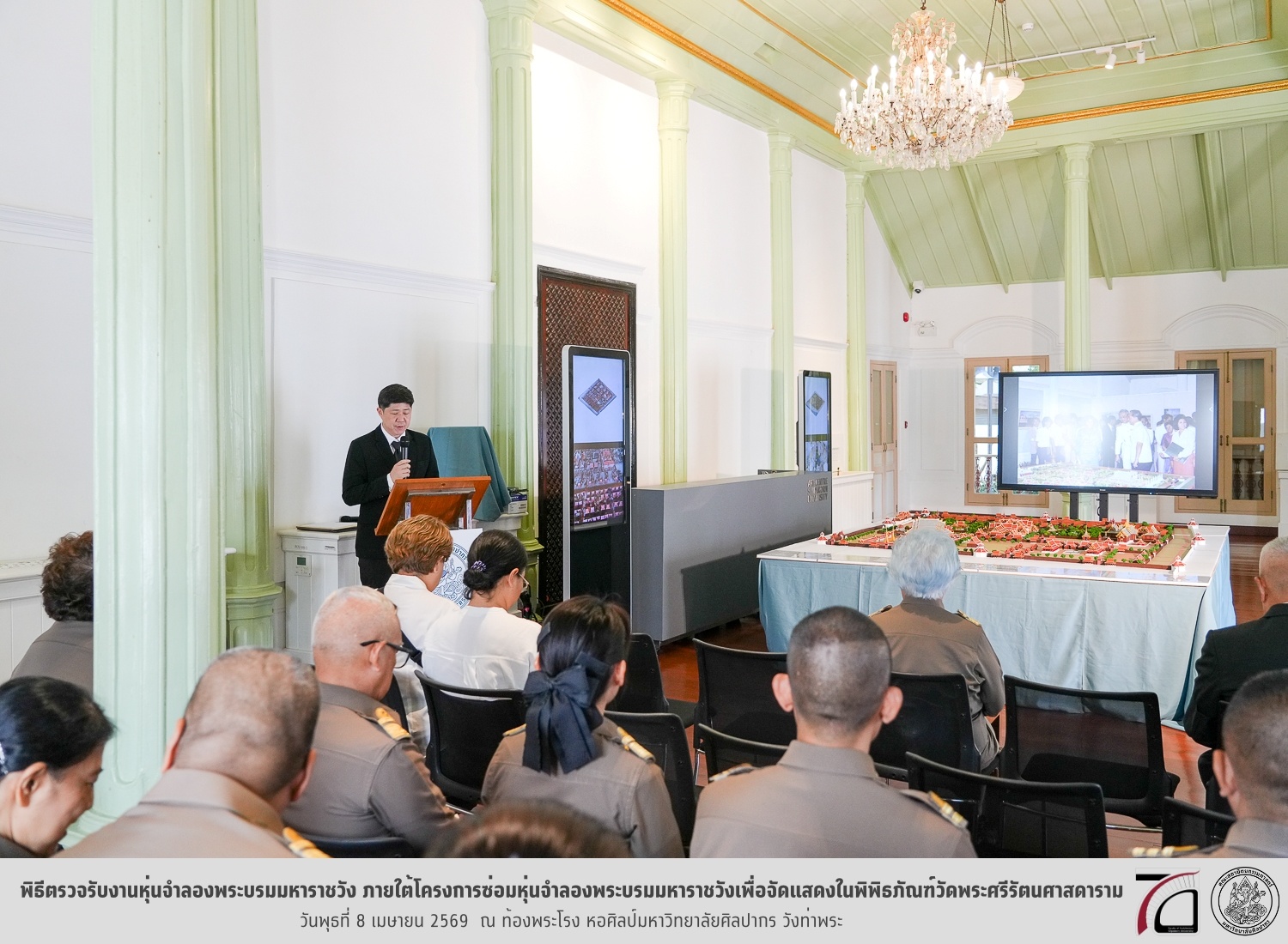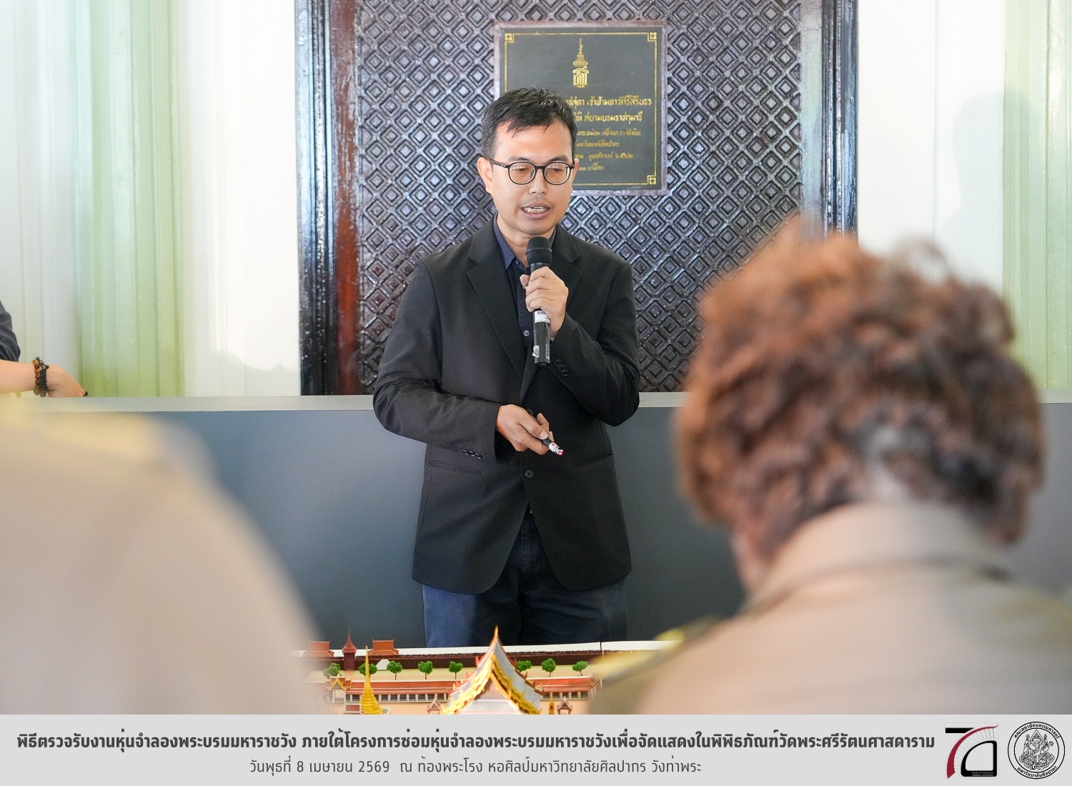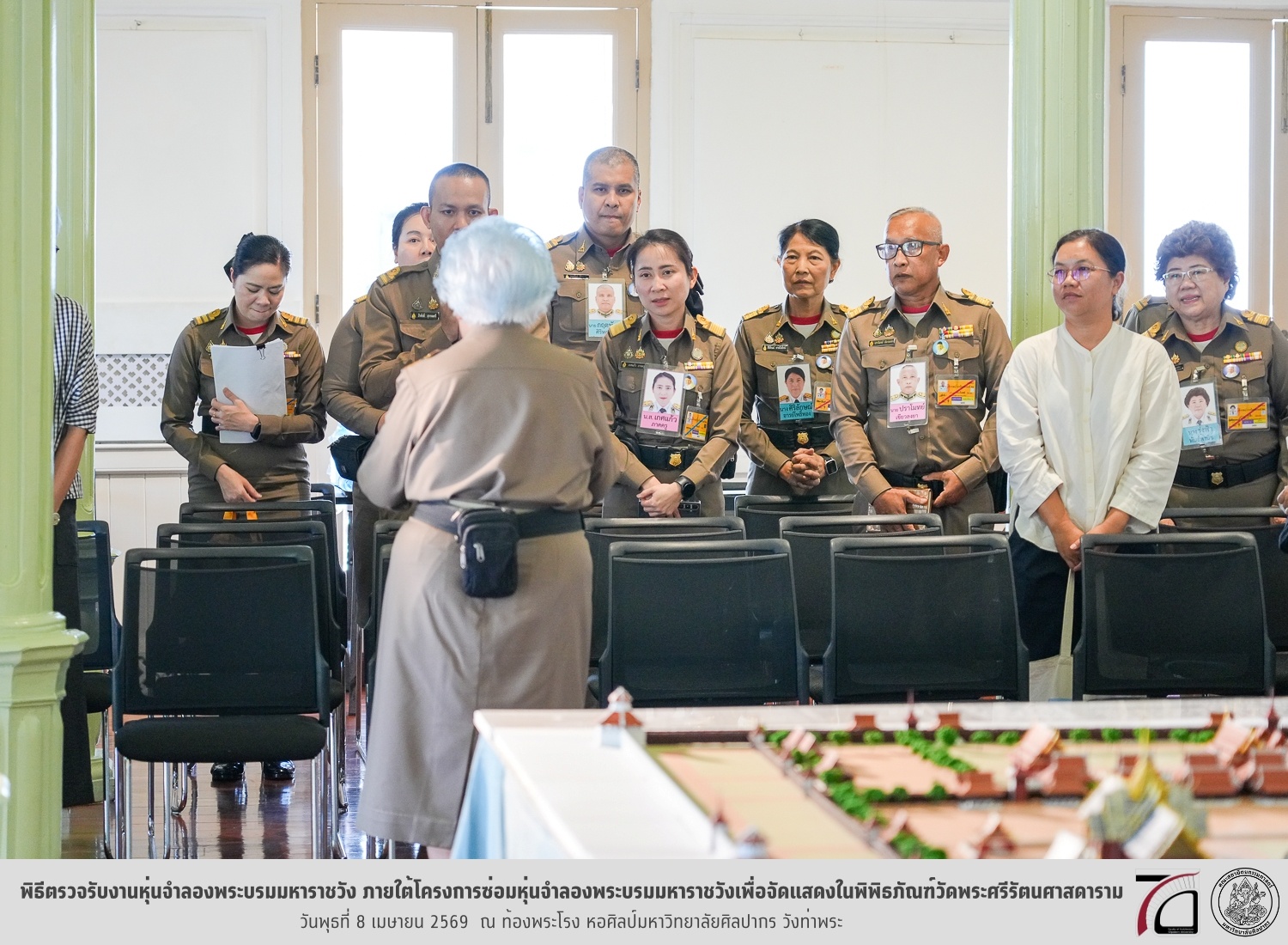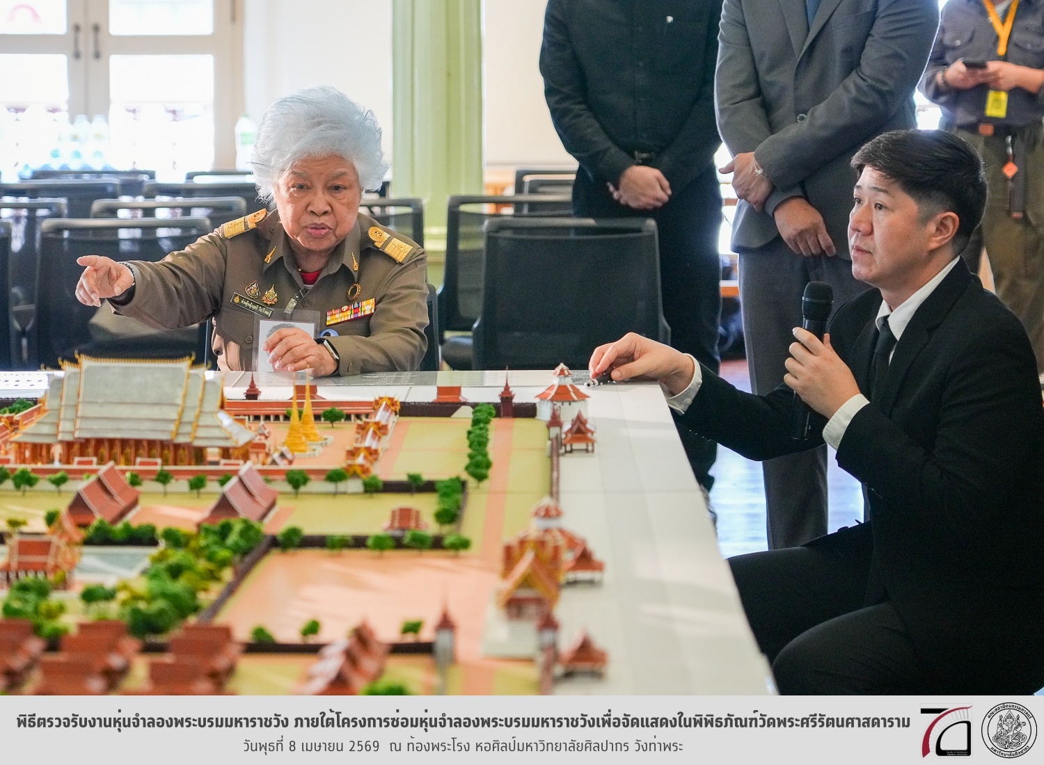 วันพุธที่ 8 เมษายน 2569 คณะสถาปัตยกรรมศาสตร์ มหาวิทยาลัยศิลปากร นำโดย ผู้ช่วยศาสตราจารย์ ดร.บุณยกร วชิระเธียรชัย ในฐานะผู้รับผิดชอบโครงการซ่อมหุ่นจำลองพระบรมมหาราชวังเพื่อจัดแสดงในพิพิธภัณฑ์วัดพระศรีรัตนศาสดาราม และคณะทำงาน ประกอบด้วย ผู้ช่วยศาสตราจารย์ ดร.พินัย สิริเกียรติกุล ผู้ช่วยศาสตราจารย์พีระพัฒน์ สำราญ ผู้ช่วยศาสตราจารย์สิริเดช วังกรานต์ พร้อมกับอาจารย์ศรินยา โทณสุกุมาร หัวหน้าภาควิชาศิลปสถาปัตยกรรม