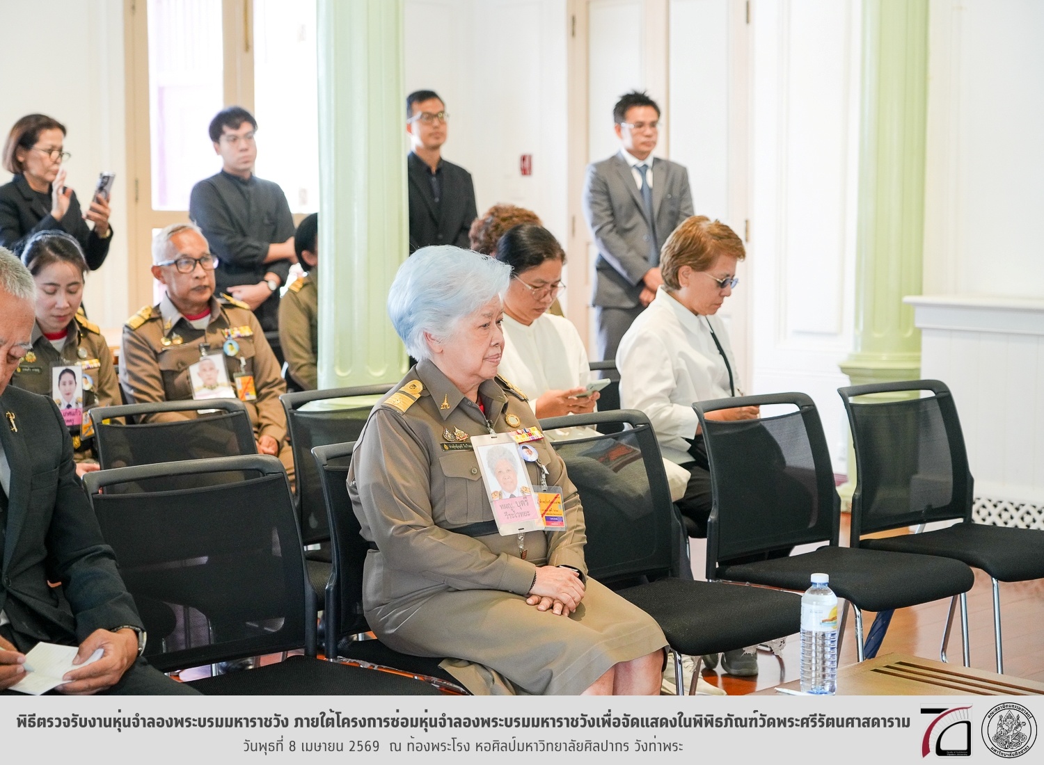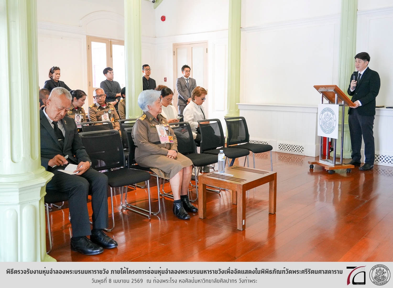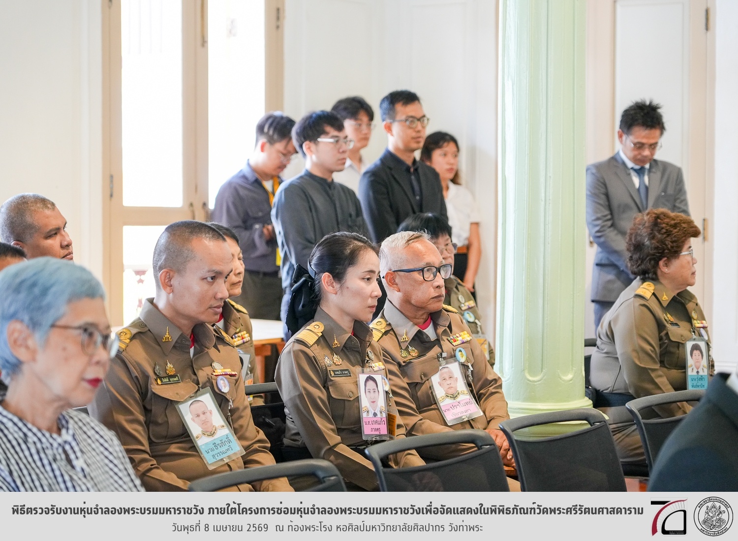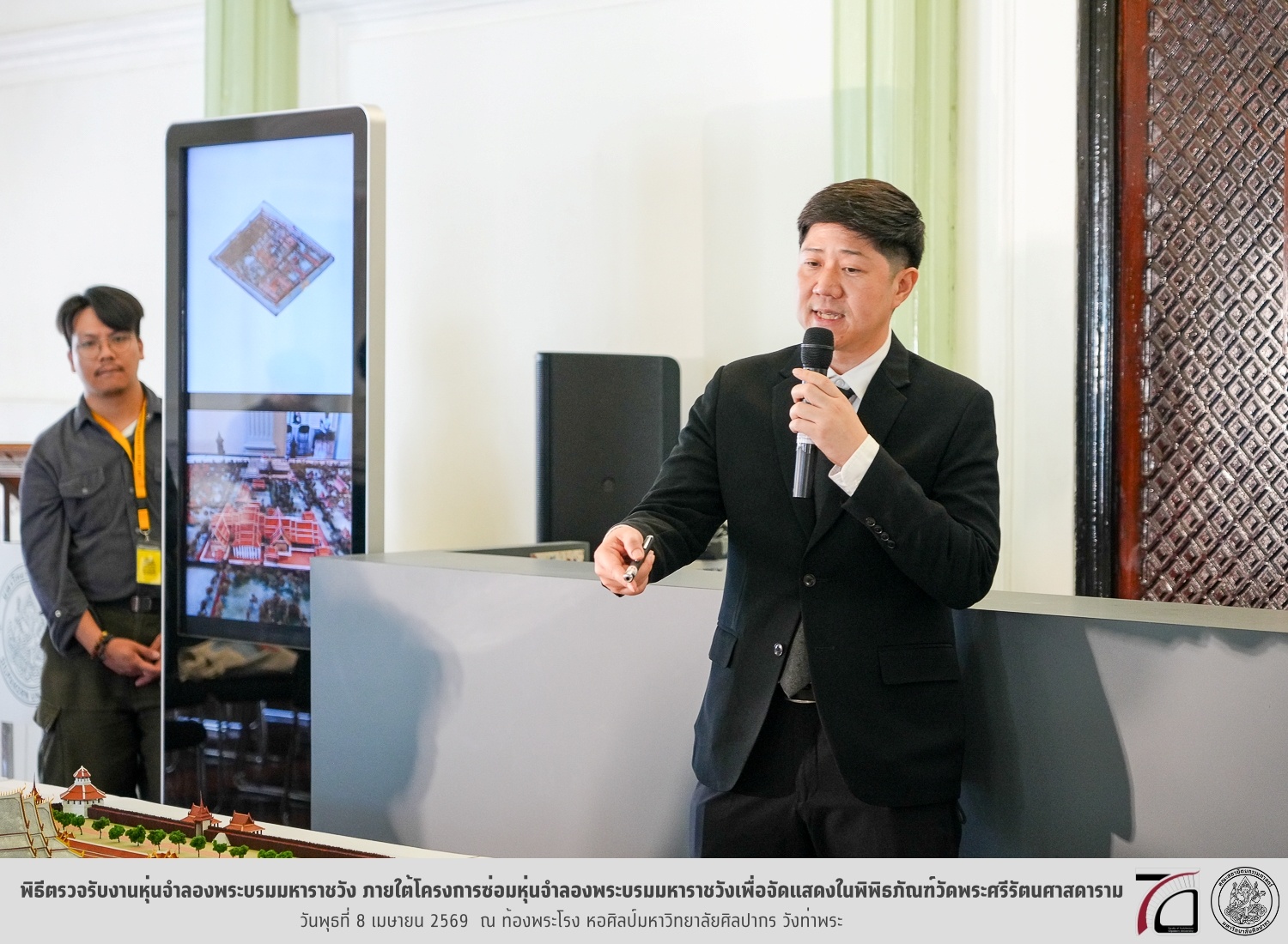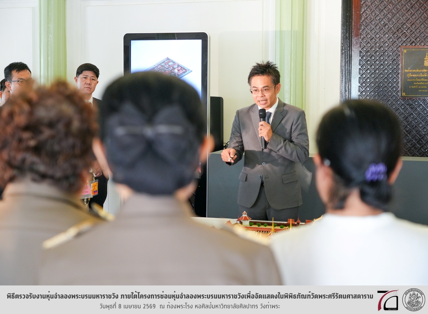 วันพุธที่ 8 เมษายน 2569 คณะสถาปัตยกรรมศาสตร์ มหาวิทยาลัยศิลปากร นำโดย ผู้ช่วยศาสตราจารย์ ดร.บุณยกร วชิระเธียรชัย ในฐานะผู้รับผิดชอบโครงการซ่อมหุ่นจำลองพระบรมมหาราชวังเพื่อจัดแสดงในพิพิธภัณฑ์วัดพระศรีรัตนศาสดาราม และคณะทำงาน ประกอบด้วย ผู้ช่วยศาสตราจารย์ ดร.พินัย สิริเกียรติกุล ผู้ช่วยศาสตราจารย์พีระพัฒน์ สำราญ ผู้ช่วยศาสตราจารย์สิริเดช วังกรานต์ พร้อมกับอาจารย์ศรินยา โทณสุกุมาร หัวหน้าภาควิชาศิลปสถาปัตยกรรม